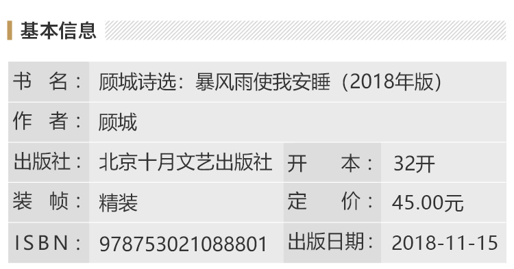 这是新时期诗人顾城的诗歌选集,一套三本,此集为《暴风雨使我安睡——哲思情境短诗》。