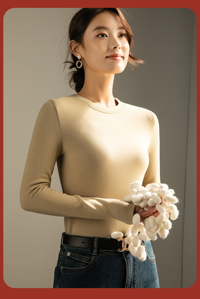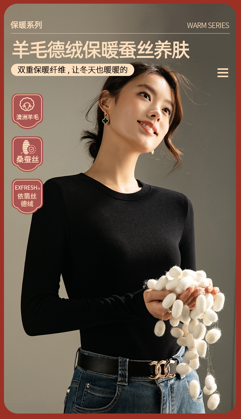 【自】全新升级【铂金会员119/天猫159/差价40】(13515) 洛诗琳秋冬德绒打底衫圆领保暖修身显瘦羊毛 蚕丝蛋白打底衣