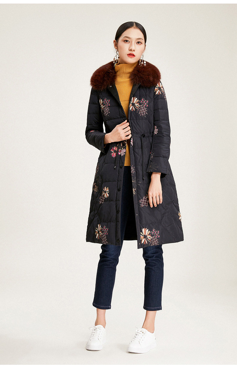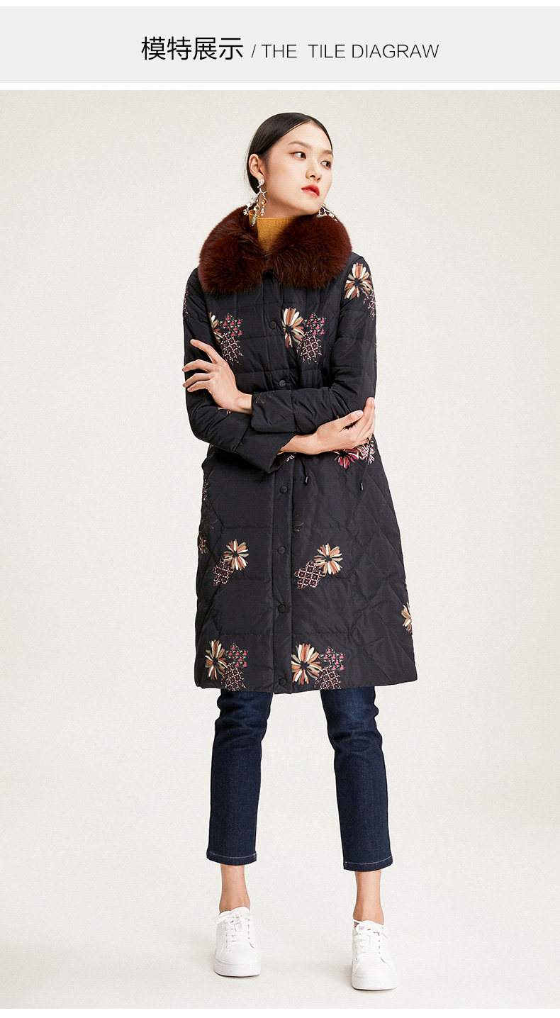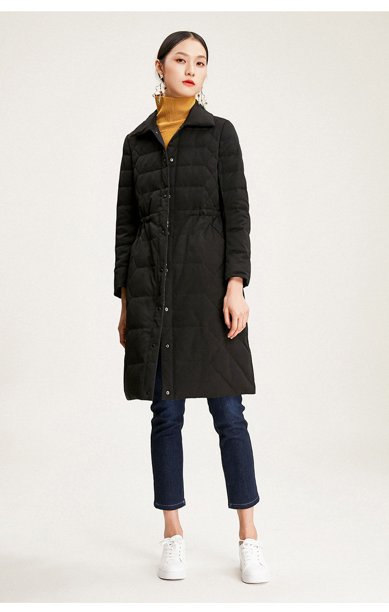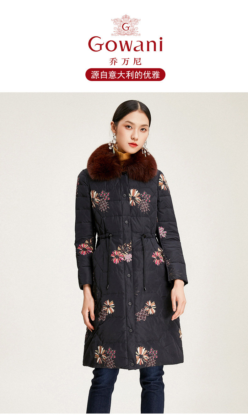 乔万尼冬季羽绒服白鸭绒双面穿收腰中长保暖外套厚过膝EN4T750