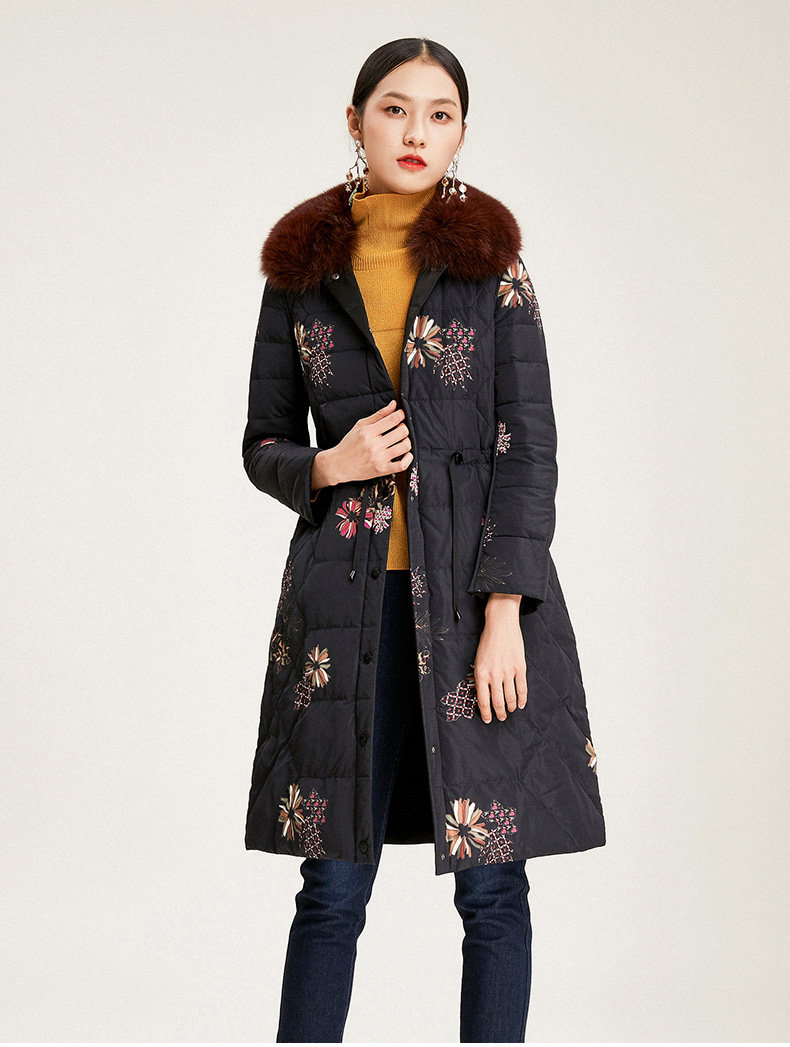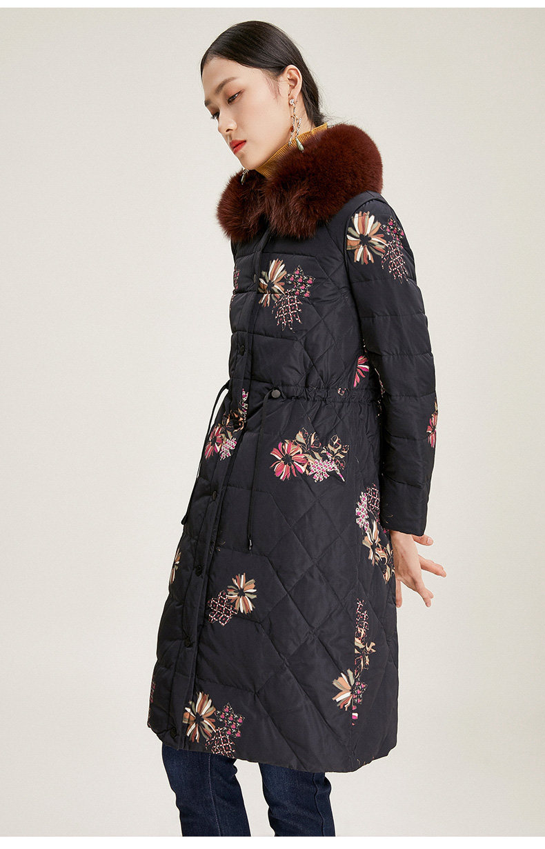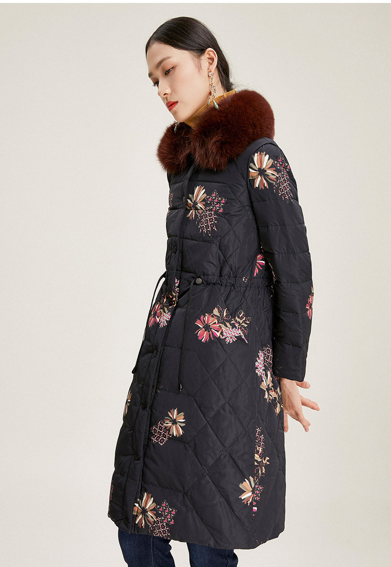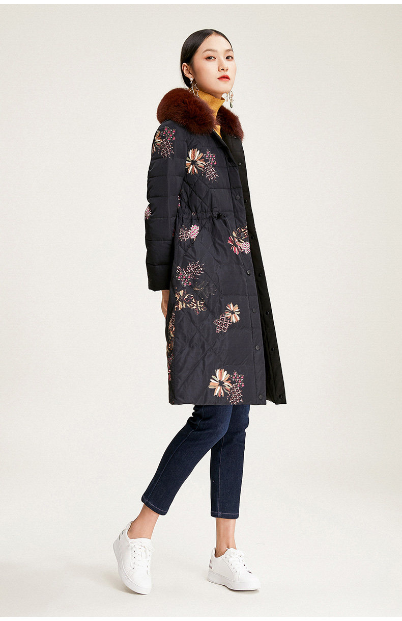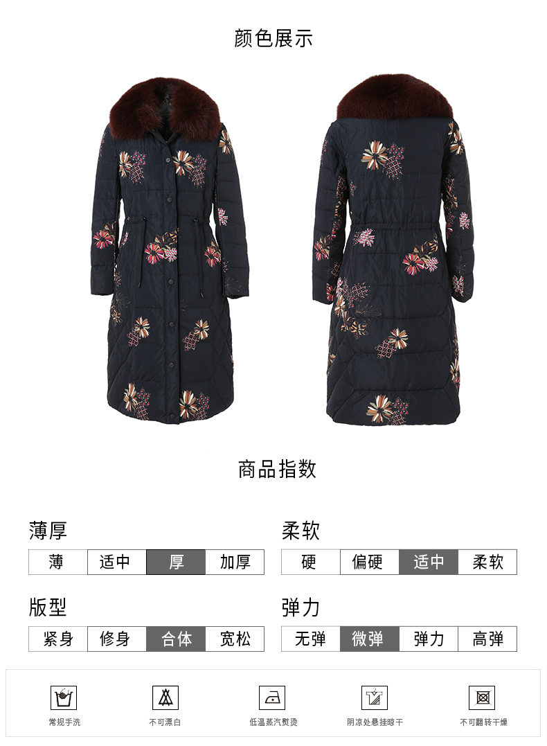 乔万尼冬季羽绒服白鸭绒双面穿收腰中长保暖外套厚过膝EN4T750