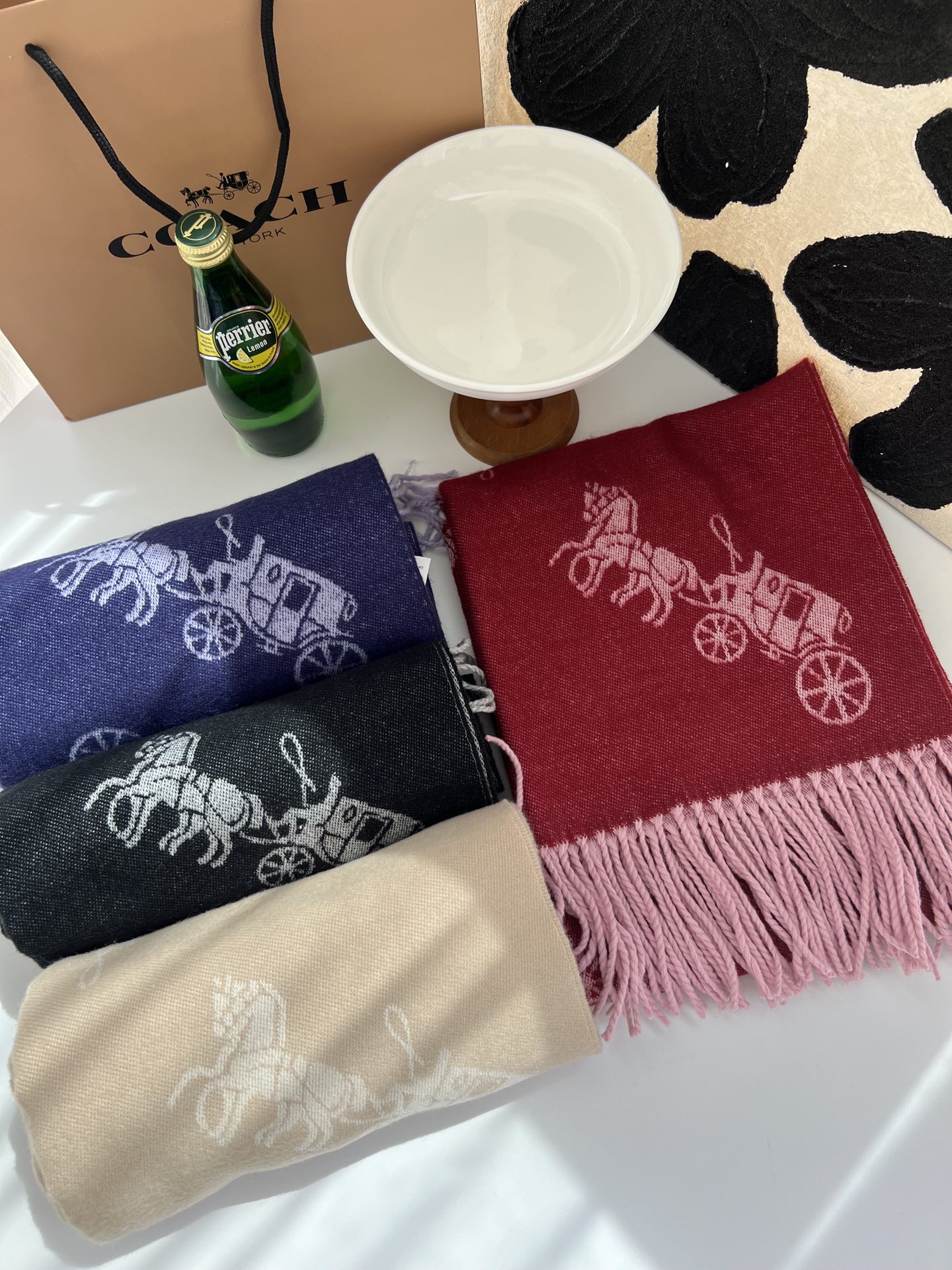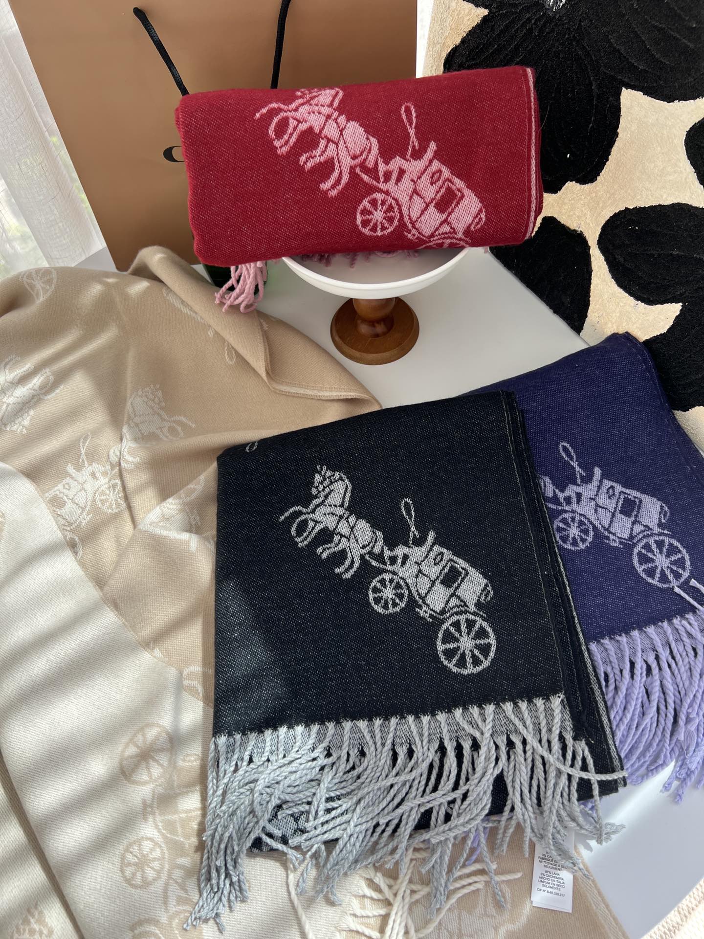 65 ssy Coach新款围巾🧣经典马车Logo 双面双色围巾一上架就成爆款🔥手感超级柔和舒服,可做围巾可做披肩,给你一个最温暖的冬季。