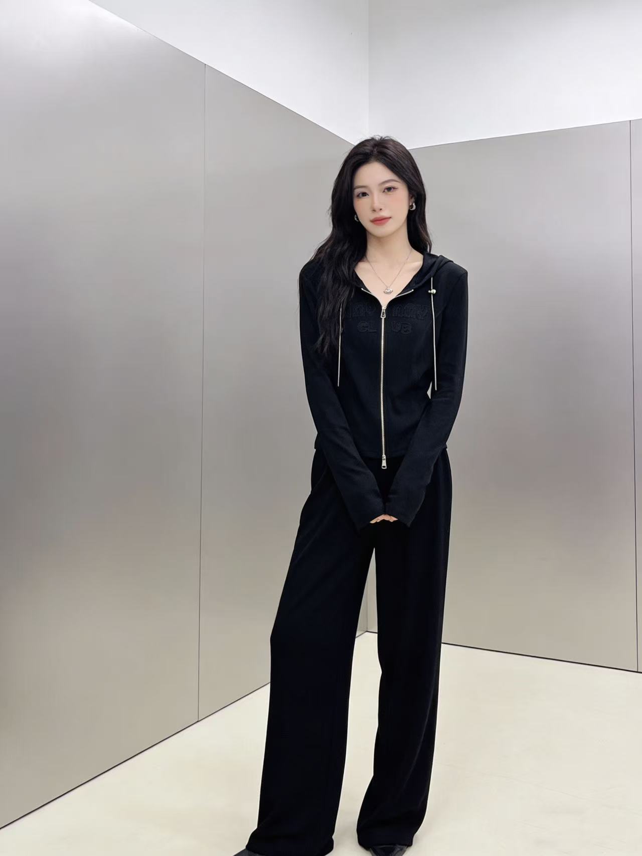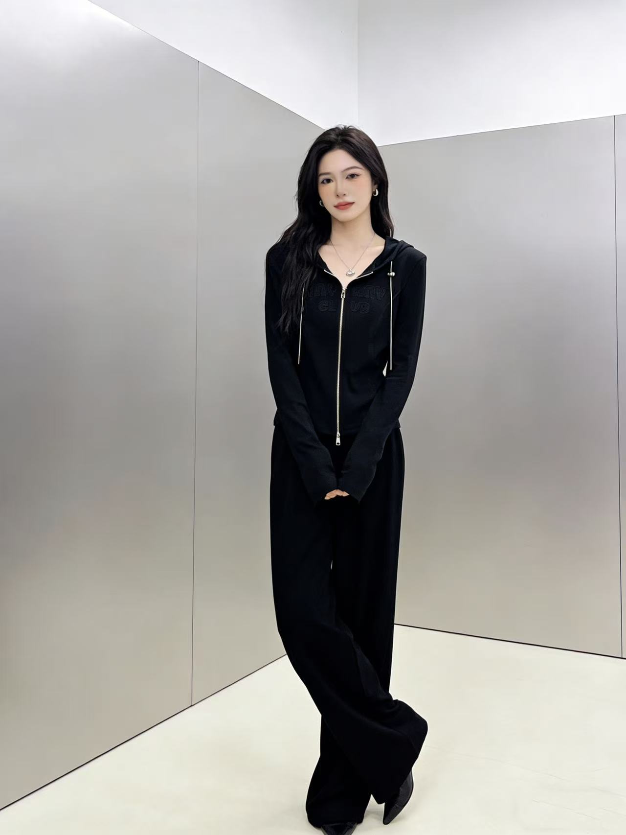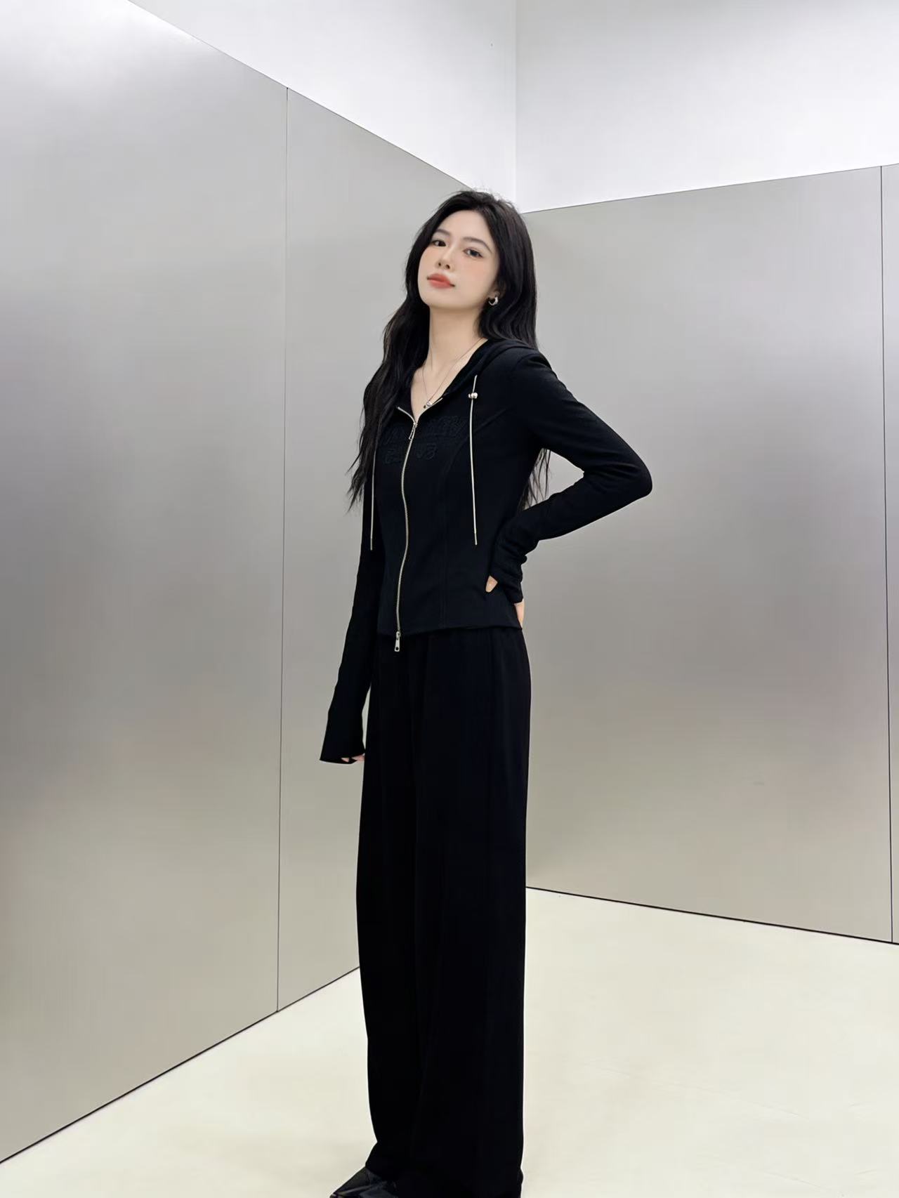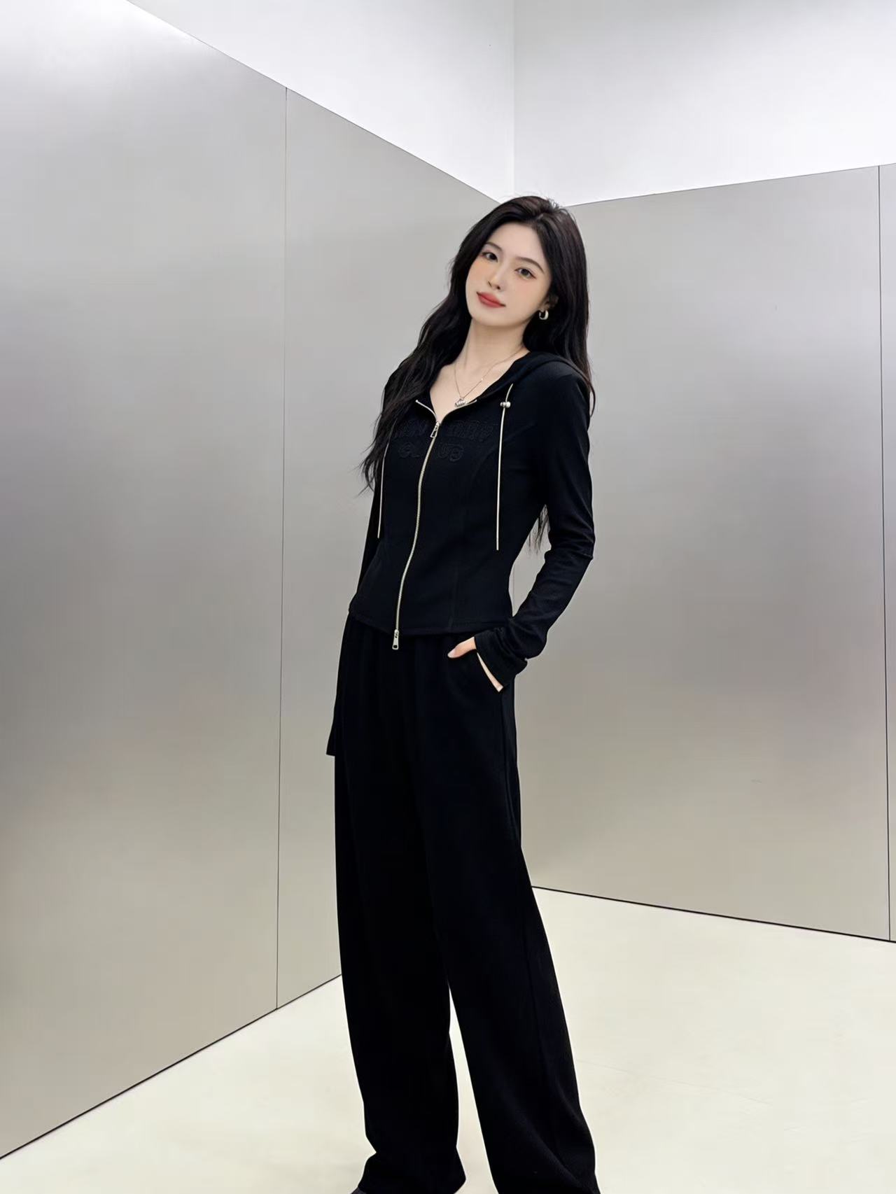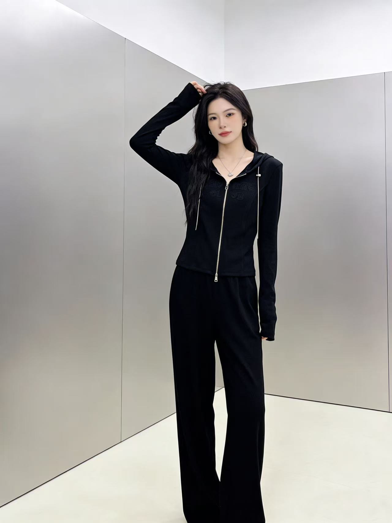 活动爆款【自营】衣周期~(二件套)Q02修身连帽针织上衣➕休闲直筒裤套装-喜出