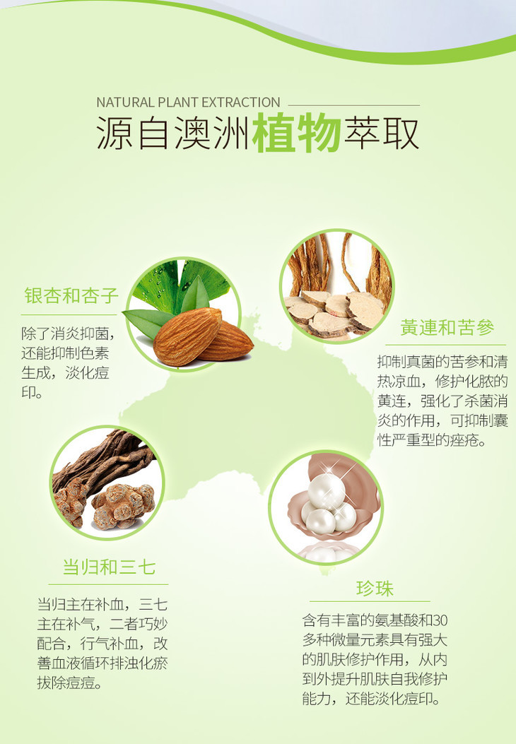 功效:去除红肿,囊性和荷尔蒙痤疮和各类痘痘及痘印。用于严重的高级别痤疮或荷尔蒙性囊肿性痤疮。