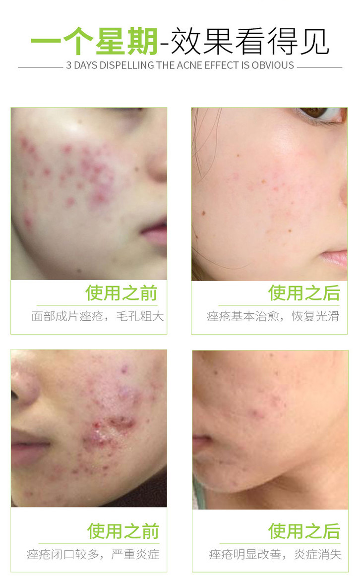 功效:去除黑头,发红,肿胀,毛孔粗大和各类痘痘及痘印。用于轻度或者中度痤疮和粉刺。