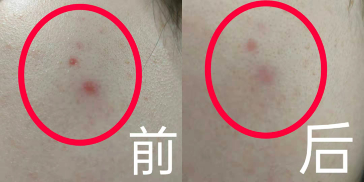 如果你是那种特别严重红肿了,鼓起来高高的痘痘,我推荐你先用2号,2号要比1号的功效强,特别适合不小心破了或者快要流脓的那种痘痘。