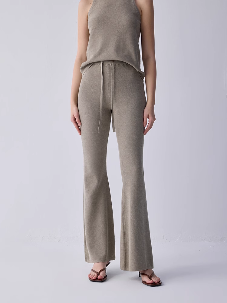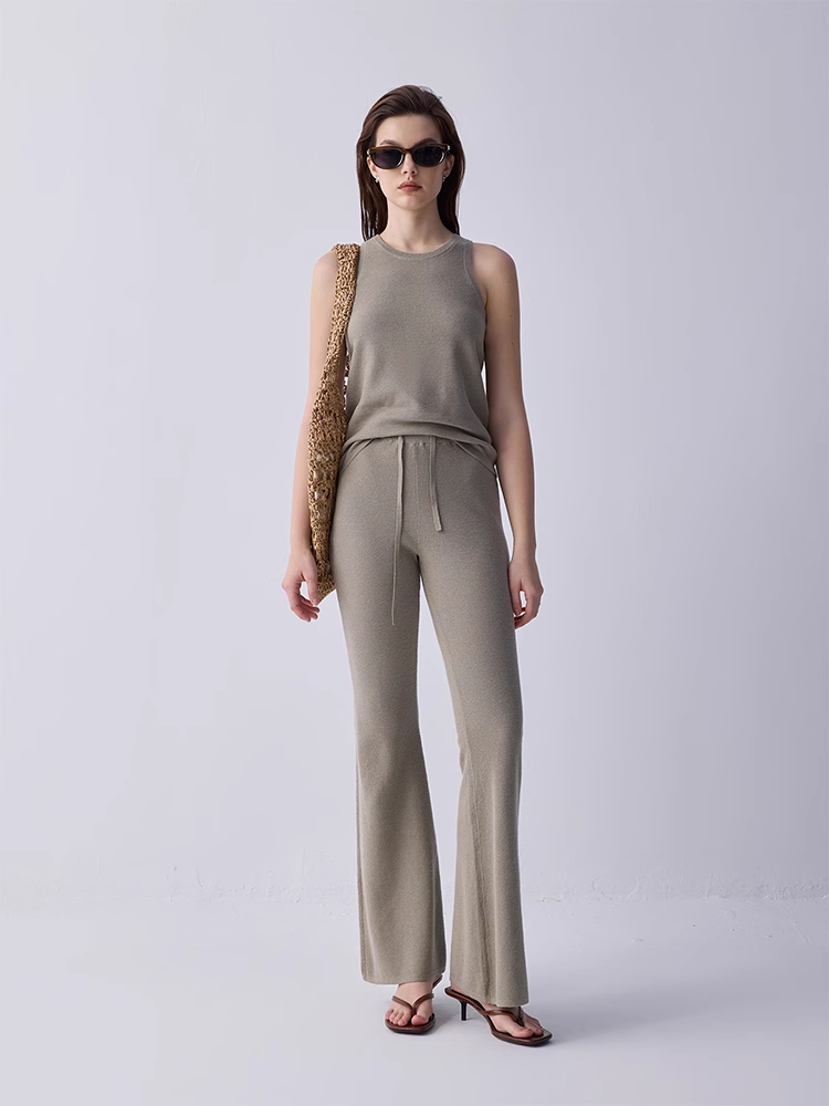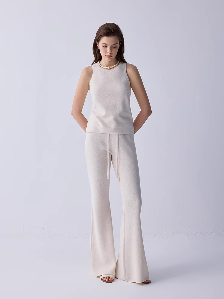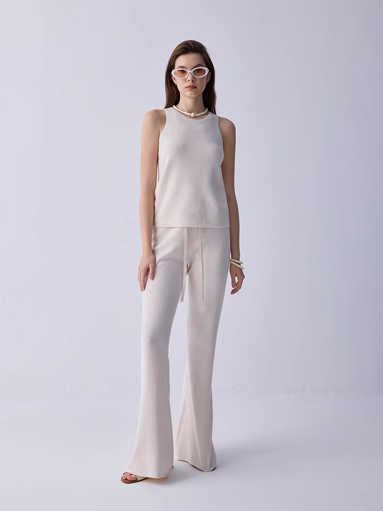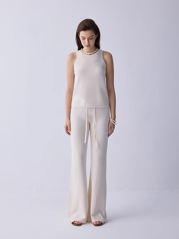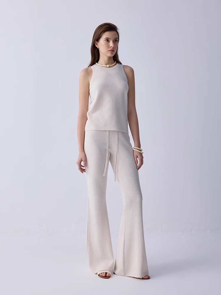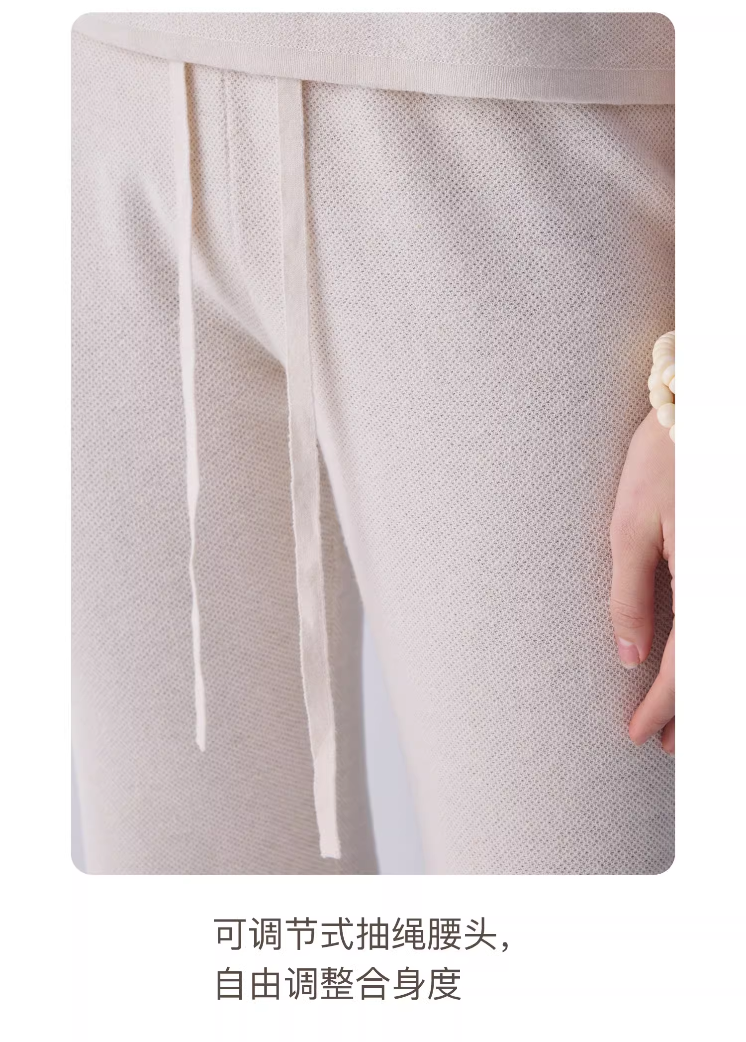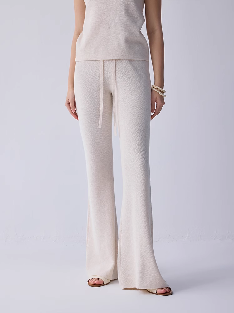 PRIMECORE 女微喇裤白色夏季薄款针织棉麻透气舒适时髦长裤