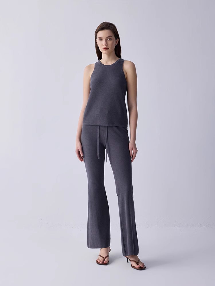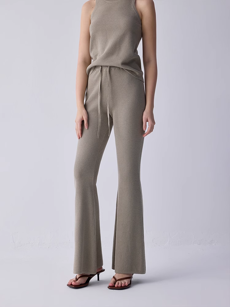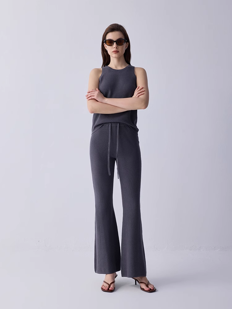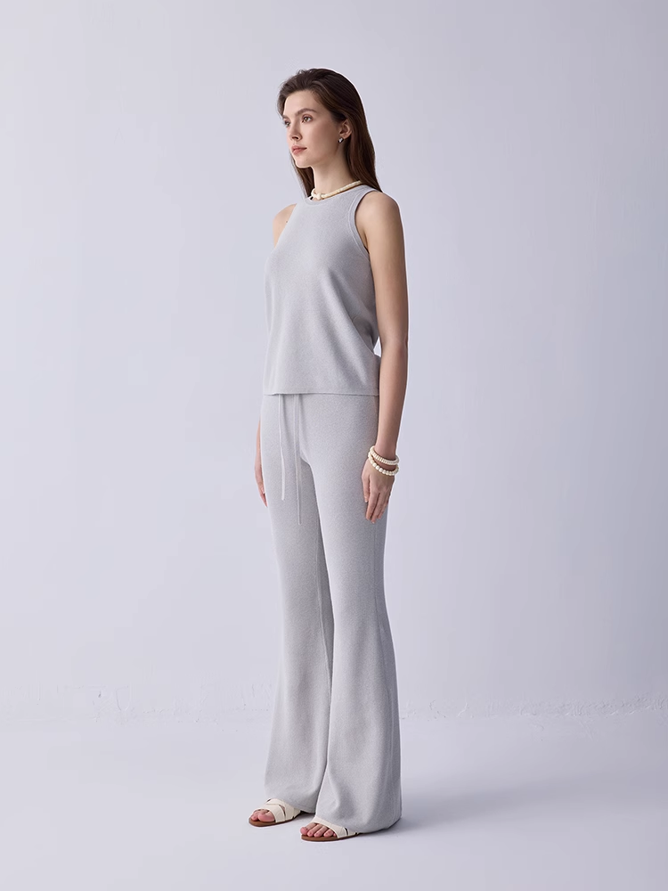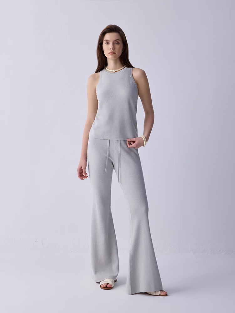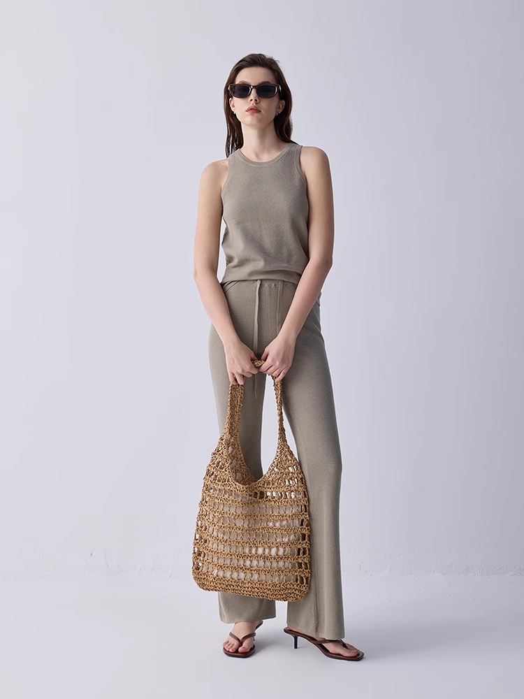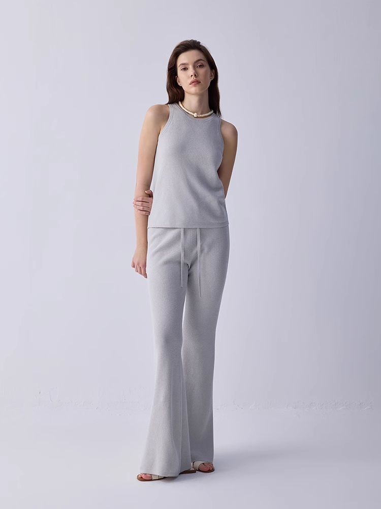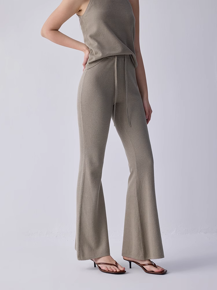 PRIMECORE 女微喇裤白色夏季薄款针织棉麻透气舒适时髦长裤
