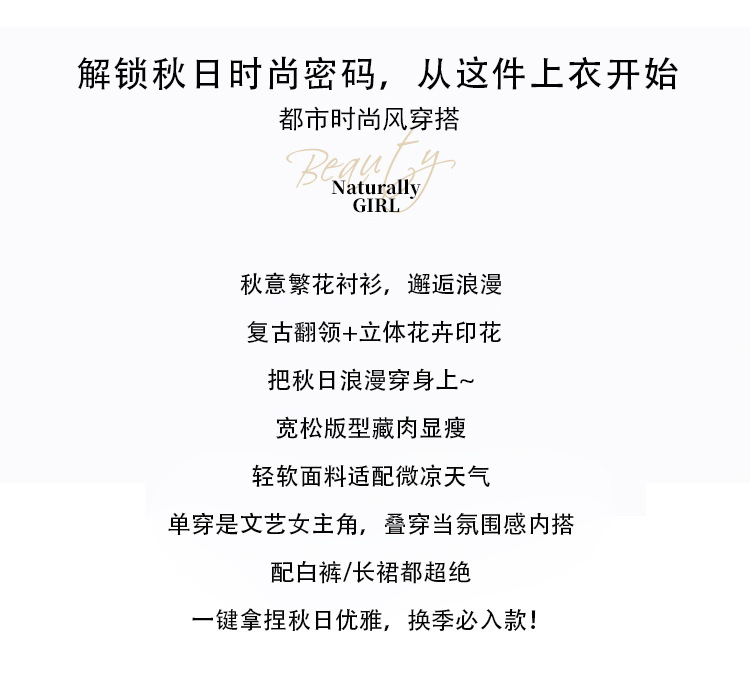 KQL E333M3298气质翻领碎花衬衫时尚洋气减龄显瘦