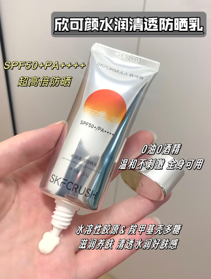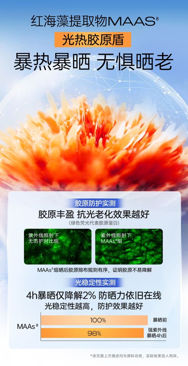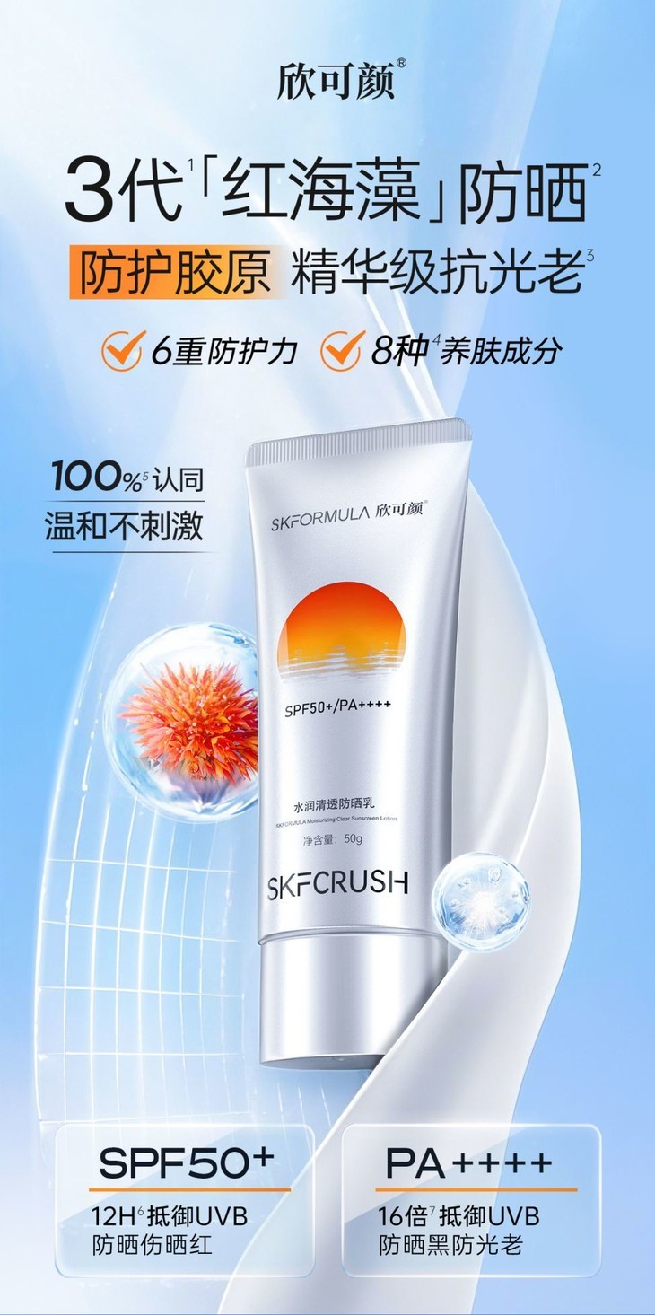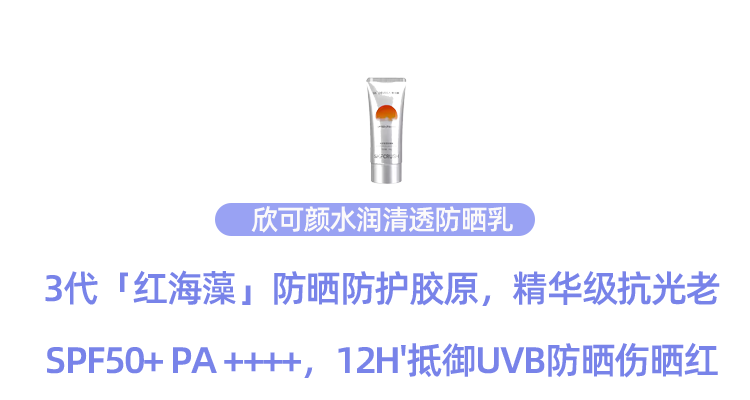 欣可颜水润清透防晒乳,3代「红海藻」防晒防护胶原,12H'抵御UVB防晒伤晒红