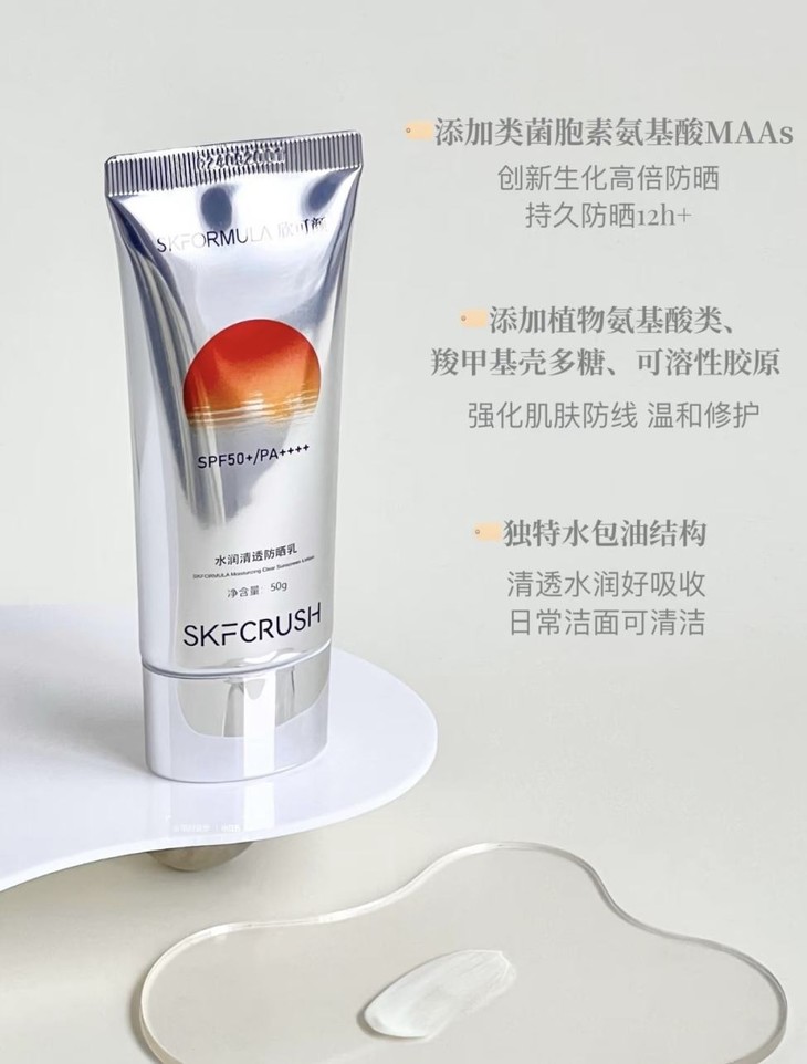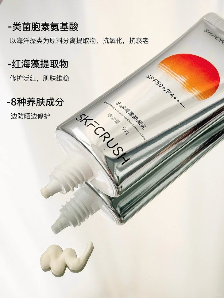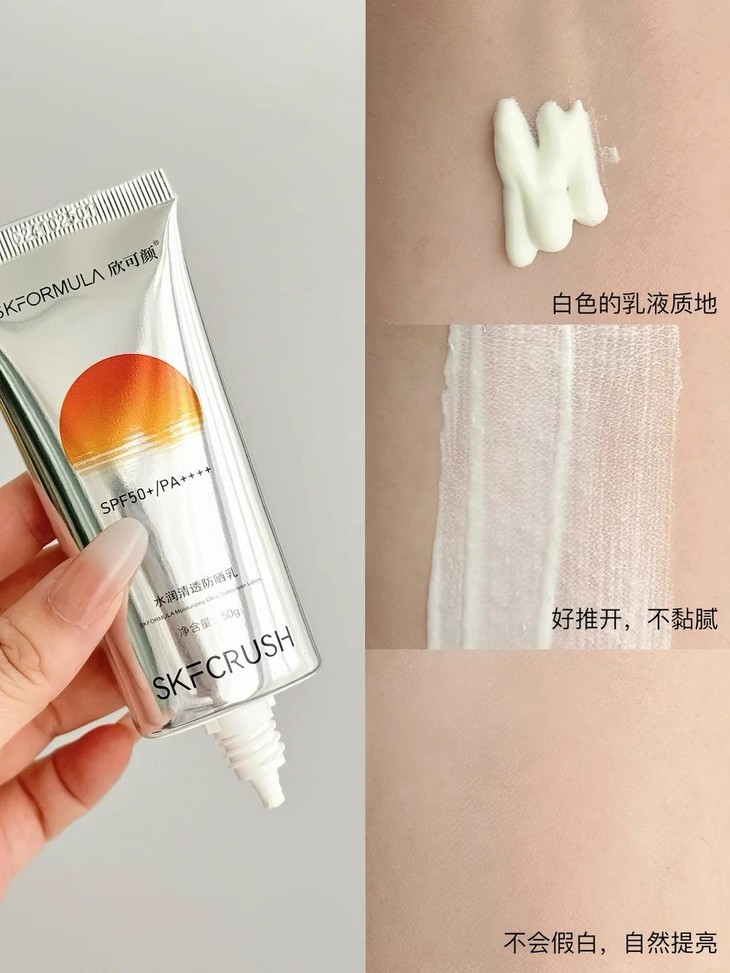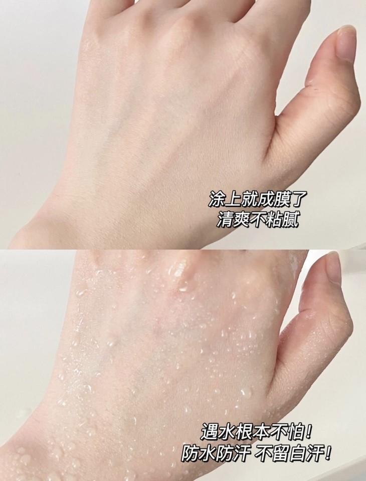 清透乳液质地:如水轻盈,一抹化开。防晒不闷痘,油皮混油皮的真爱。