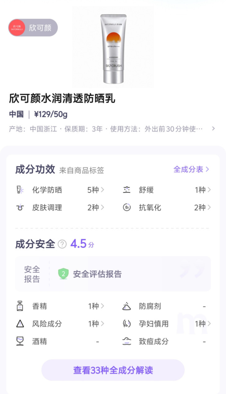 而欣可颜的防晒不仅能做到从 UVB到UVA的广谱防晒