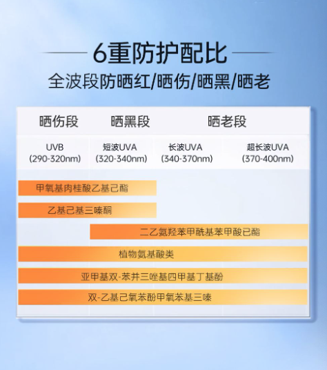 产品能够吸收280-400nm波长就能能做到比较全面的防护