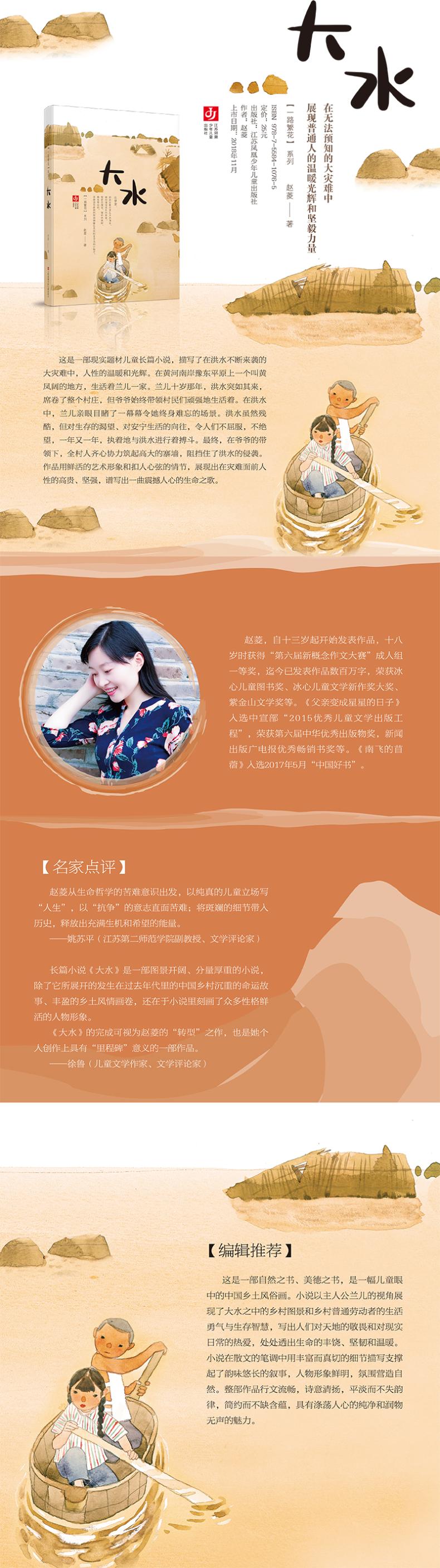 ●第一章 黄凤阔 003第二章 水来了 021第三章 盖屋 039第四章 做船 053第五章 灶房里的故事 069第六章 兰儿的大鱼 085第七章 沉船 103第八章 水上漂来的男孩 113第九章 种麦 131第十章 过年 147第十一章 春来165第十二章 立夏179第十三章 锣声又响起187第十四章 打寨墙197第十五章 大水走了213后记 226