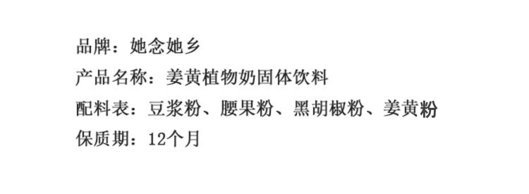 姜黄植物奶 | 510g/罐 姜黄腰果豆浆黑胡椒粉 黄金奶姜黄素 冲调饮品 她念她乡