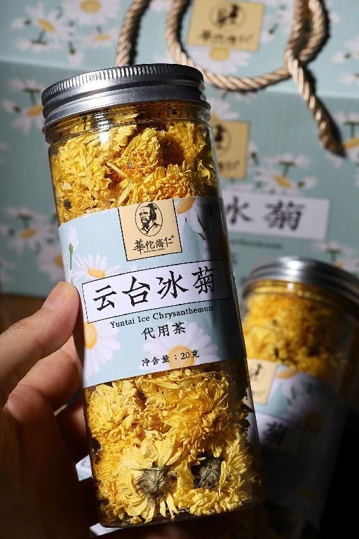 3罐装!天猫旗舰店在售99一罐【华佗济仁云台冰菊20g】五分钟即可冲泡一杯好茶,花朵均匀饱满,茶汤清透 口感纯正,配料表干净无添加,独立瓶装 卫生更放心!