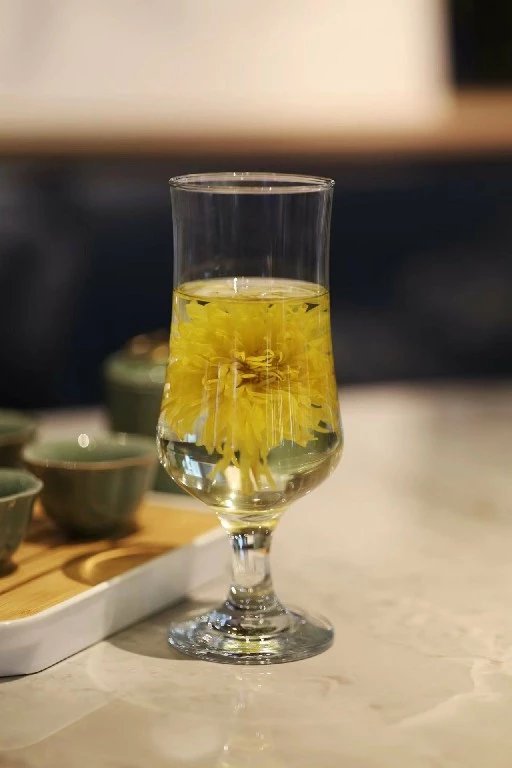 茶汤淡黄,清亮高洁,入口菊香四溢,甘甜中夹杂着一丝丝微苦,后再回甘