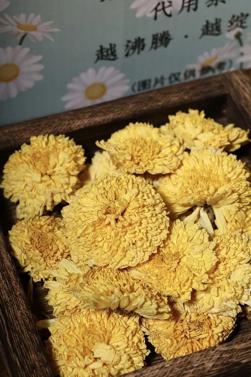 菊花经杀菌烘干下制作而成保留了菊花的味道形状