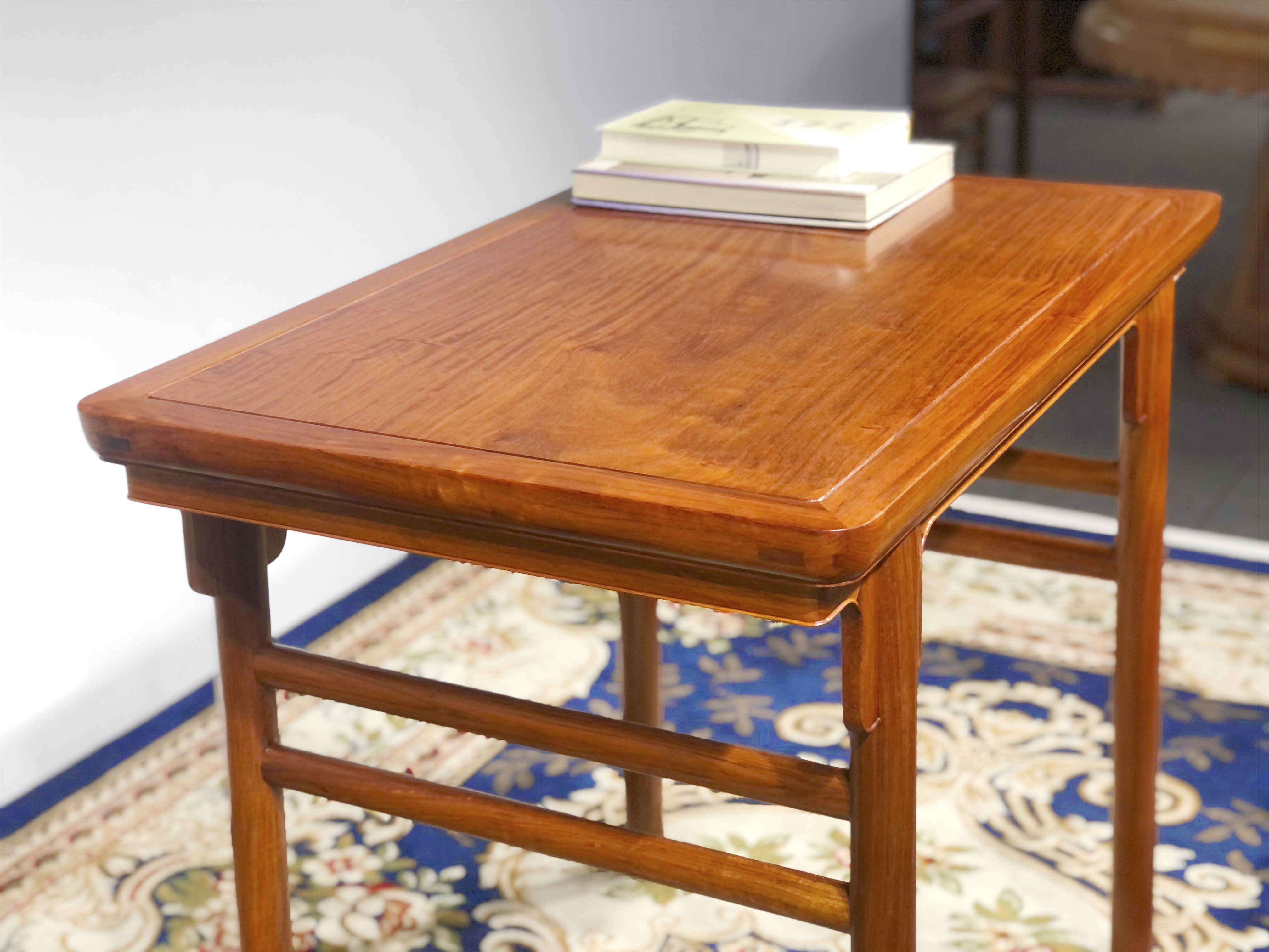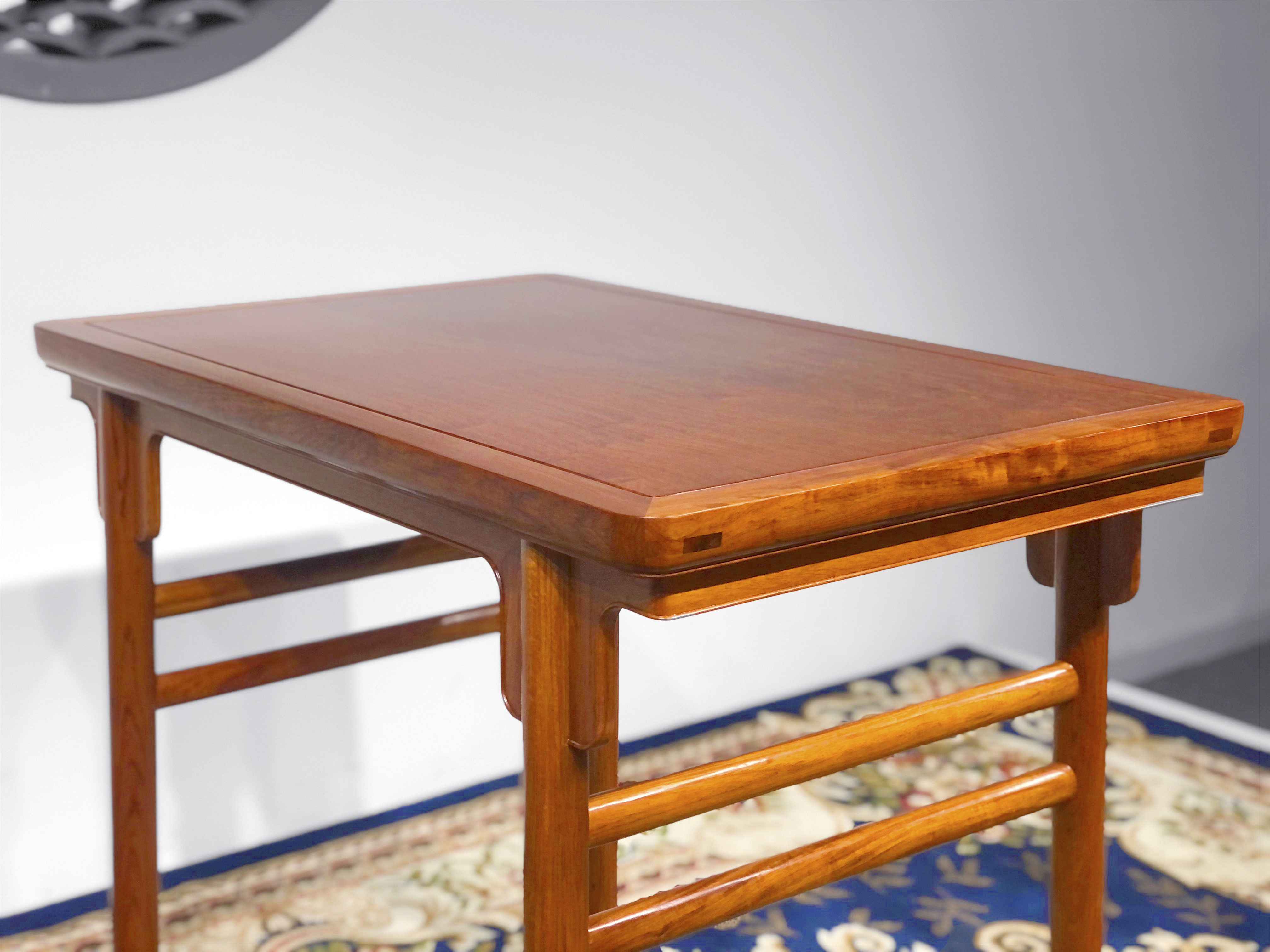 小书案原型是明末清初黄花梨镶楠木樱面小书案拍卖款,尺寸甚佳,短而阔,稳重端庄,面镶独板做法,窄边框,上四公分,底部六公分,明窄暗宽,使案面整体更显文雅,边框内外大圆角做法,甚为考究。