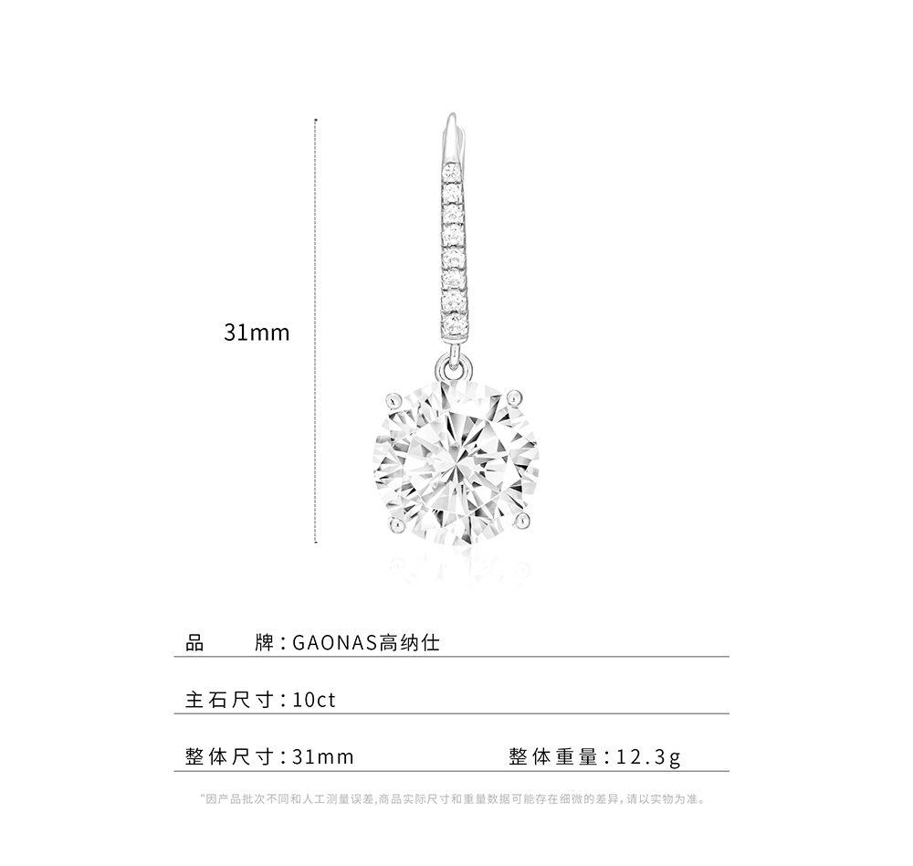 GAONAS 臻奢气场白色10克拉圆形耳环11080EW