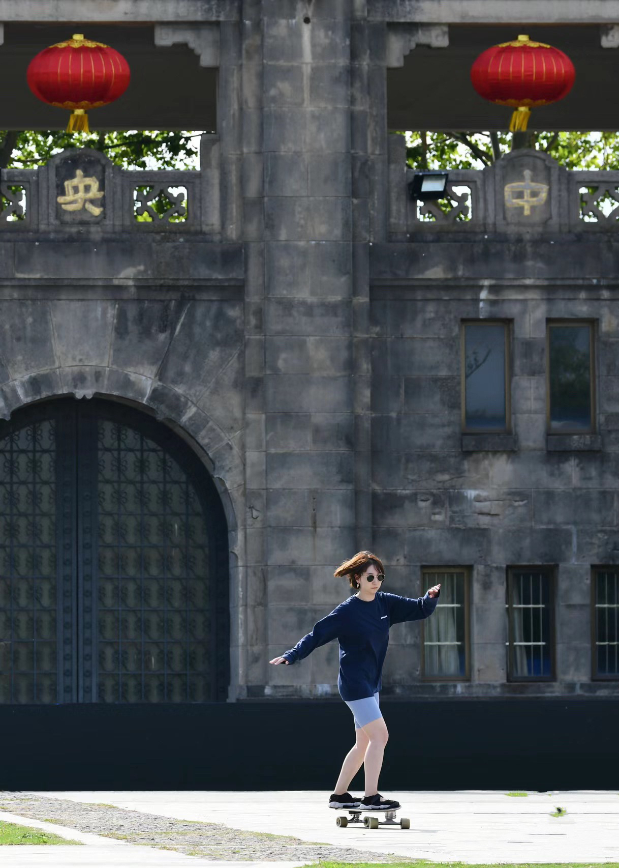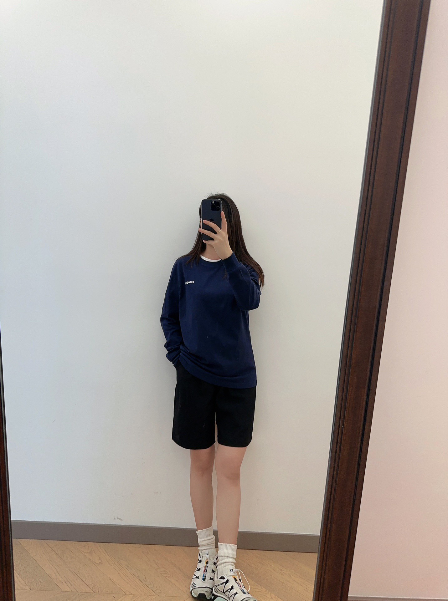 我真的太喜欢这个深蓝色了!都无敌了,里面可以再配一个高领背心或者t。
