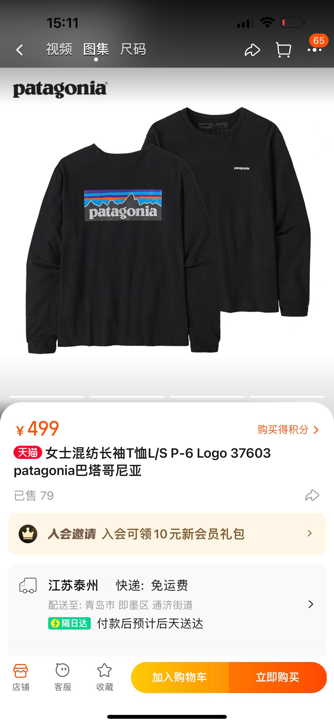 原单巴塔哥尼亚t恤打底衫我自留了这个颜色和灰色!我穿的是s,自留都是m!