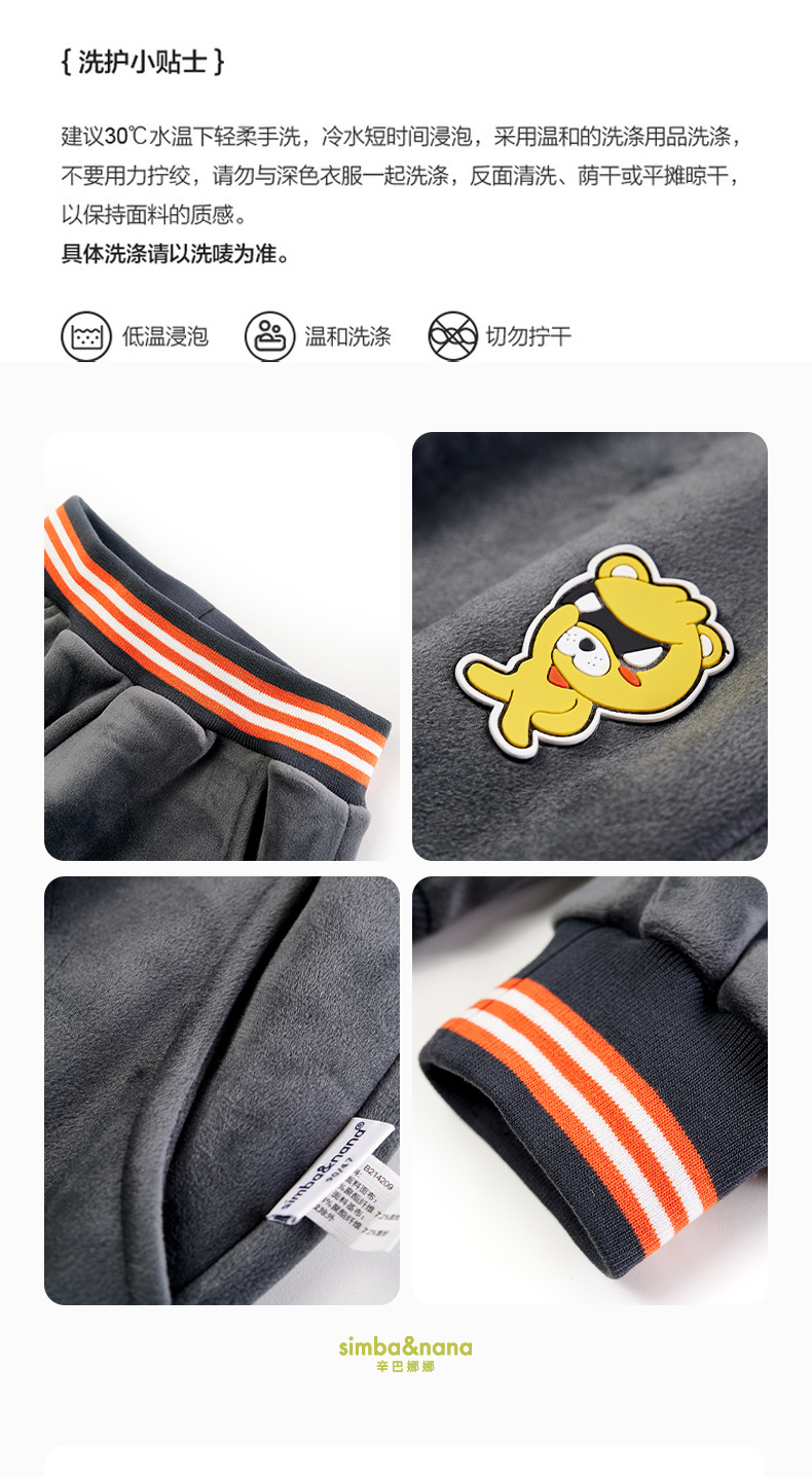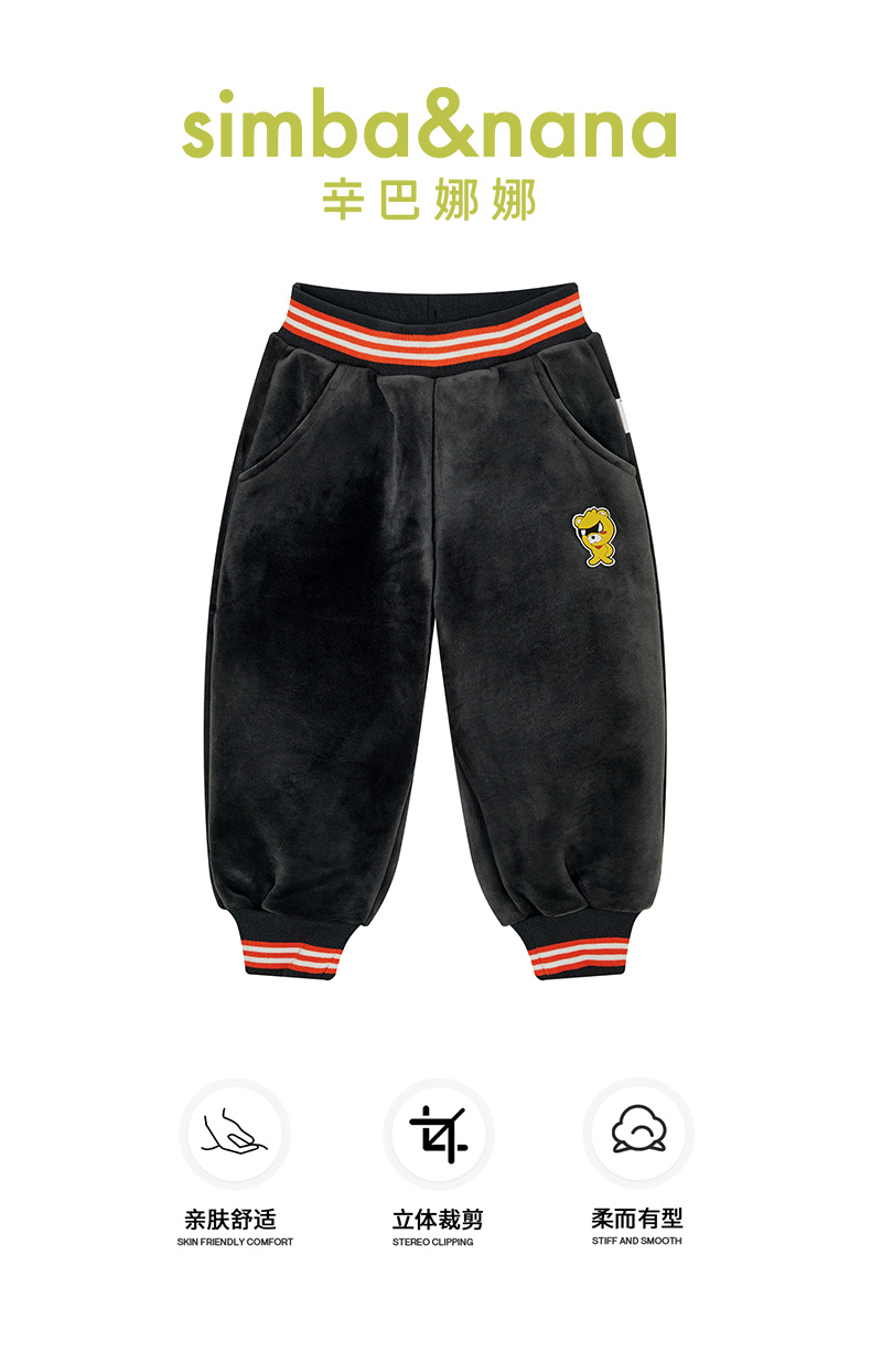 【辛巴娜娜】simbanana小熊软绒绒条纹裤脚运动裤男小童宽松长裤