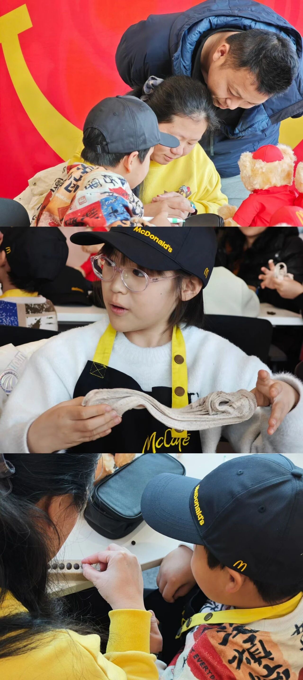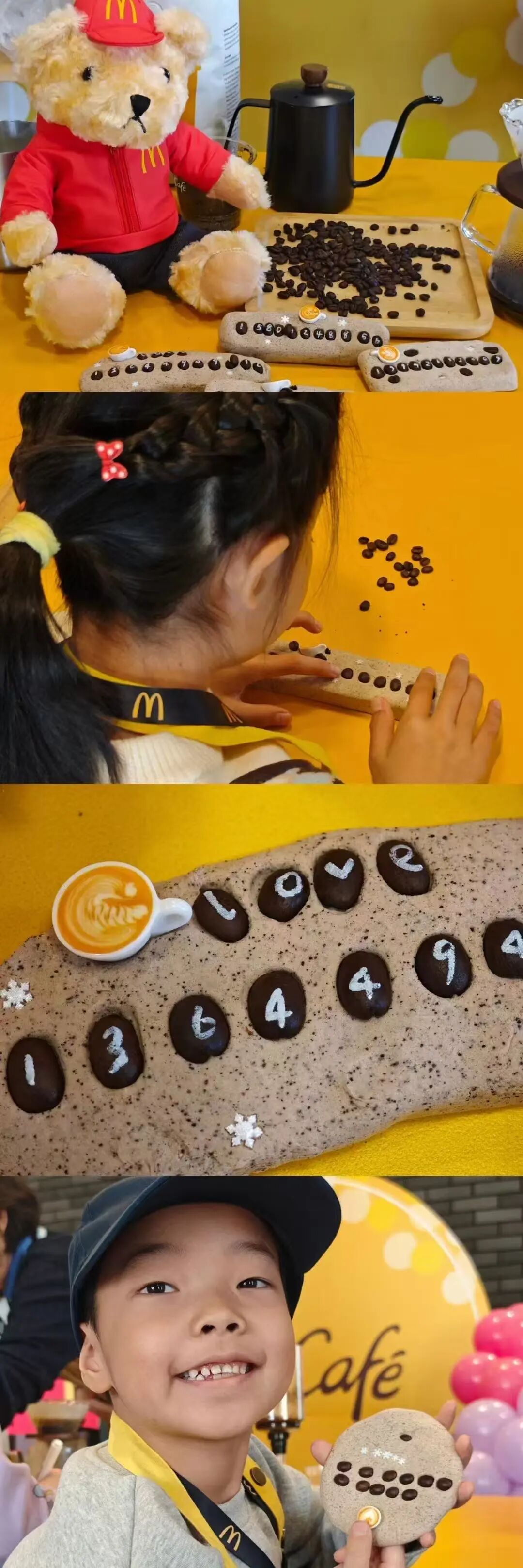 费用包含:含派对套餐(汉堡包+薯条+玉米+果汁+玩具)+咖啡豆手工物料+麦当劳限量版周边小熊玩偶一个