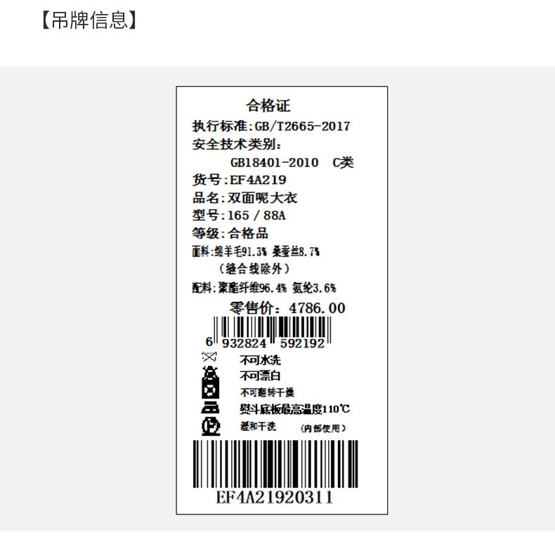 乔万尼时尚高级感羊毛大衣直筒毛呢中长款绵羊毛大衣EF4A219