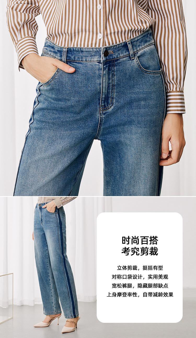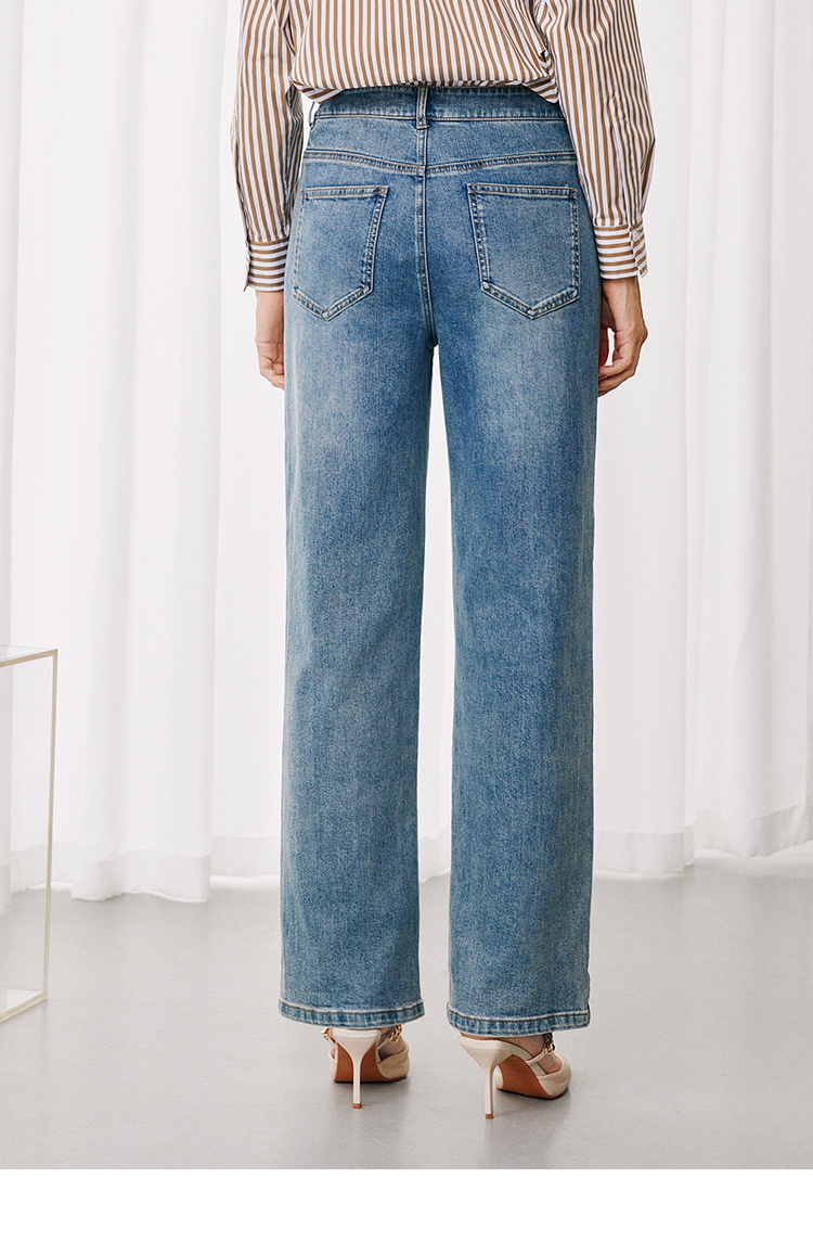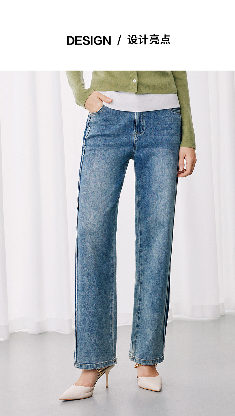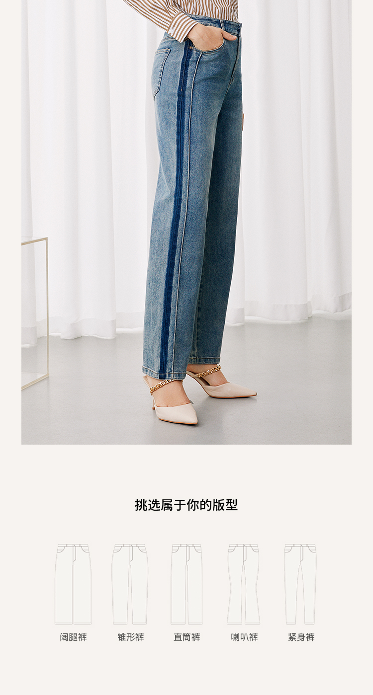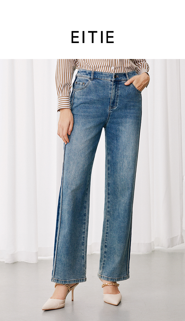 EITIE爱特爱休闲舒适通勤直筒高腰显瘦百搭牛仔裤秋季新款7905614