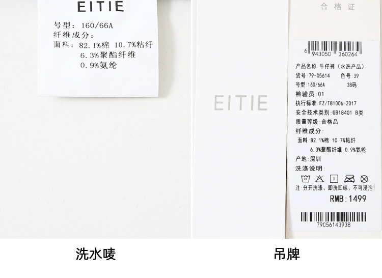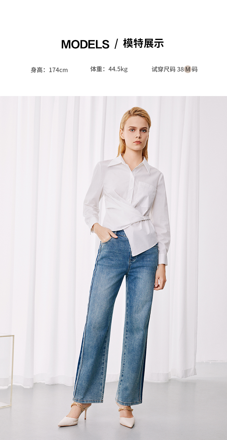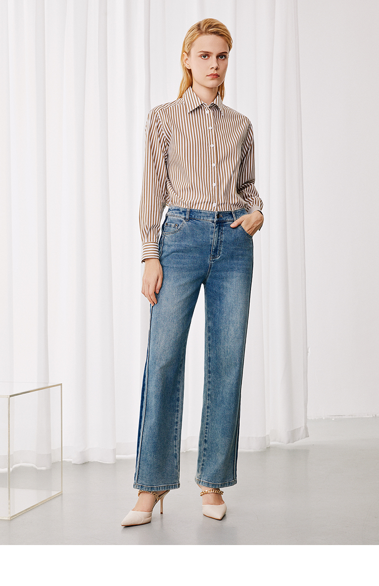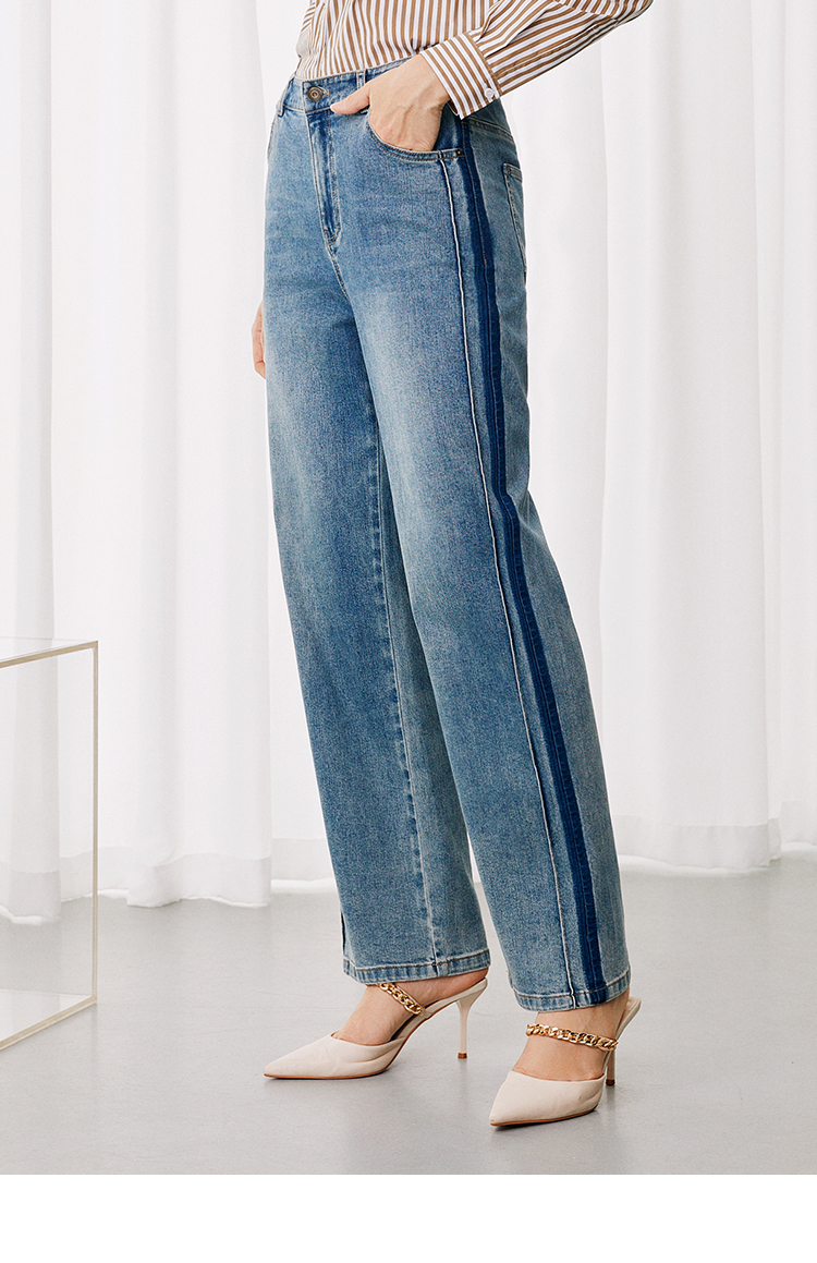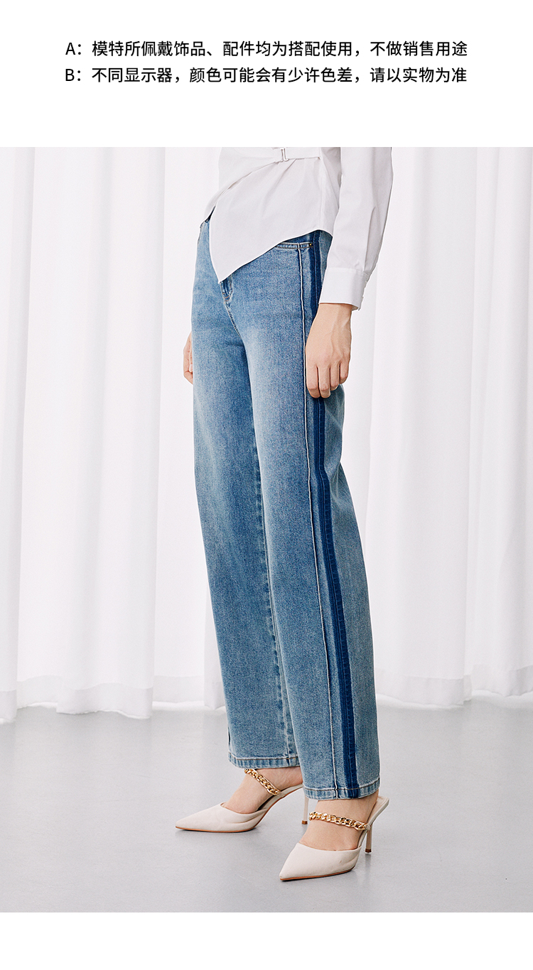EITIE爱特爱休闲舒适通勤直筒高腰显瘦百搭牛仔裤秋季新款7905614