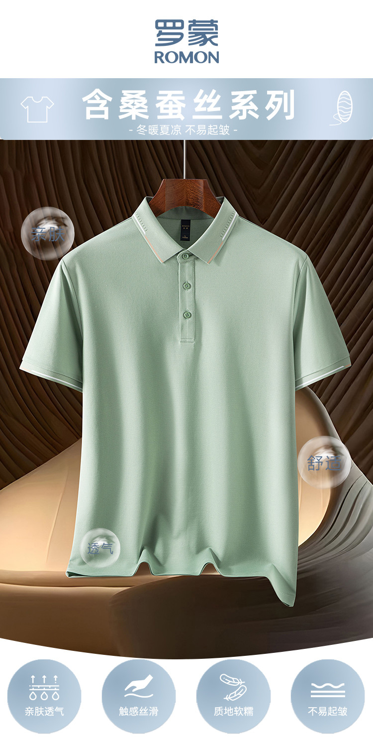 14LP50218【含桑蚕丝&亚麻】罗蒙夏季商务男polo衫休闲男士t恤短袖polo衫