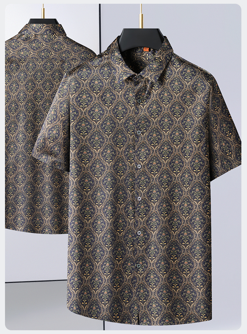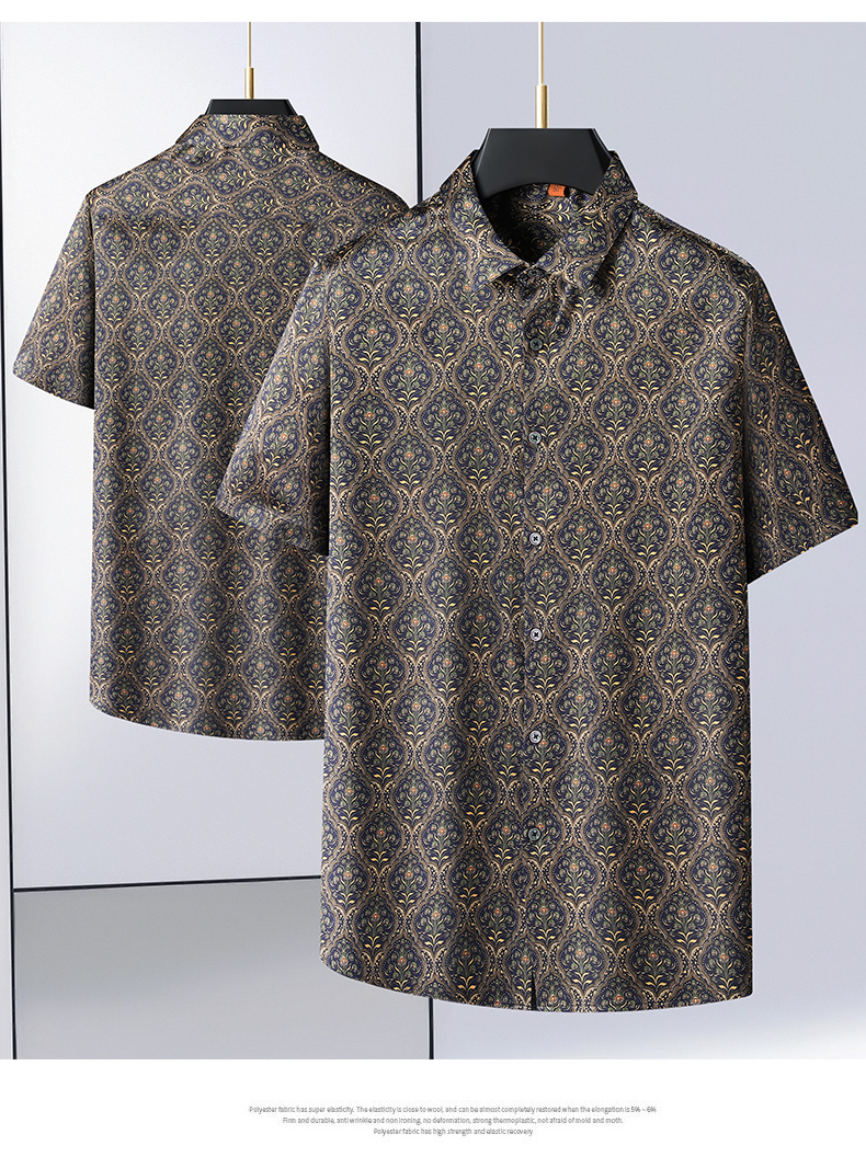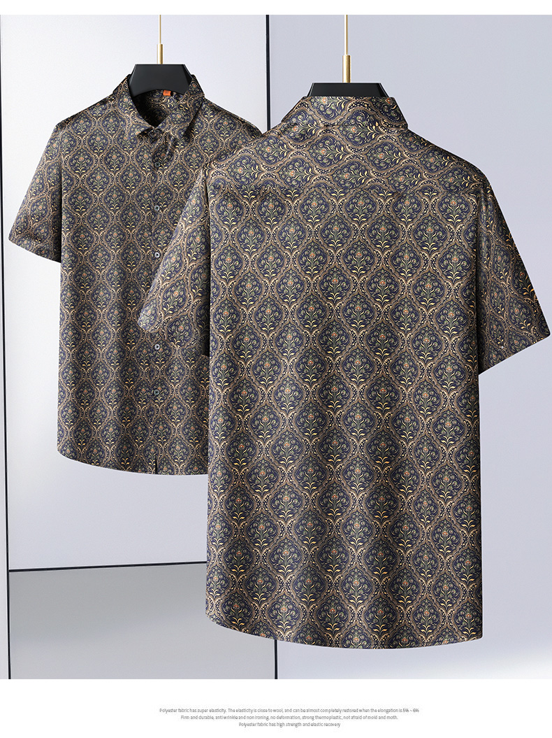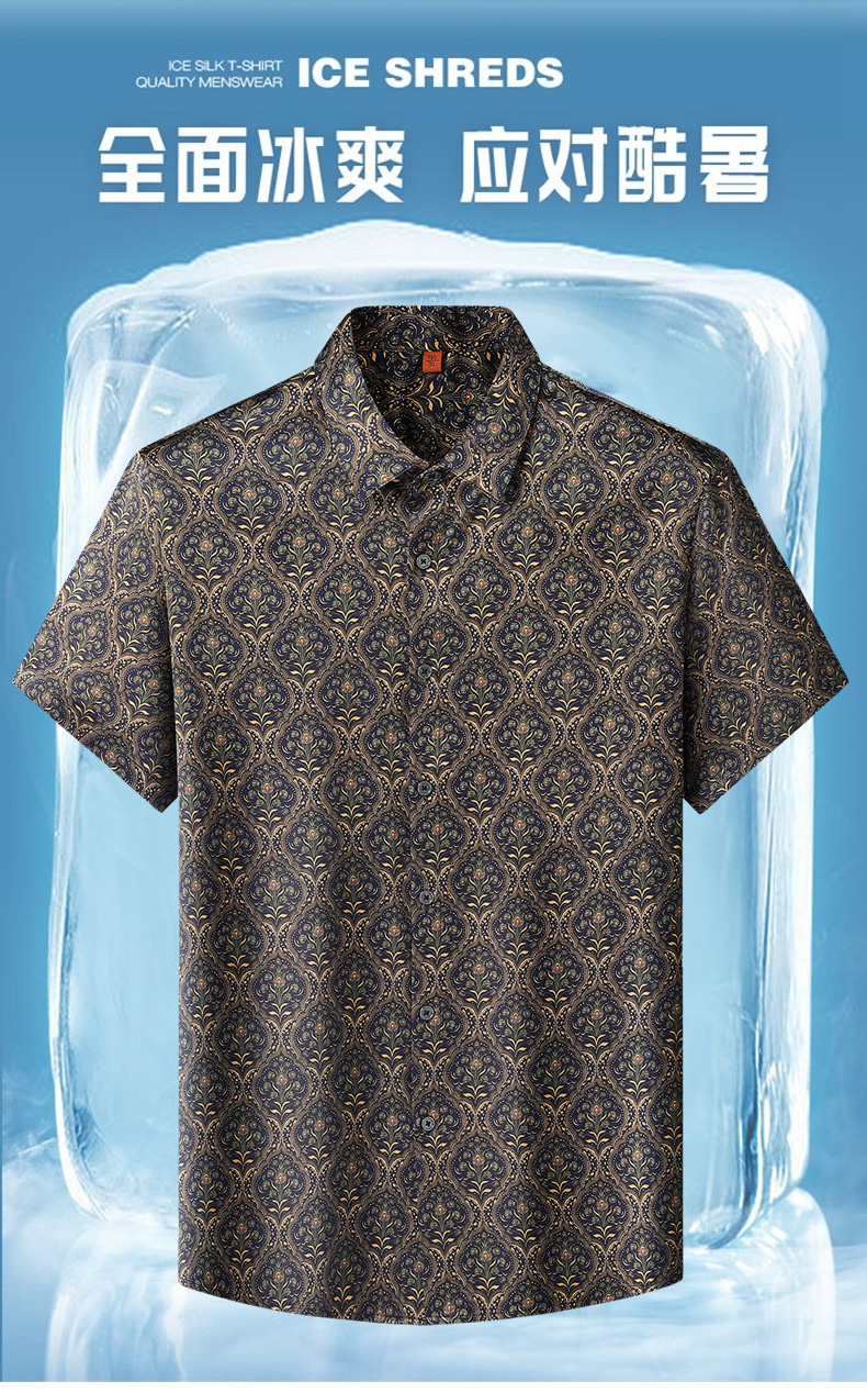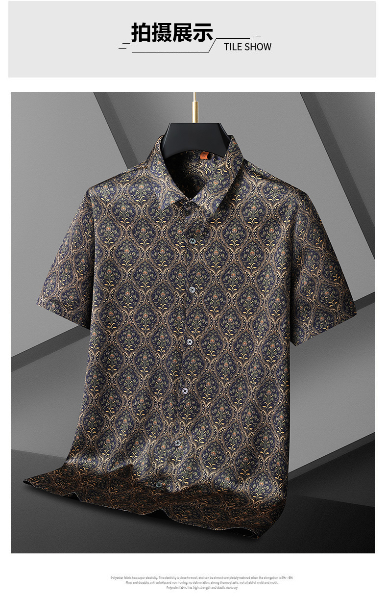 【90%桑蚕丝】【新款DWP】大依优型大码高品质短袖衬衫翻领加肥加大男士大号弹力透气舒适半袖夏装