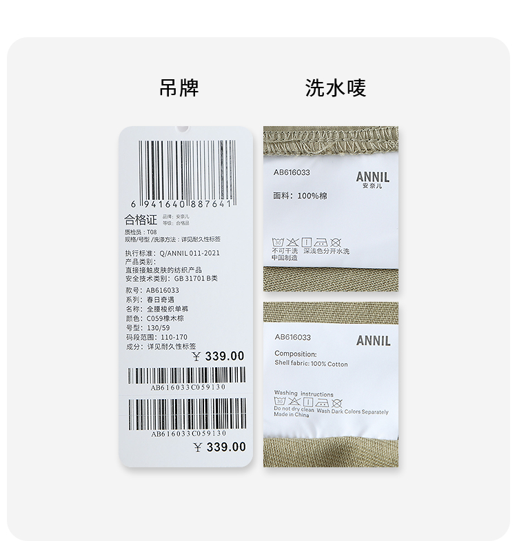 【实体店同款】男童全腰梭织单裤春季新款安奈儿童装AB616033