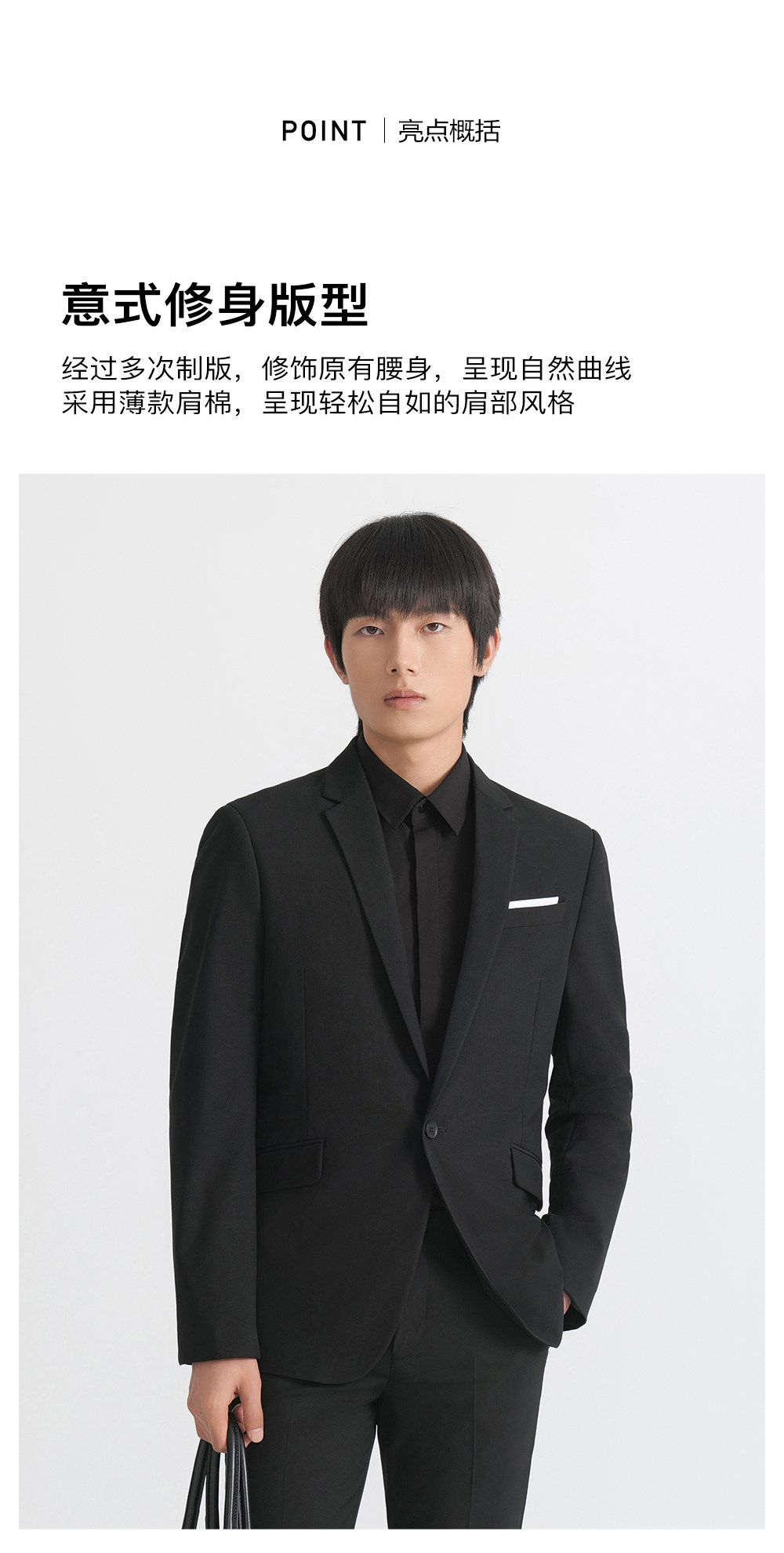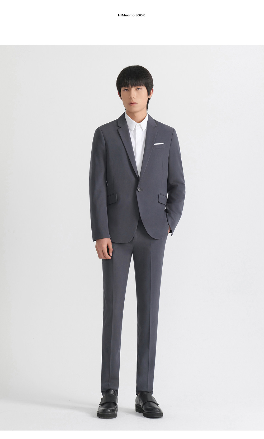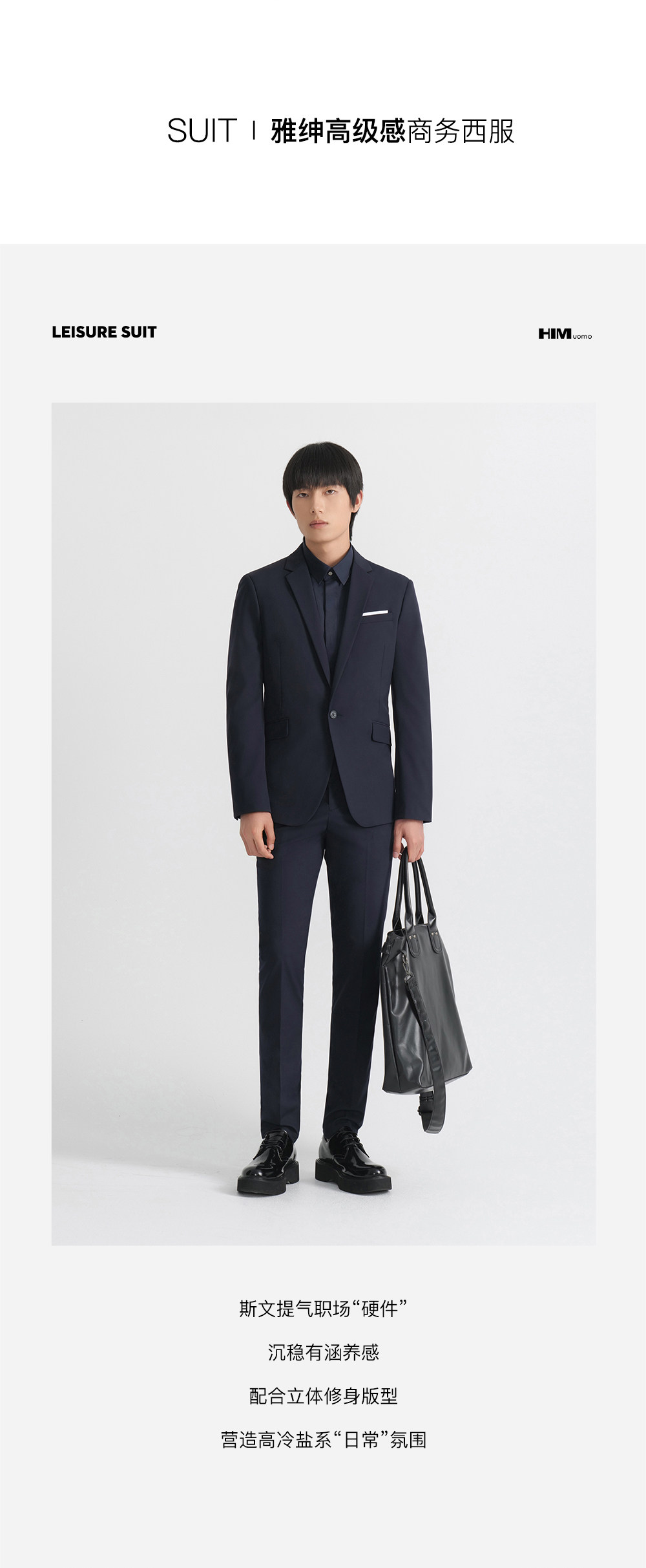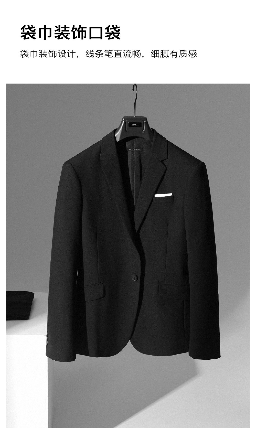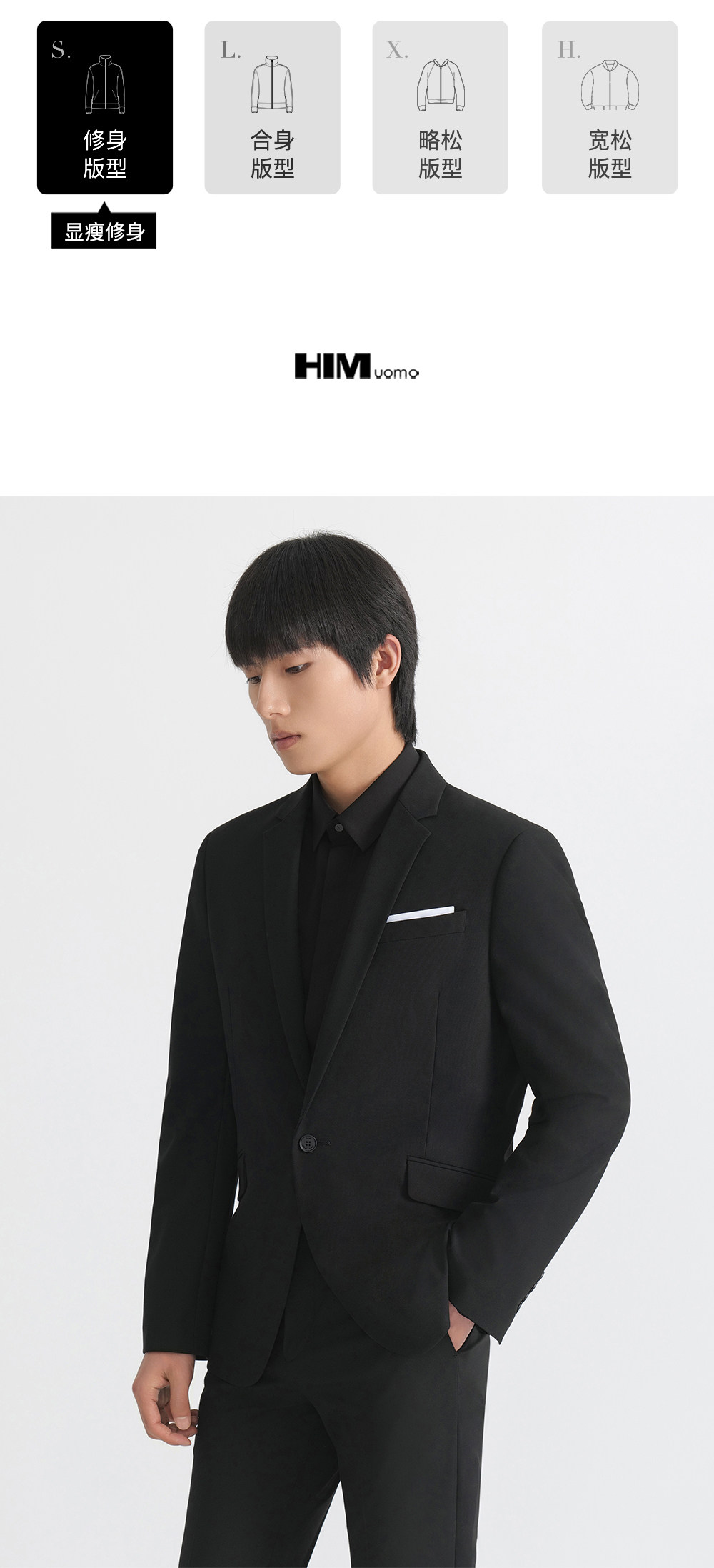 HIM漢崇 套装西装商务上班正装免烫抗皱高端经典黑色结婚宴会礼服