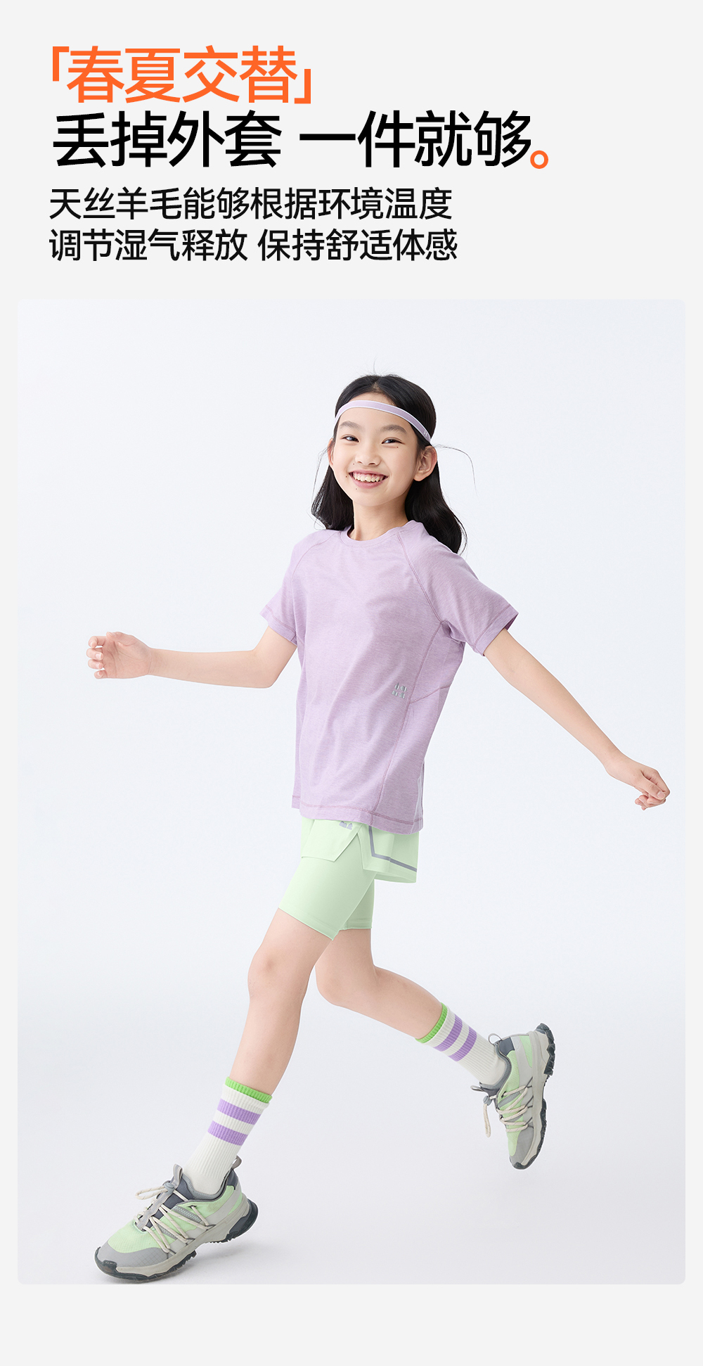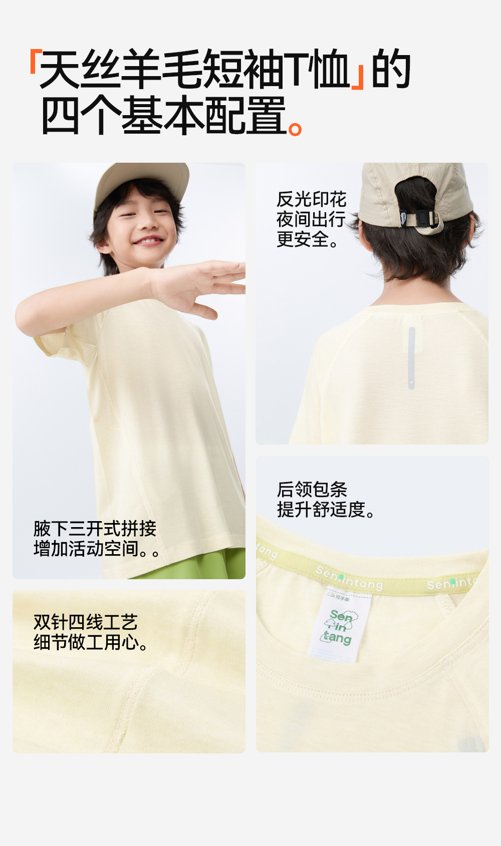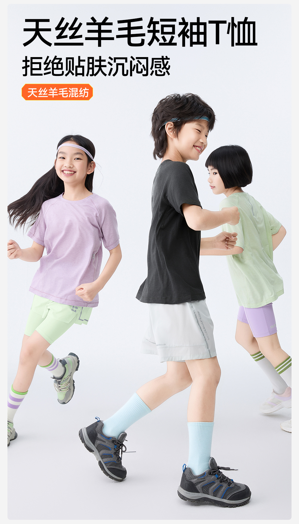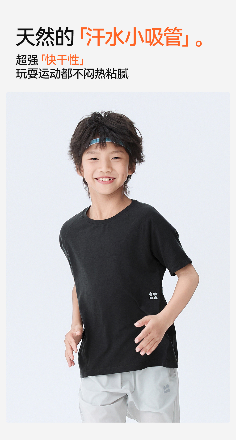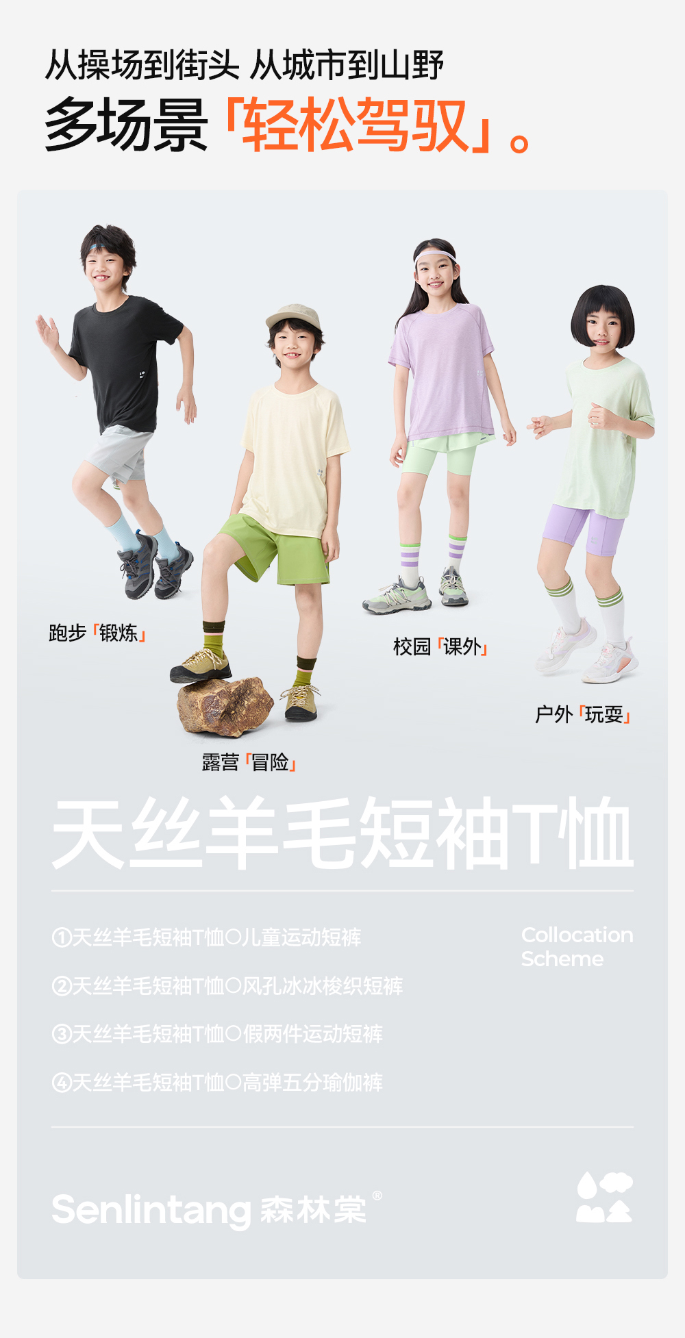【天丝羊毛短袖T恤】森林棠25夏款,儿童凉感亲肤纯色圆领T恤40322540【LA】