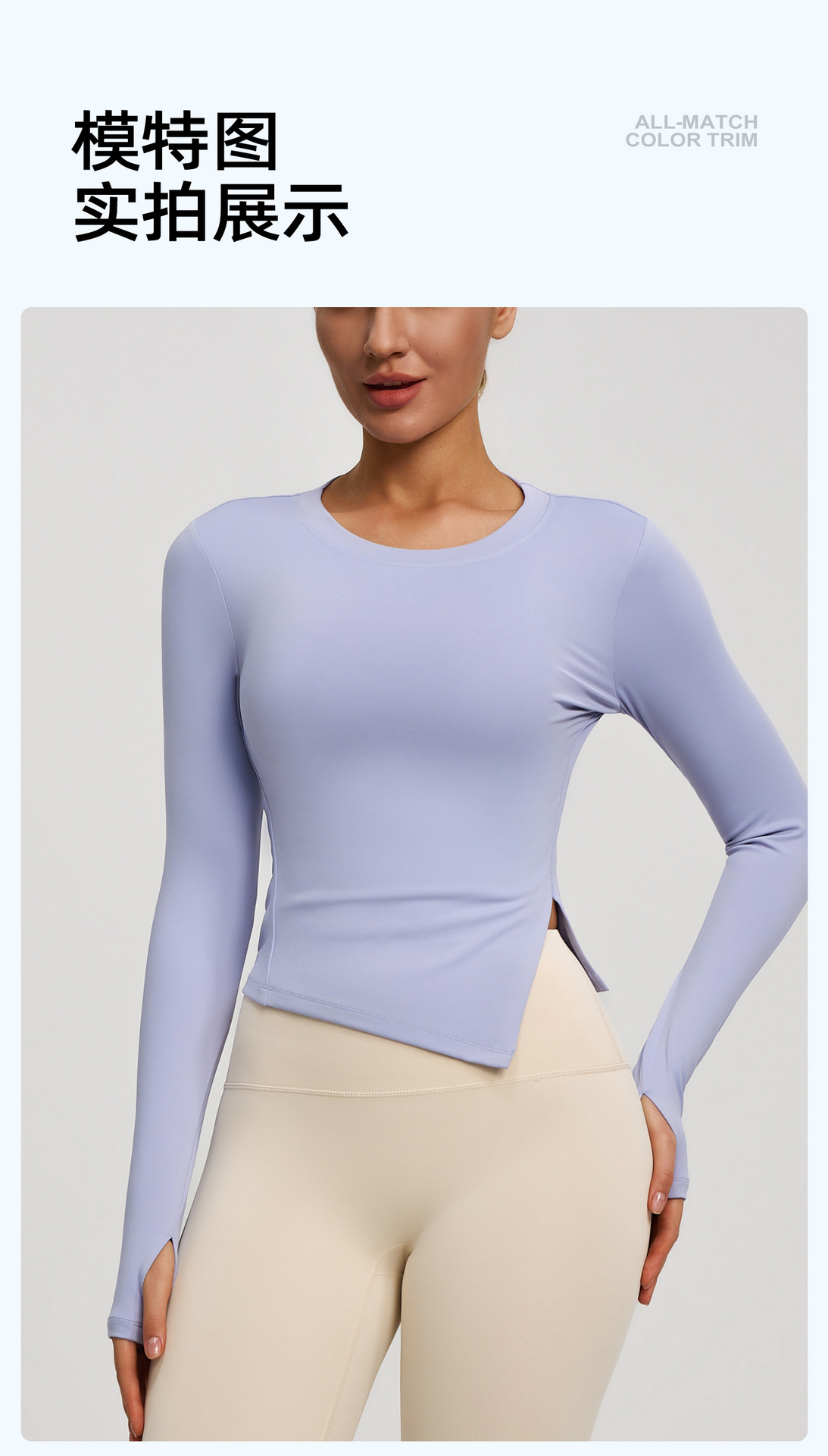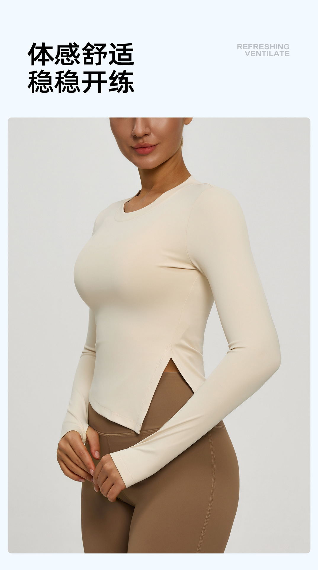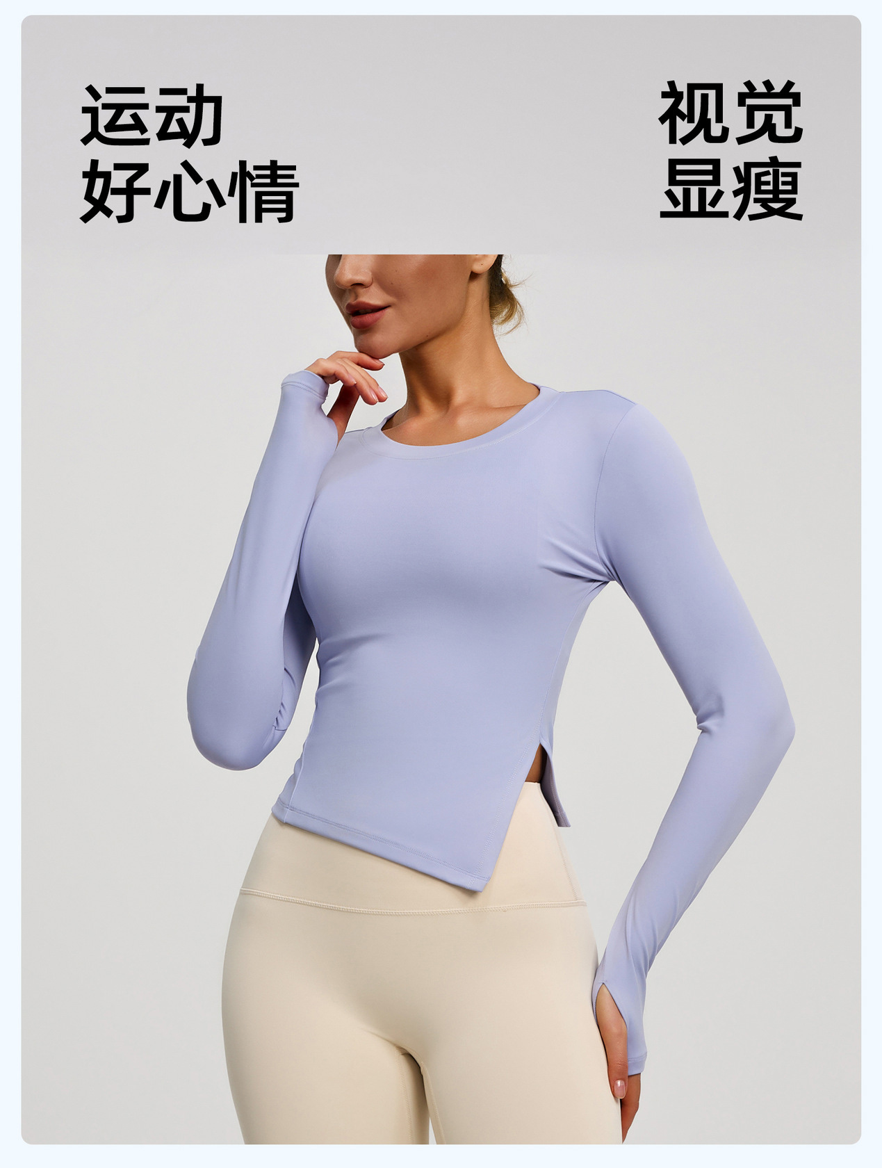 跃牌【瑜堂系列】新款修身开叉瑜伽服吸湿排汗透气长袖休闲运动健身衣夏季女JYMC183