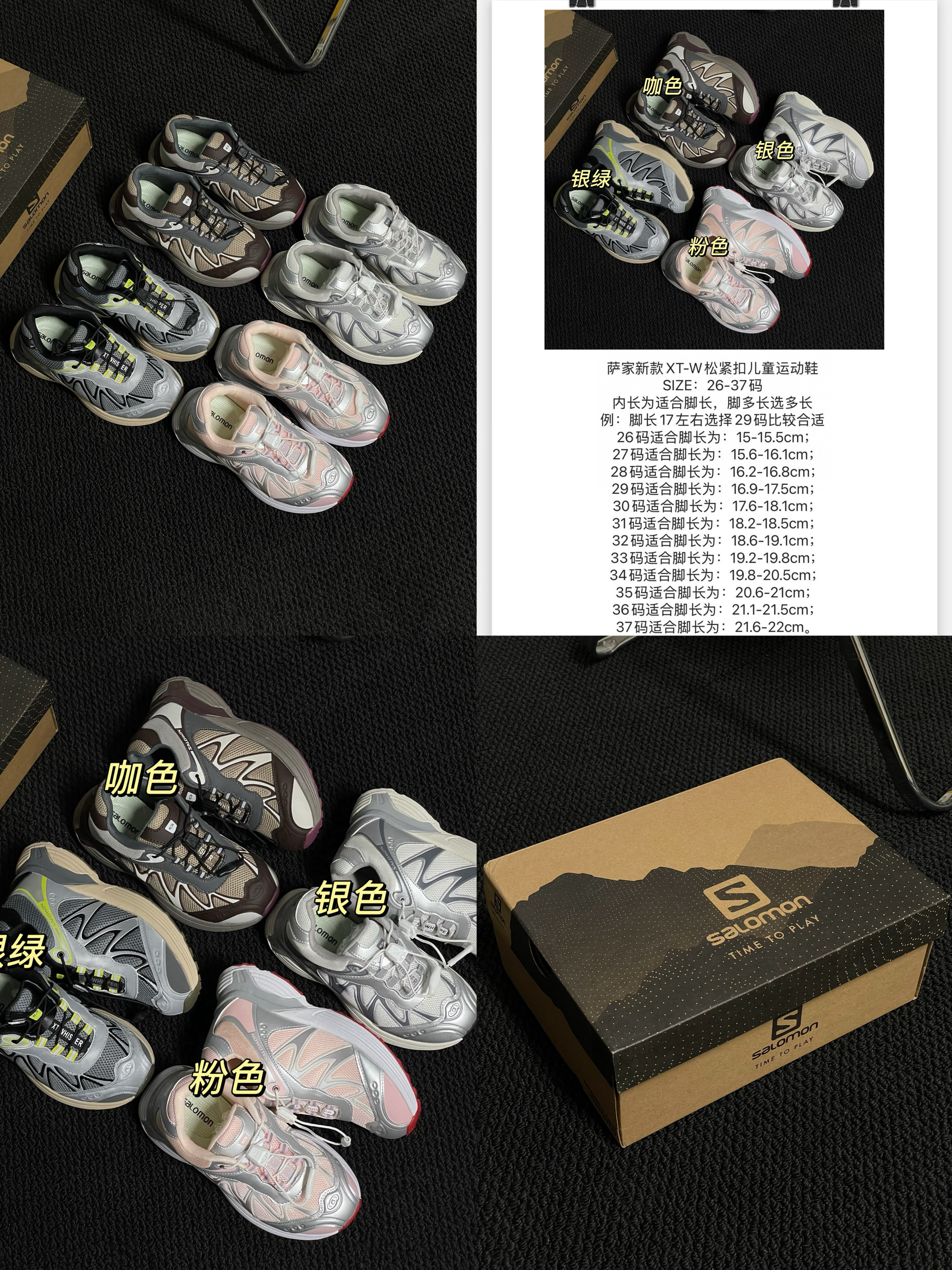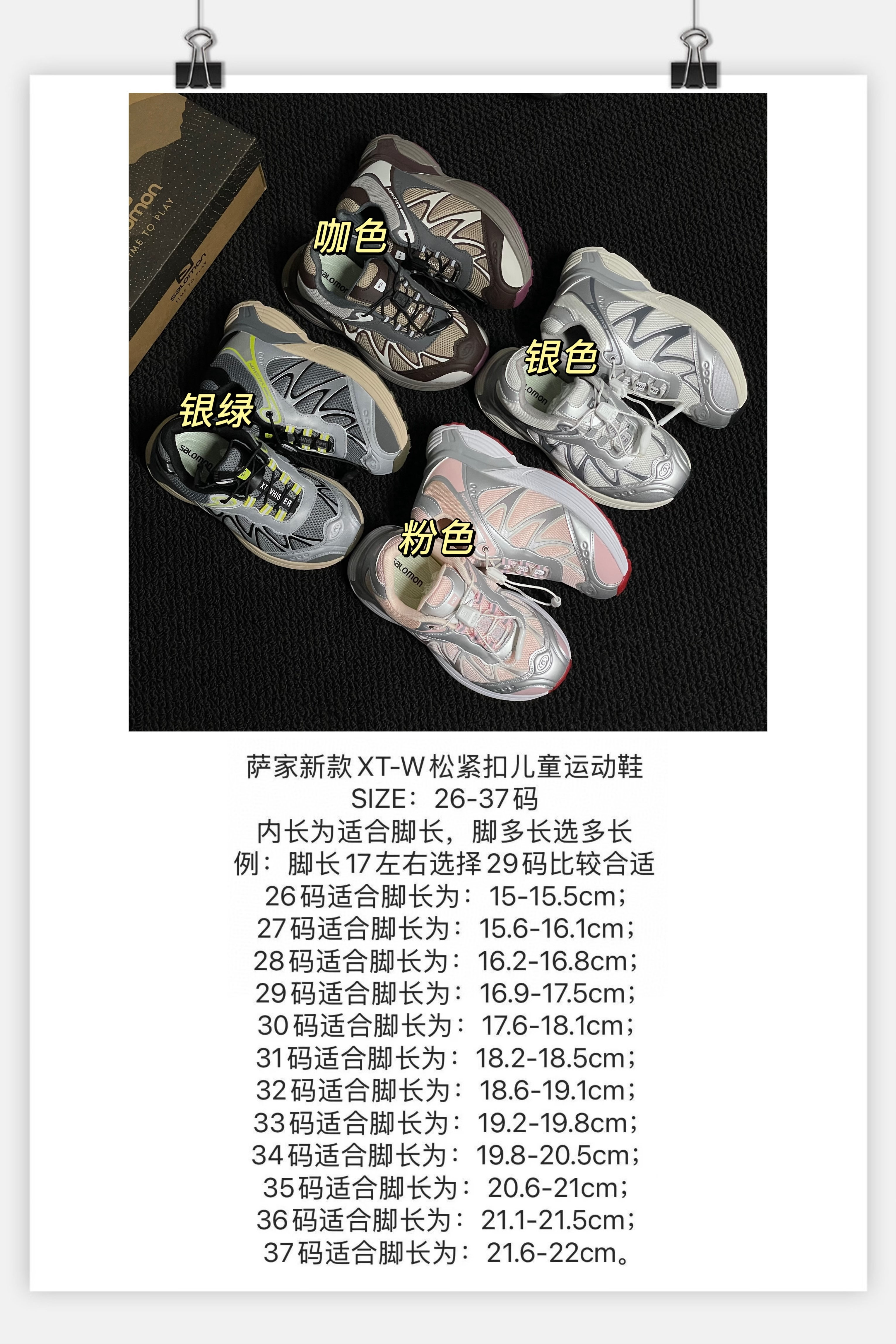 【童鞋款】‼️!萨&蒙XT-W儿童运动鞋|新款上市 萨洛蒙经典系列再出新品!XT-W儿童运动鞋,26-37码覆盖成长关键期,承包孩子从学步到跑跳的舒适体验。一扣即穿的松紧扣设计,再也不用蹲点帮孩子系鞋带,穿脱效率翻倍;优质面料拼接出细腻质感,上手就知品质在线;搭配橡胶耐磨防滑大底,既像踩云朵般软弹,又能牢牢抓地,孩子追跑打闹也稳当,宝妈闭眼入不踩雷!