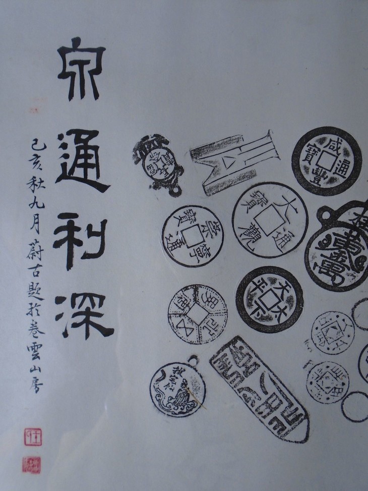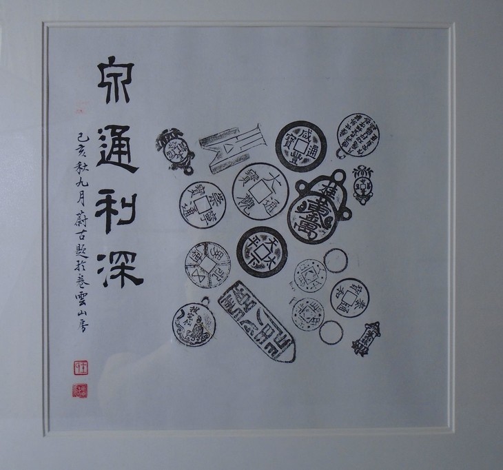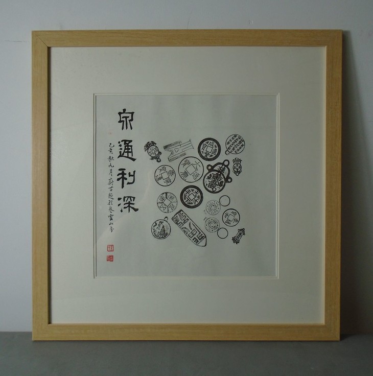 古泉书馆原拓挂件,书馆专职拓工精心拓纸而成,名家题字,精工装裱,超凡脱俗,钱币均为市面难寻的珍惜钱币,每一件都独一无二的精品, 精美绝伦!