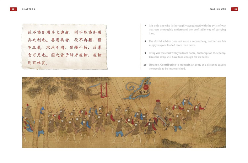 这本豪华的精装本展示了孙子的《孙子兵法》,这是早和著名的关于军事科学的论文,以模板页边和全彩插图为特色。