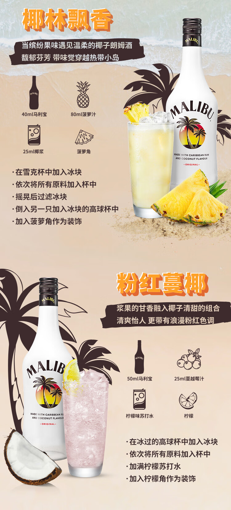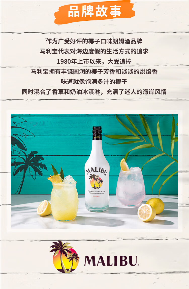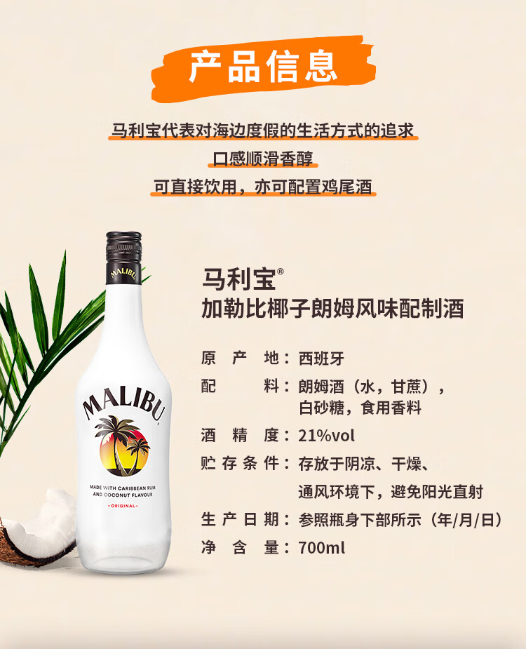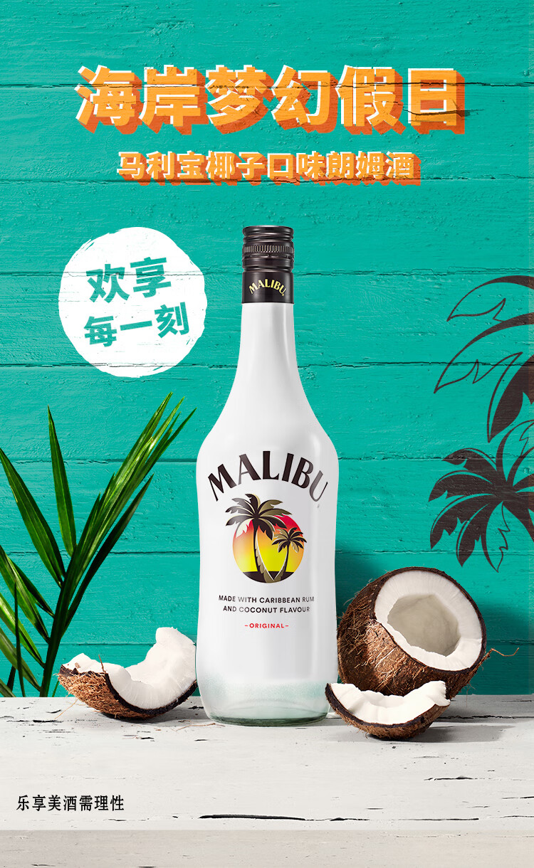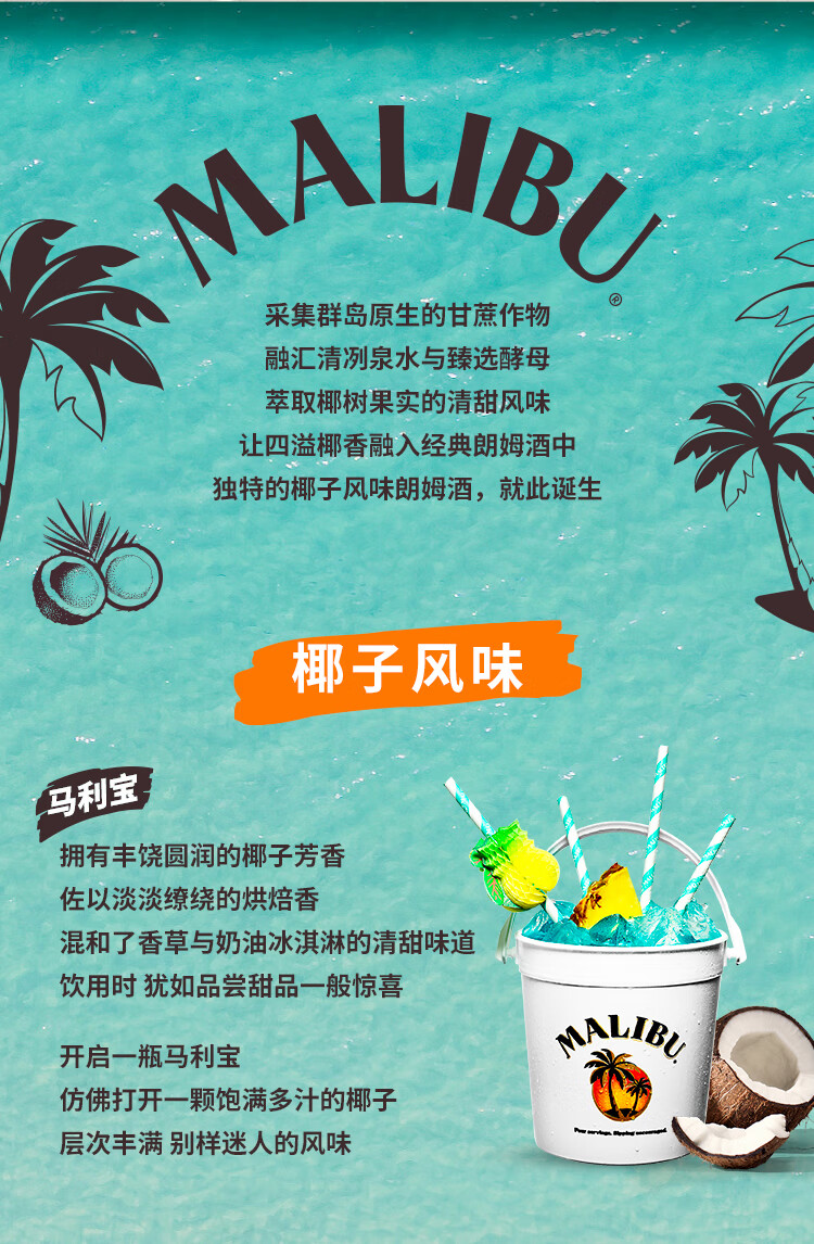 【单瓶】马利宝加勒比椰子朗姆酒 西班牙原瓶进口 700ml 21%vol
