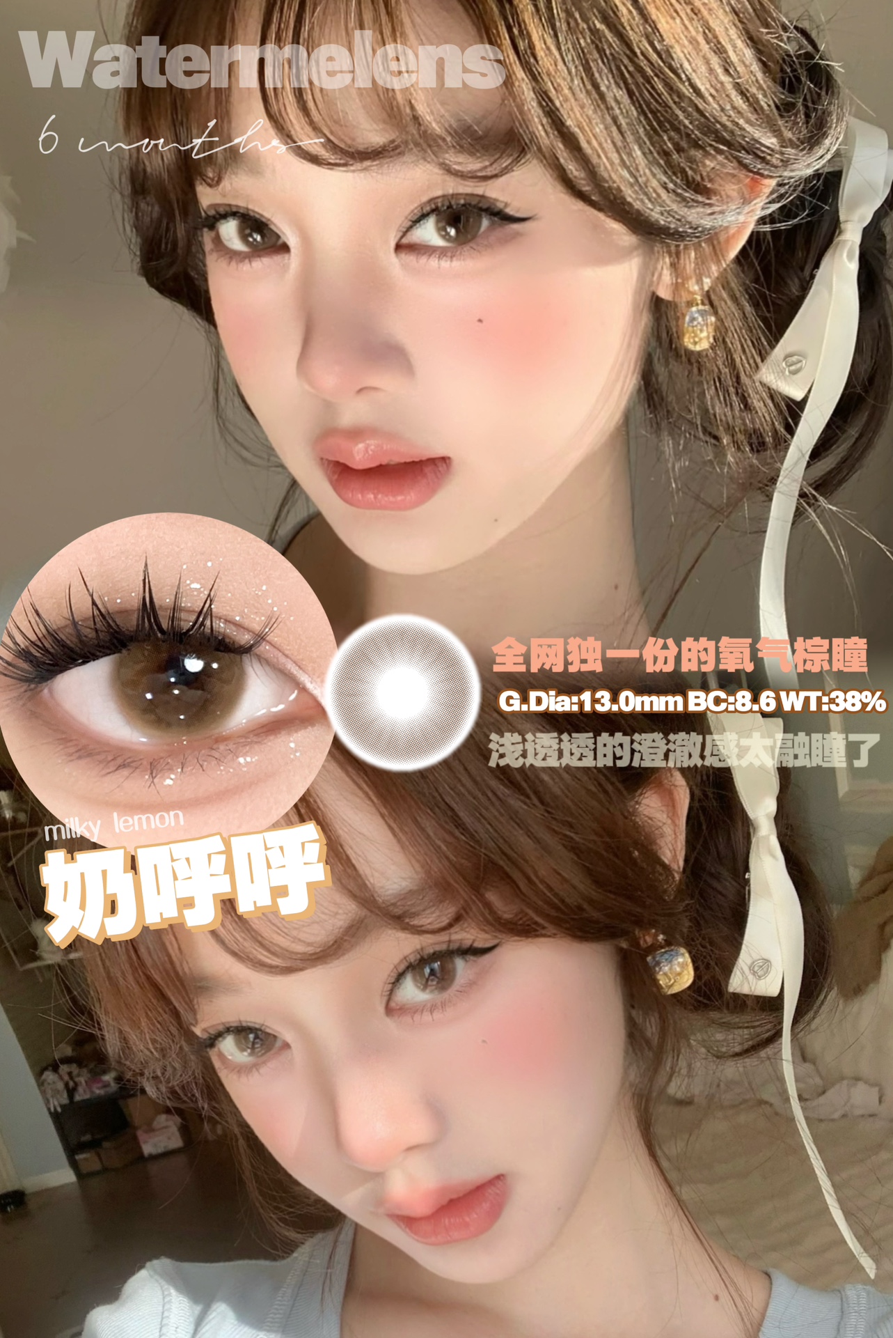 watermelens半年抛 黑米米/奶呼呼 棕 很自然很自然 14.0mm