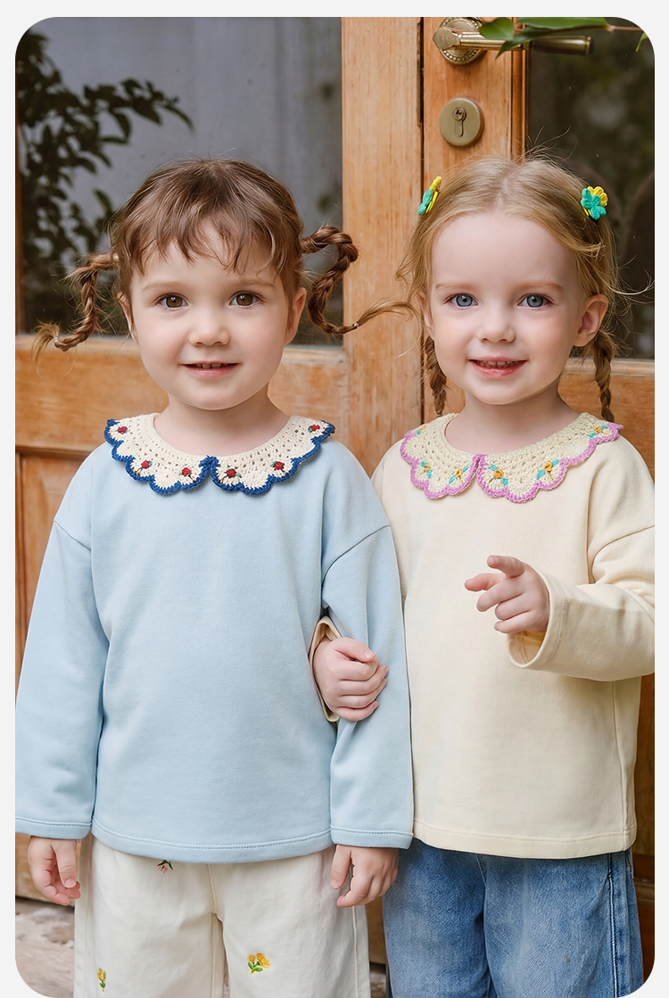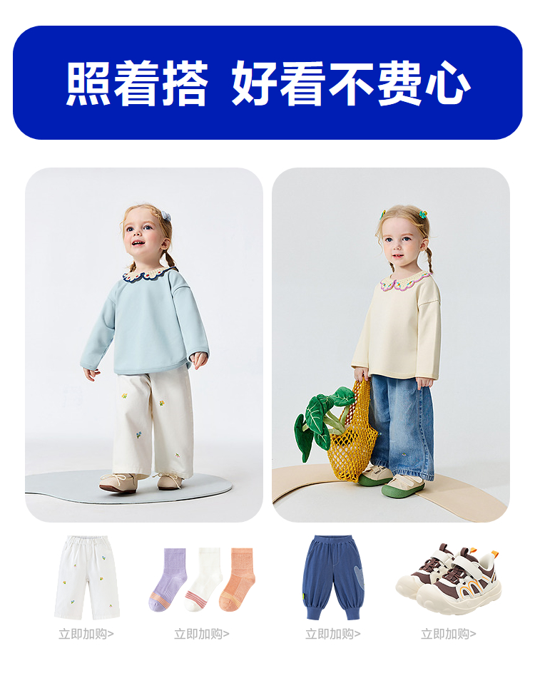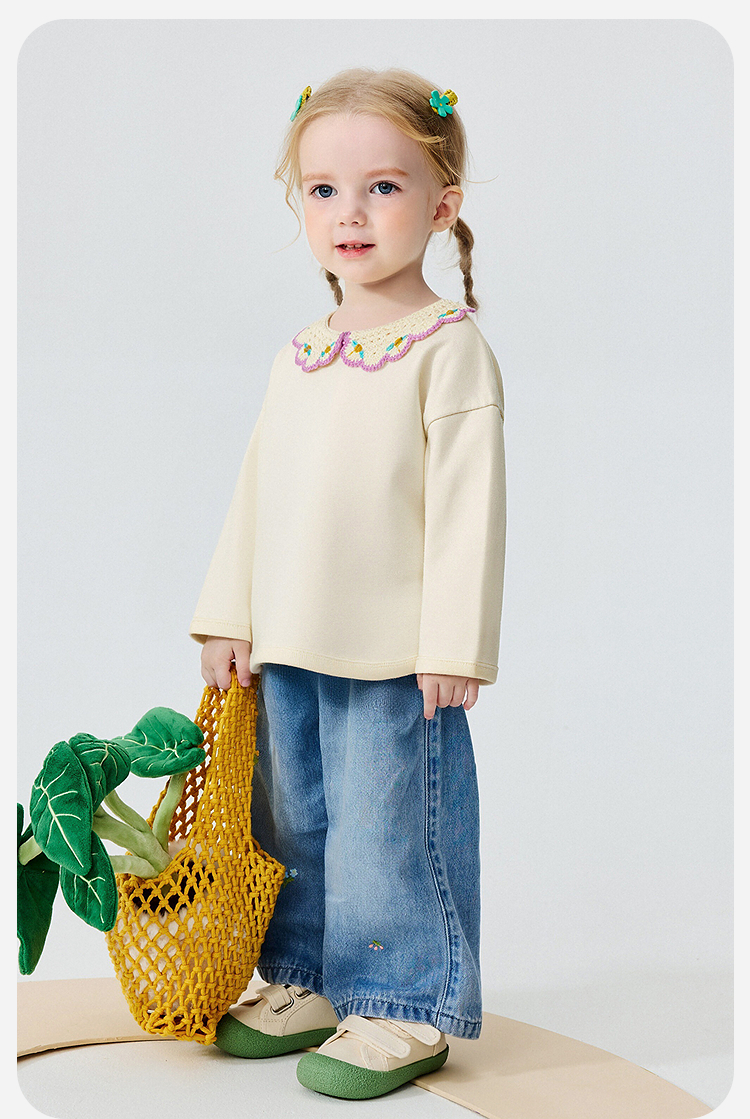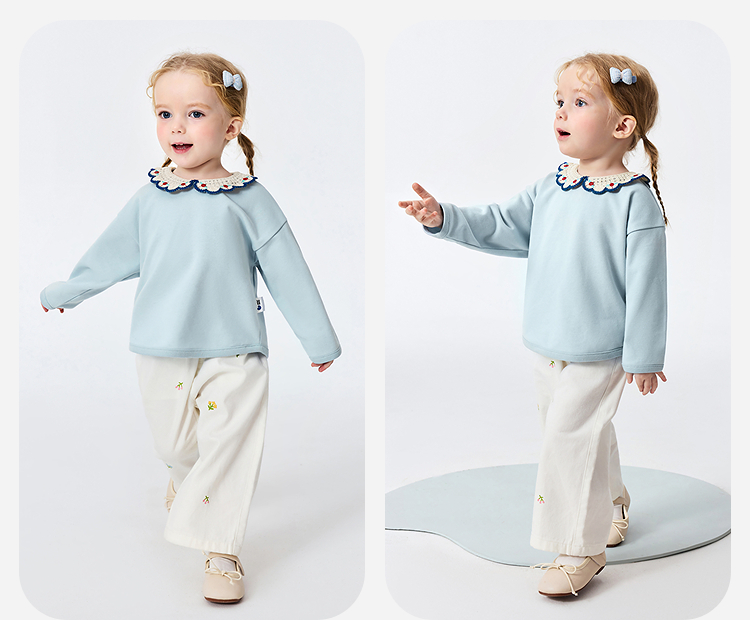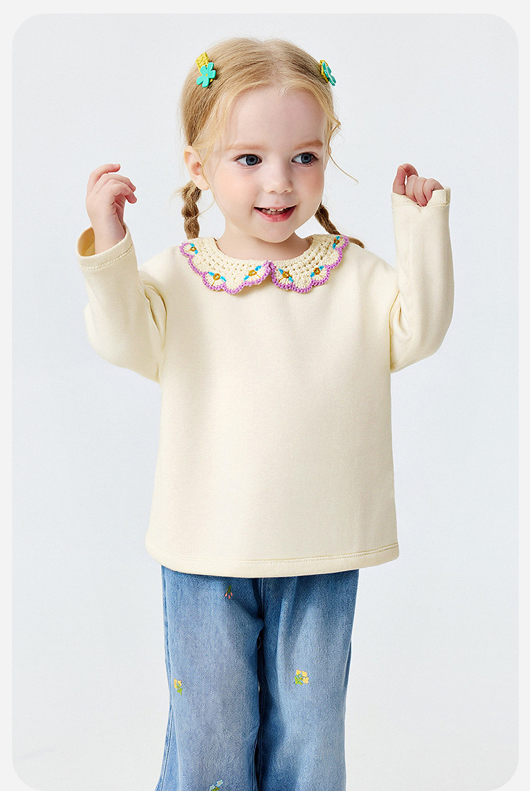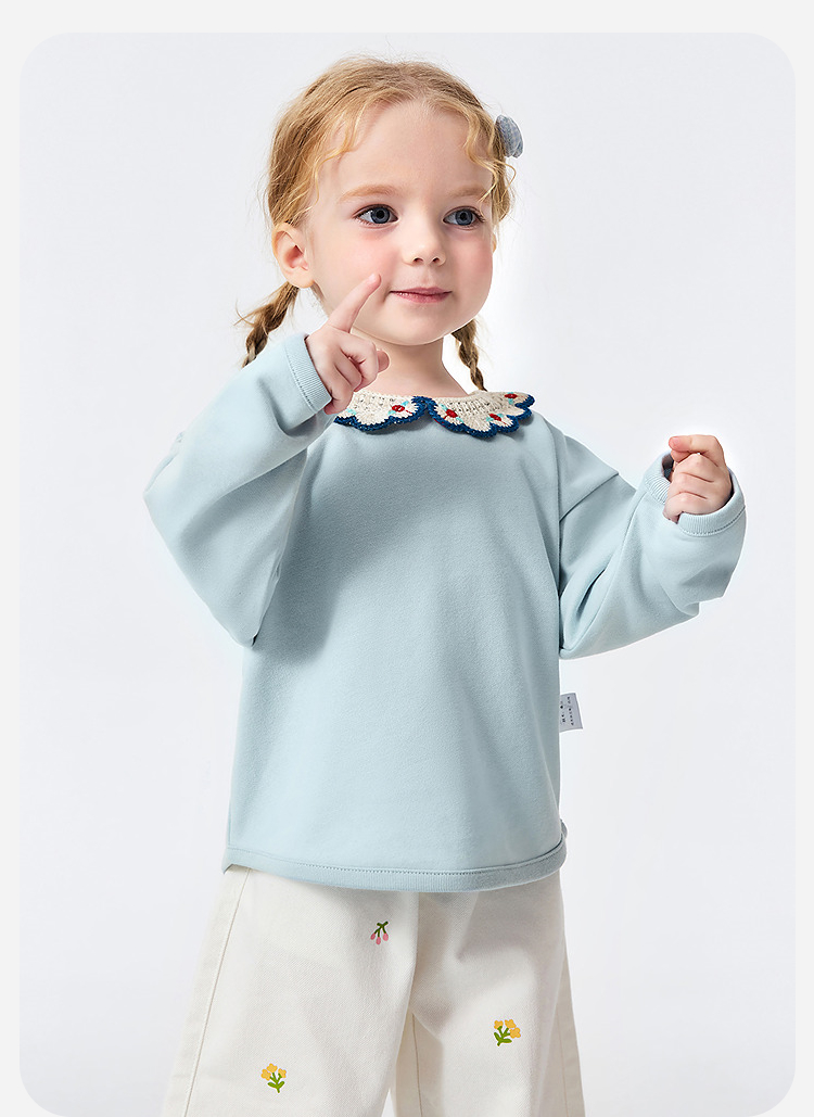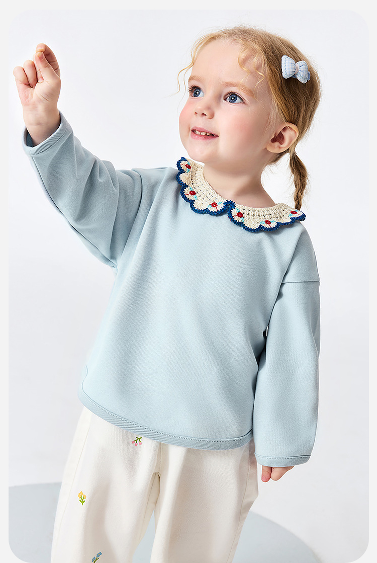 迷你巴拉女童宝宝卫衣春季新品亲肤舒适有型小花领子甜美可爱上衣