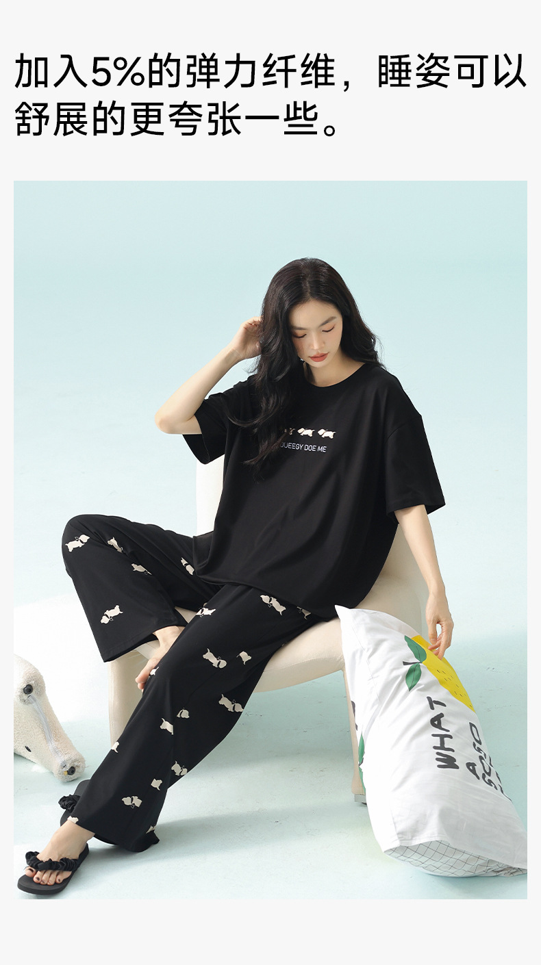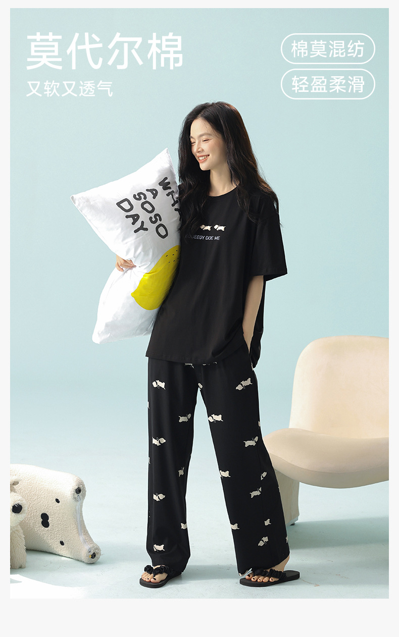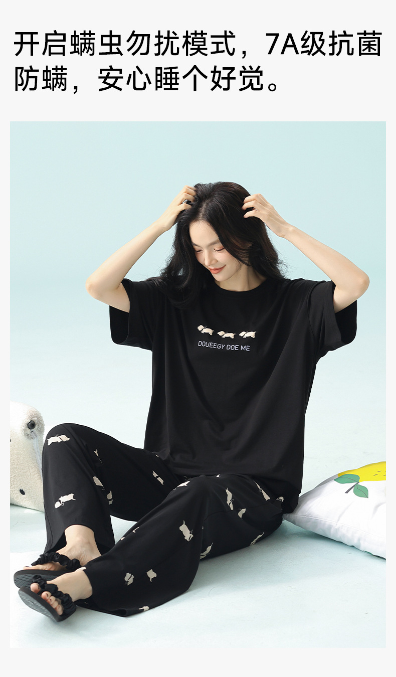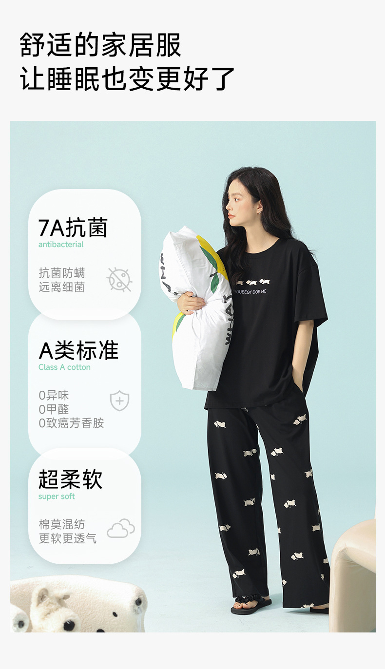 【超柔软莫代尔/新疆棉】春夏季短袖长裤睡衣 超柔莫代尔凉感棉抑菌韩版可爱薄款家居服