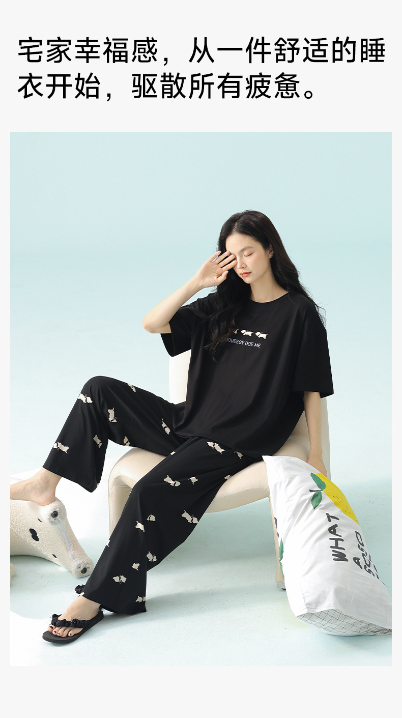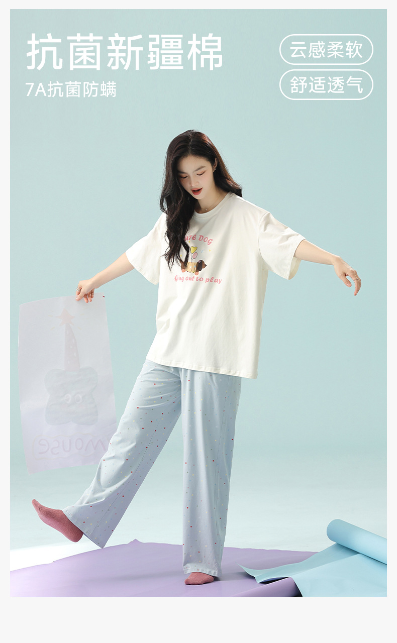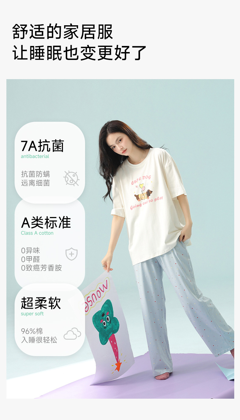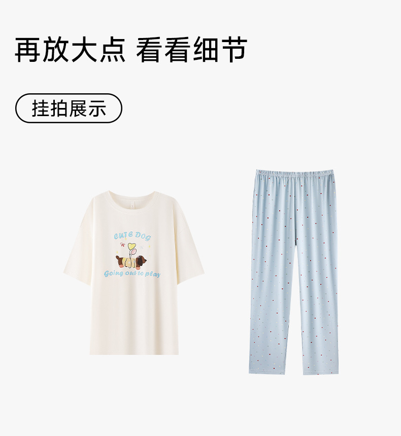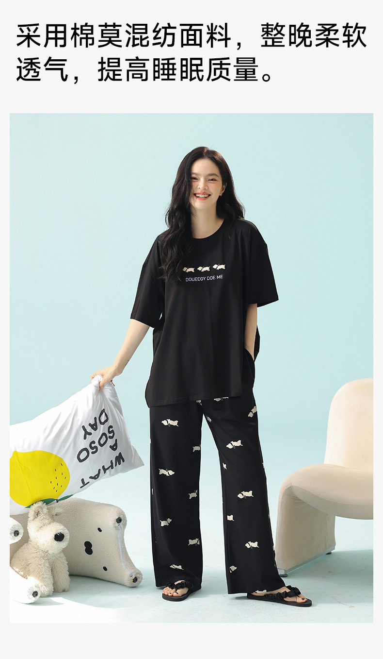 【超柔软莫代尔/新疆棉】春夏季短袖长裤睡衣 超柔莫代尔凉感棉抑菌韩版可爱薄款家居服
