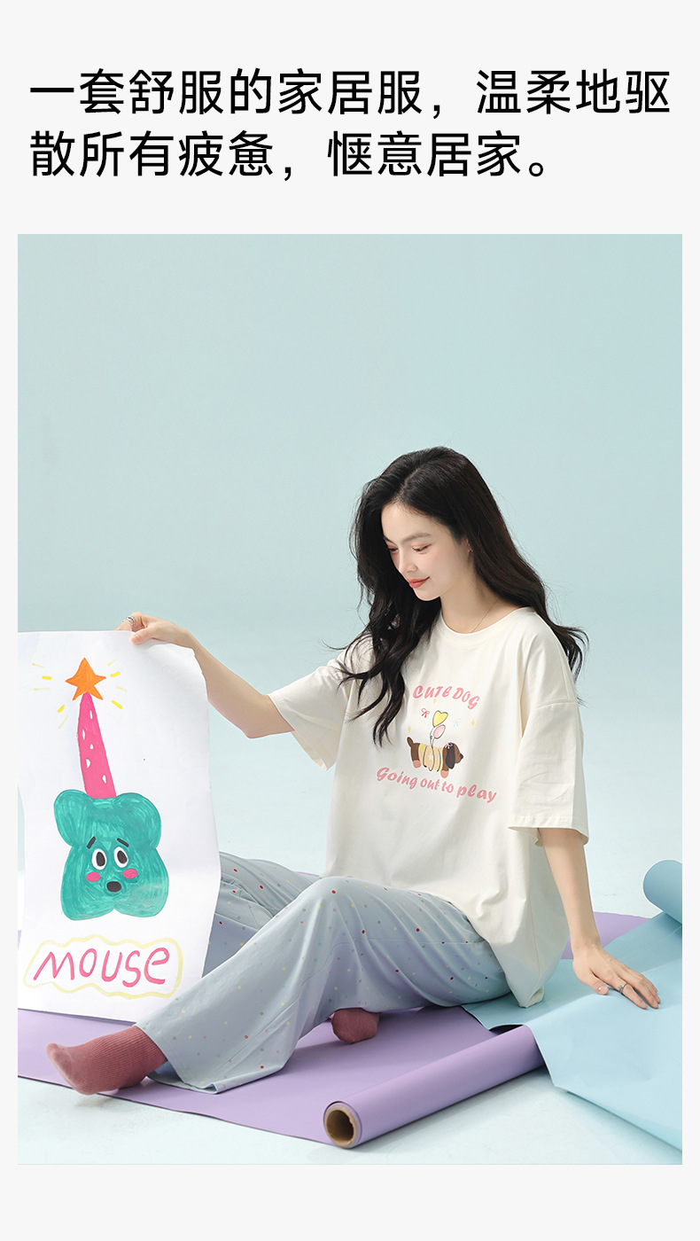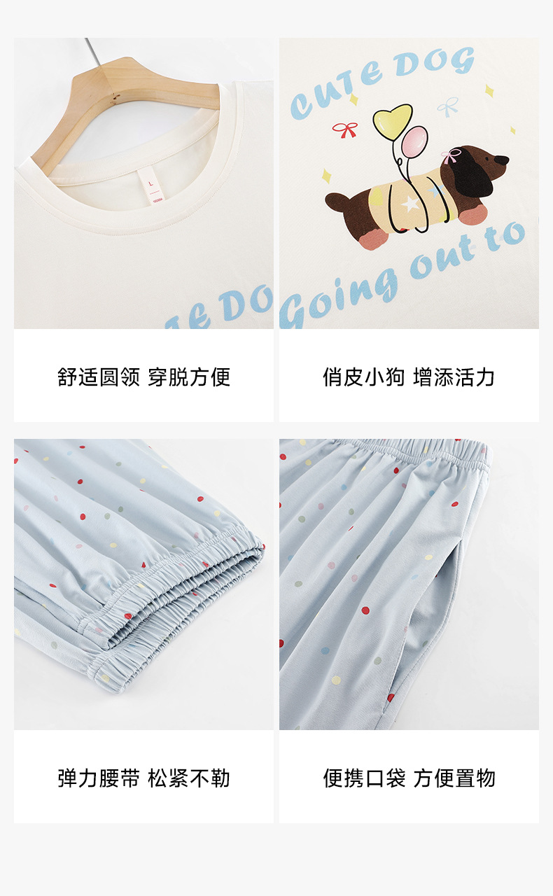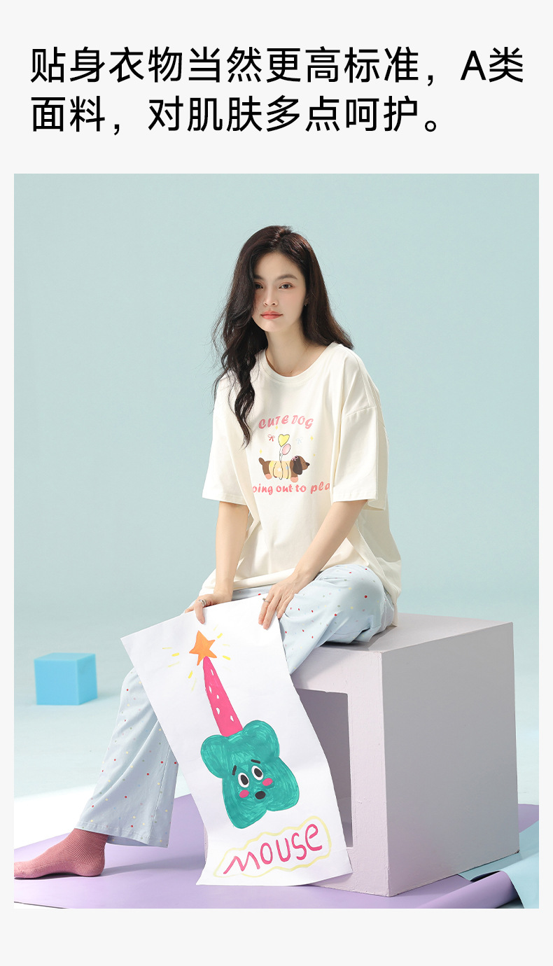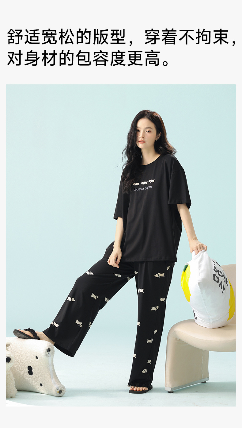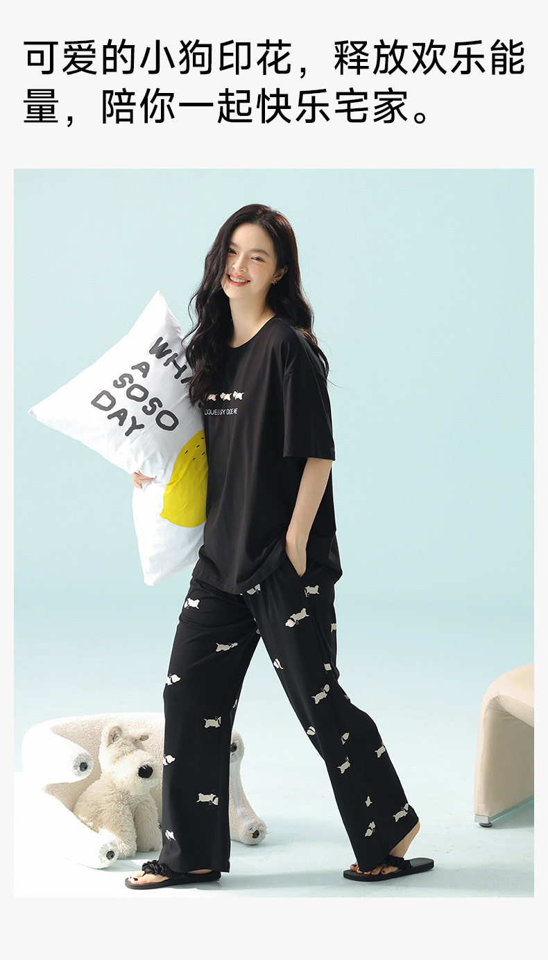 【超柔软莫代尔/新疆棉】春夏季短袖长裤睡衣 超柔莫代尔凉感棉抑菌韩版可爱薄款家居服