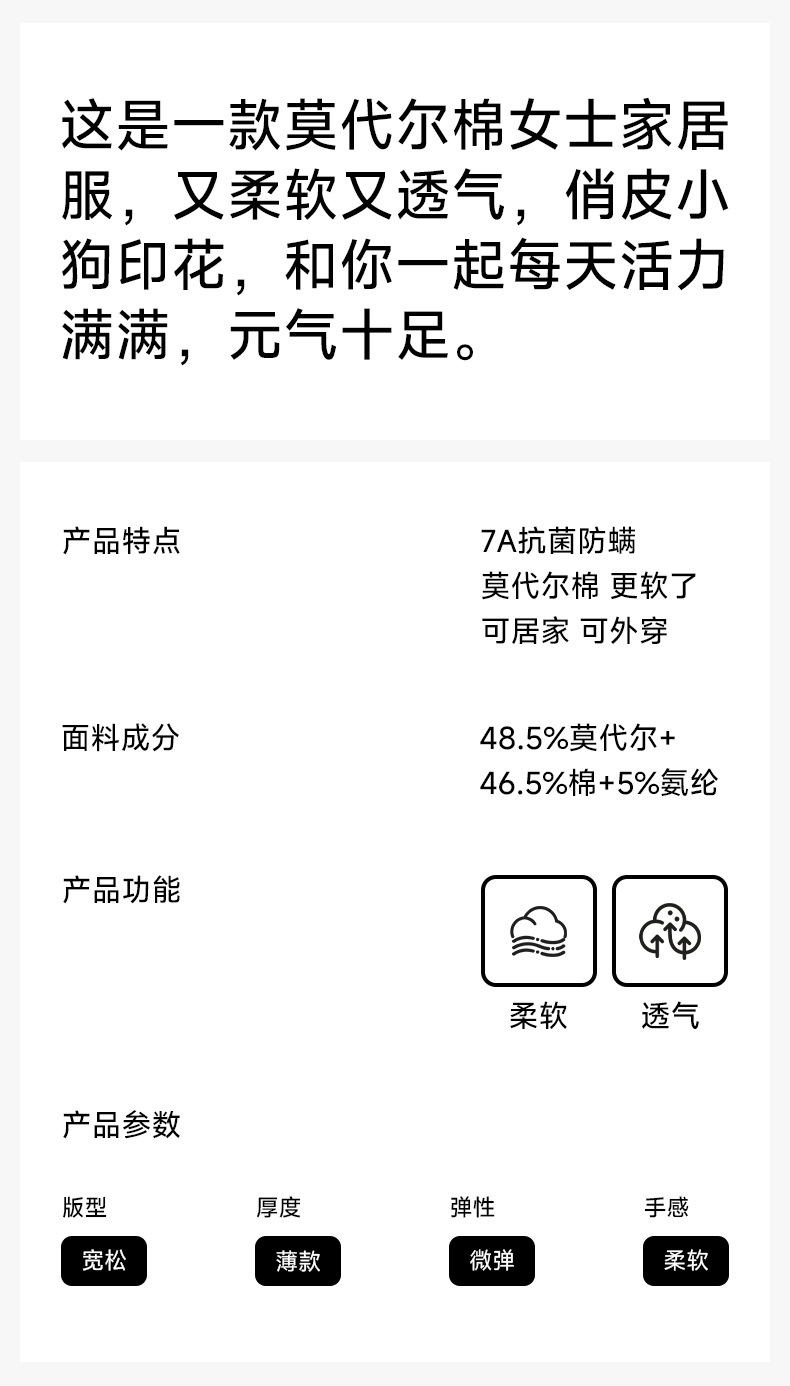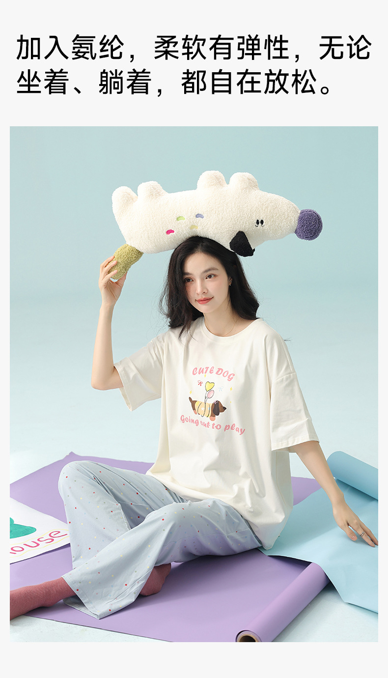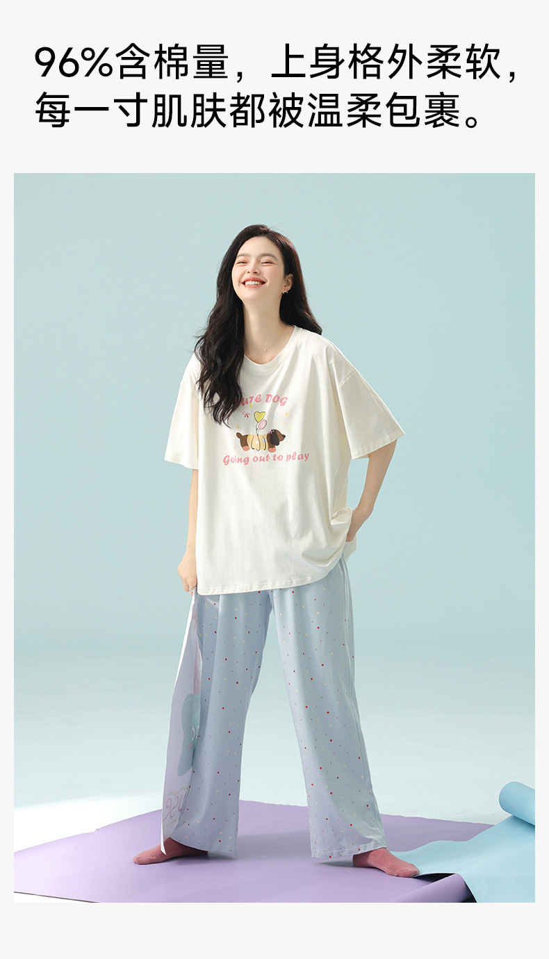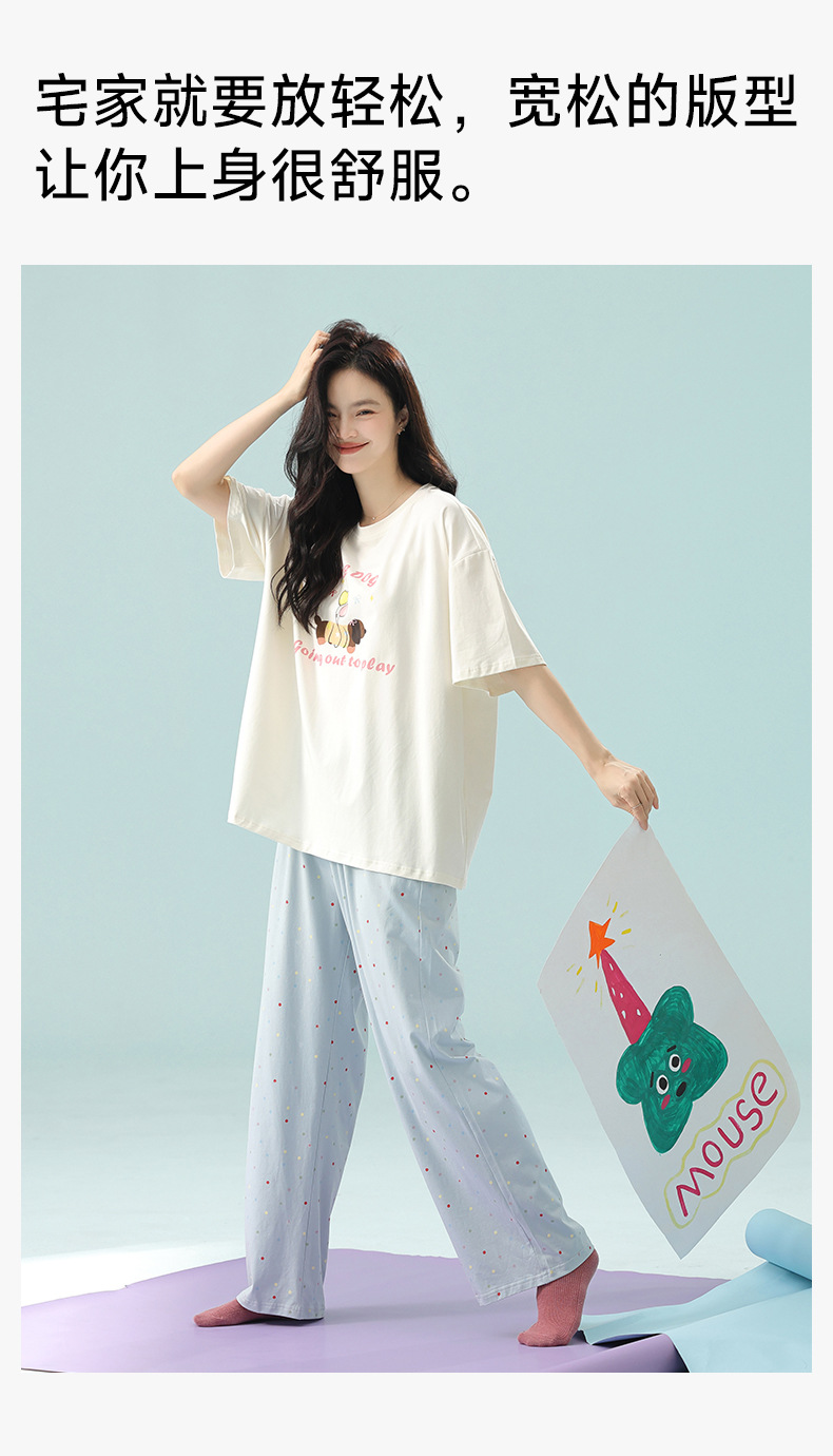 【超柔软莫代尔/新疆棉】春夏季短袖长裤睡衣 超柔莫代尔凉感棉抑菌韩版可爱薄款家居服