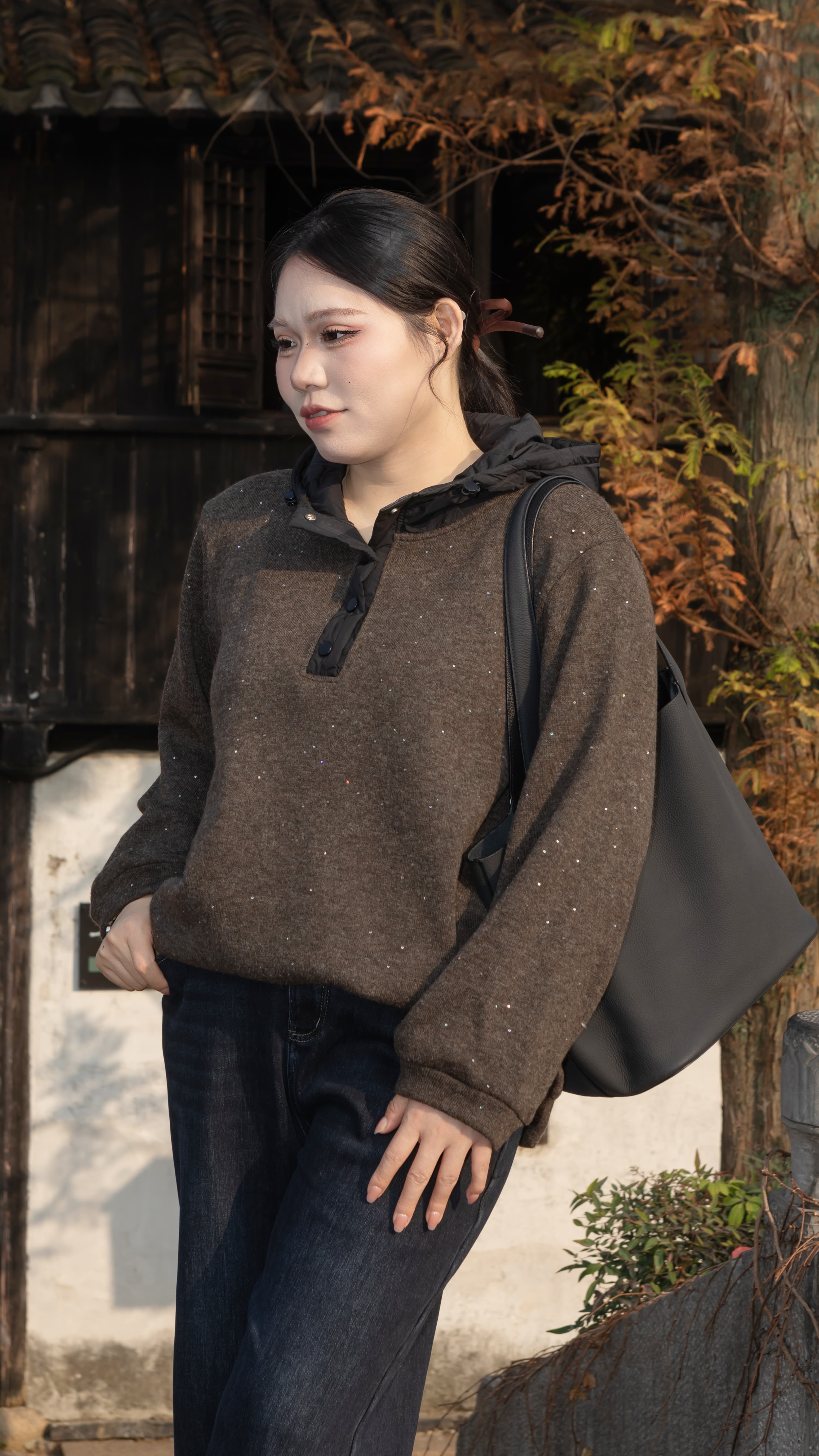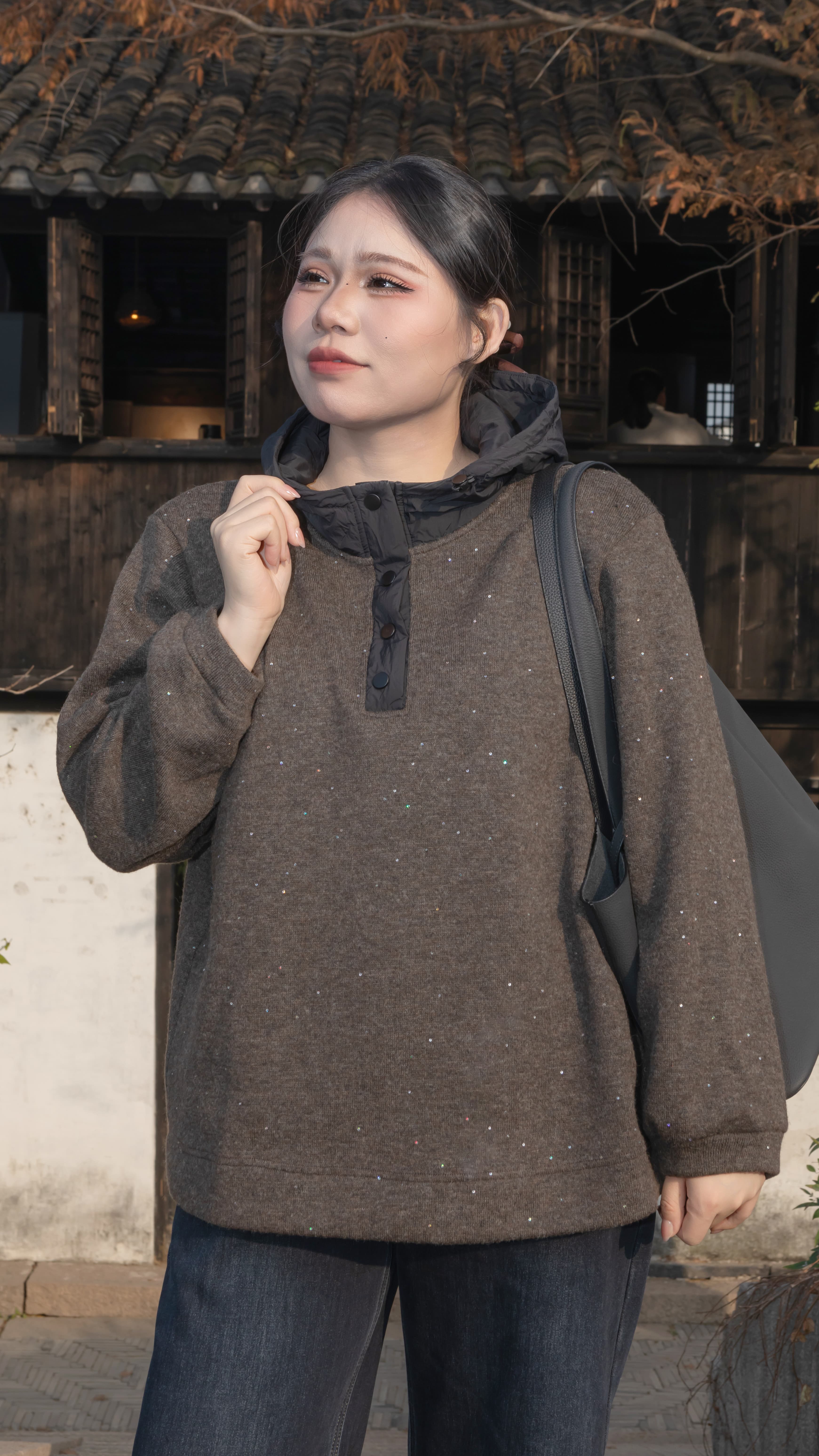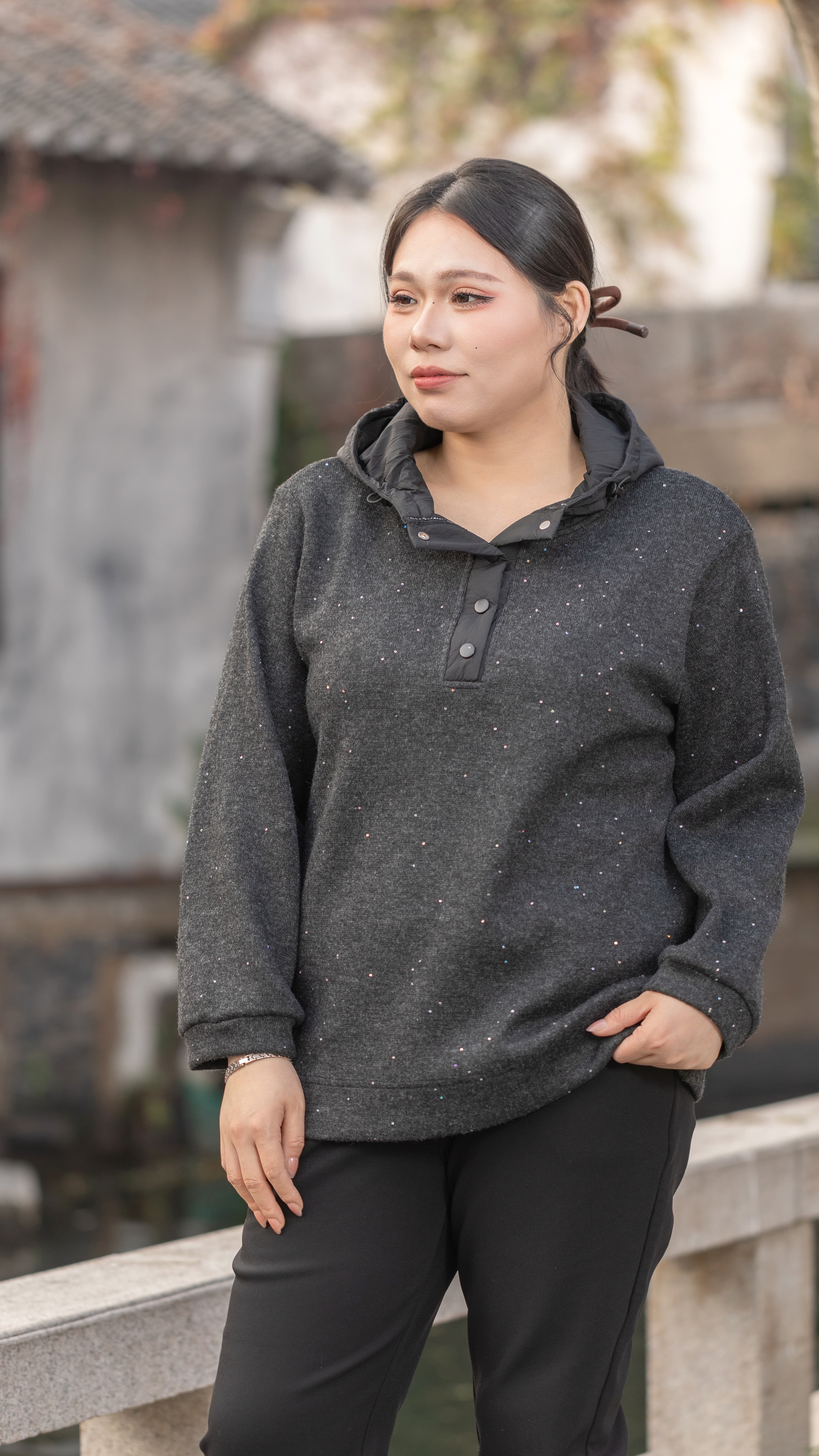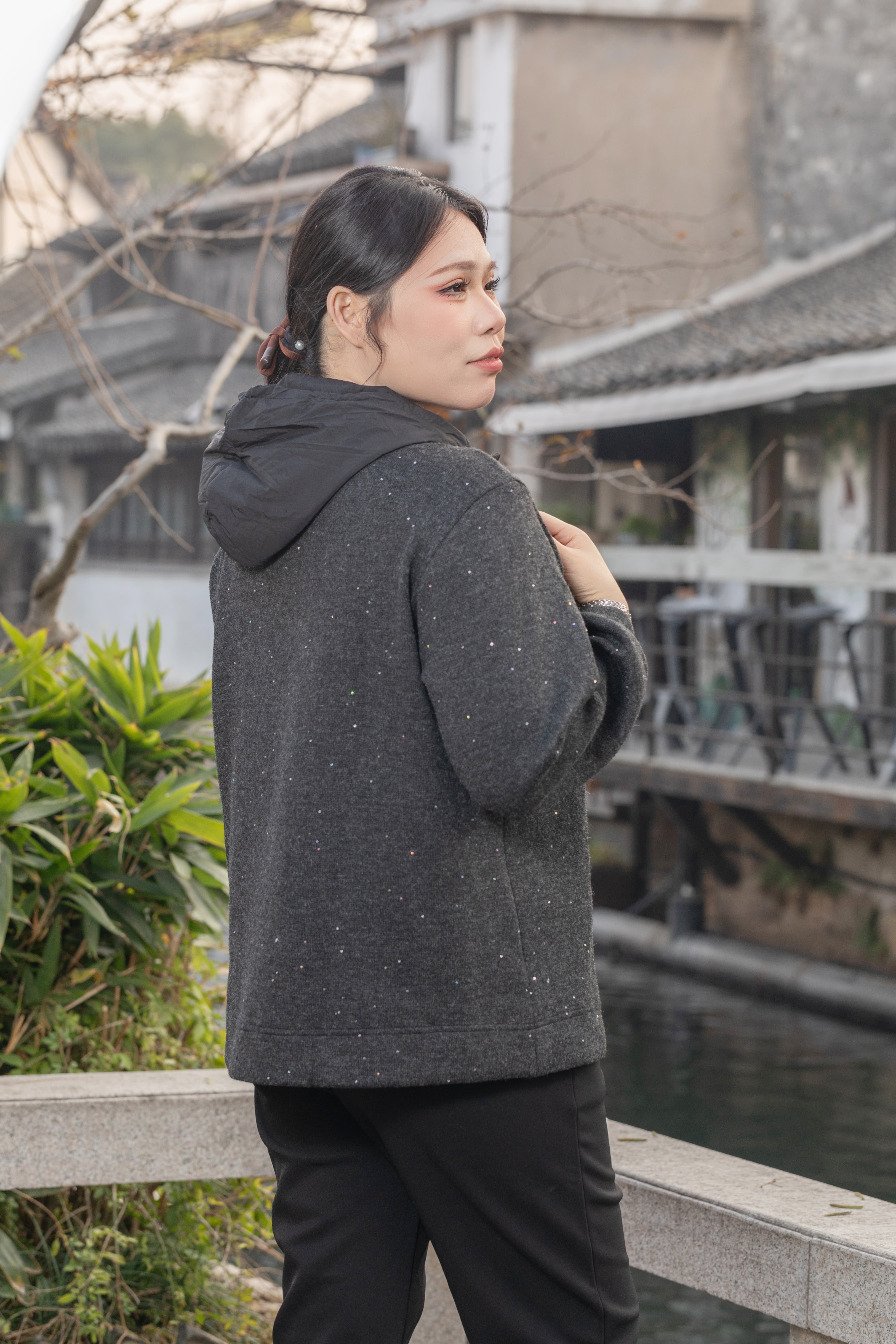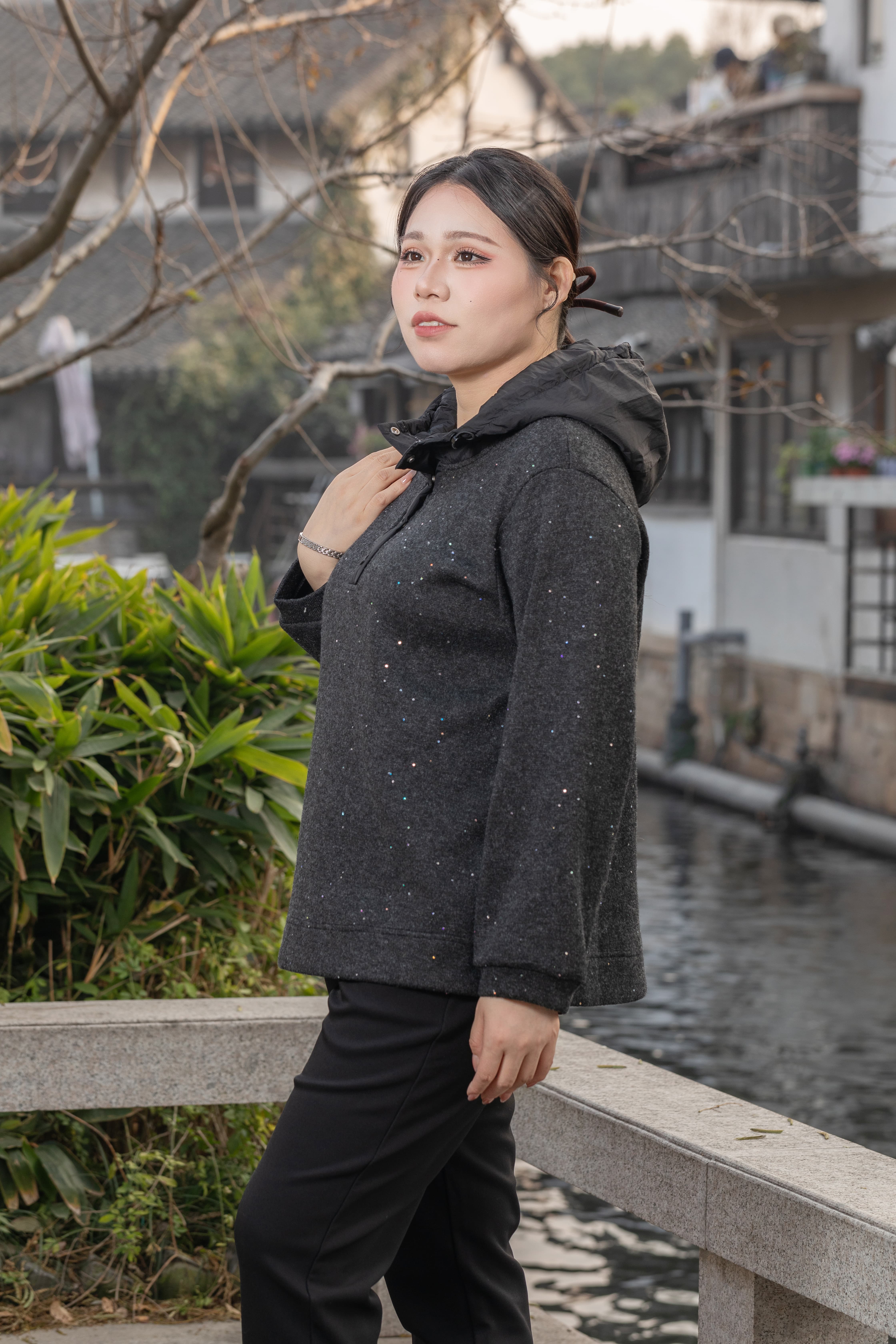 一周发货【满天星羊毛混纺卫衣】加绒连帽亮片,可机洗,亮片手工缝纫固定不易掉,简约款式,保暖细密短绒,慵懒百搭,宽松加厚,长袖套头款,穿脱方便,面料:5%羊毛12%锦纶12%晴纶3%氨纶68%聚酯纤维