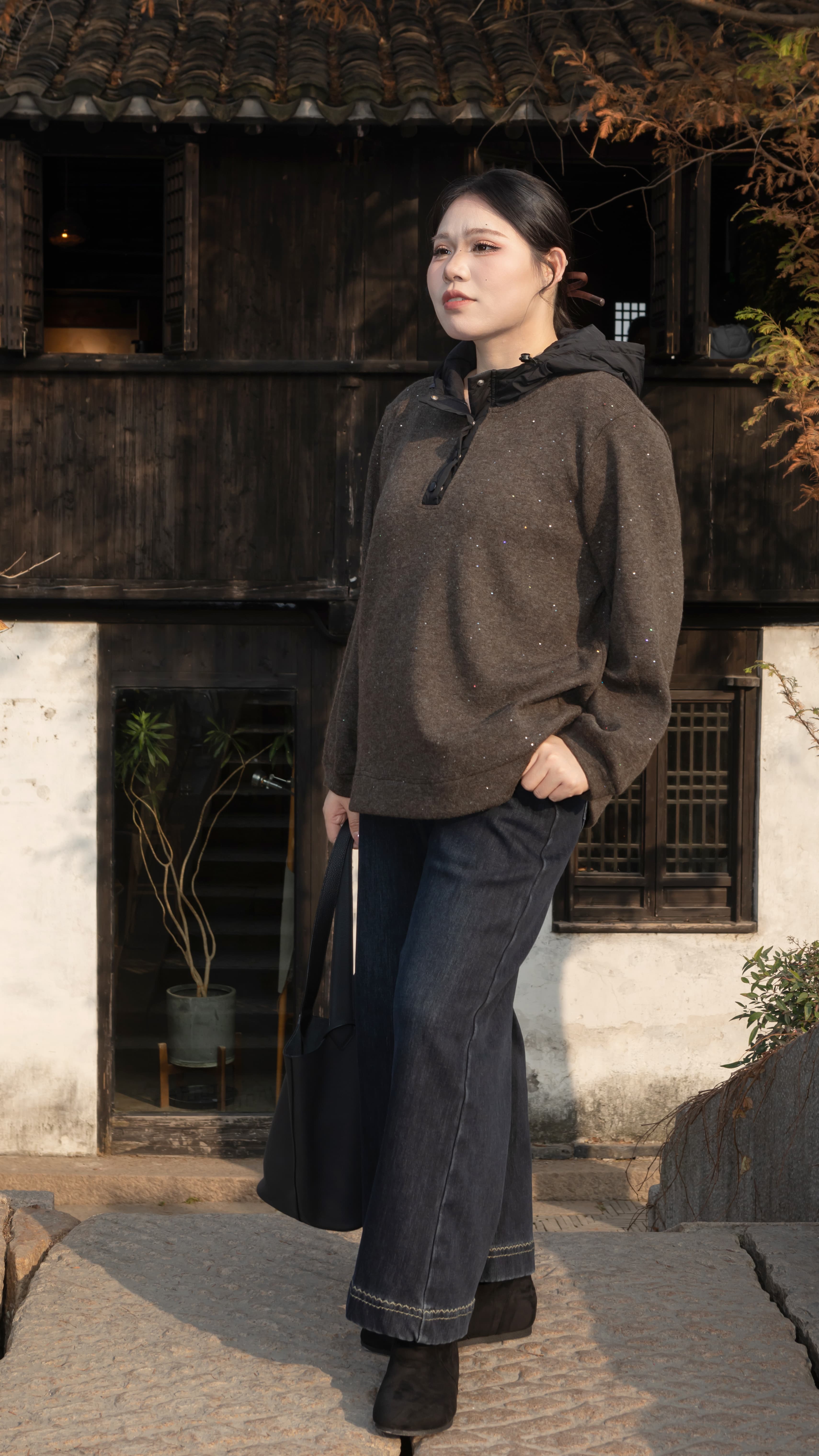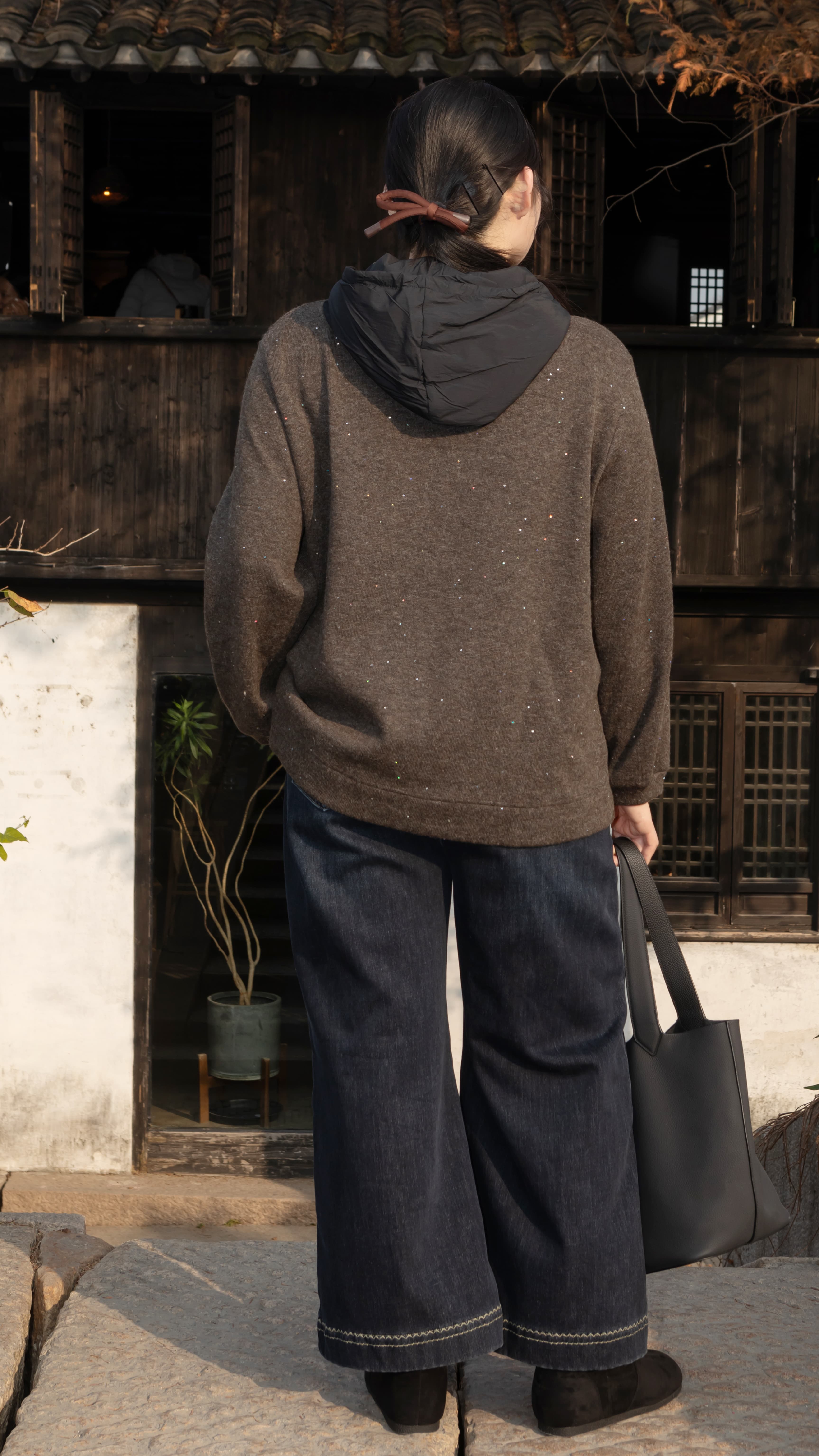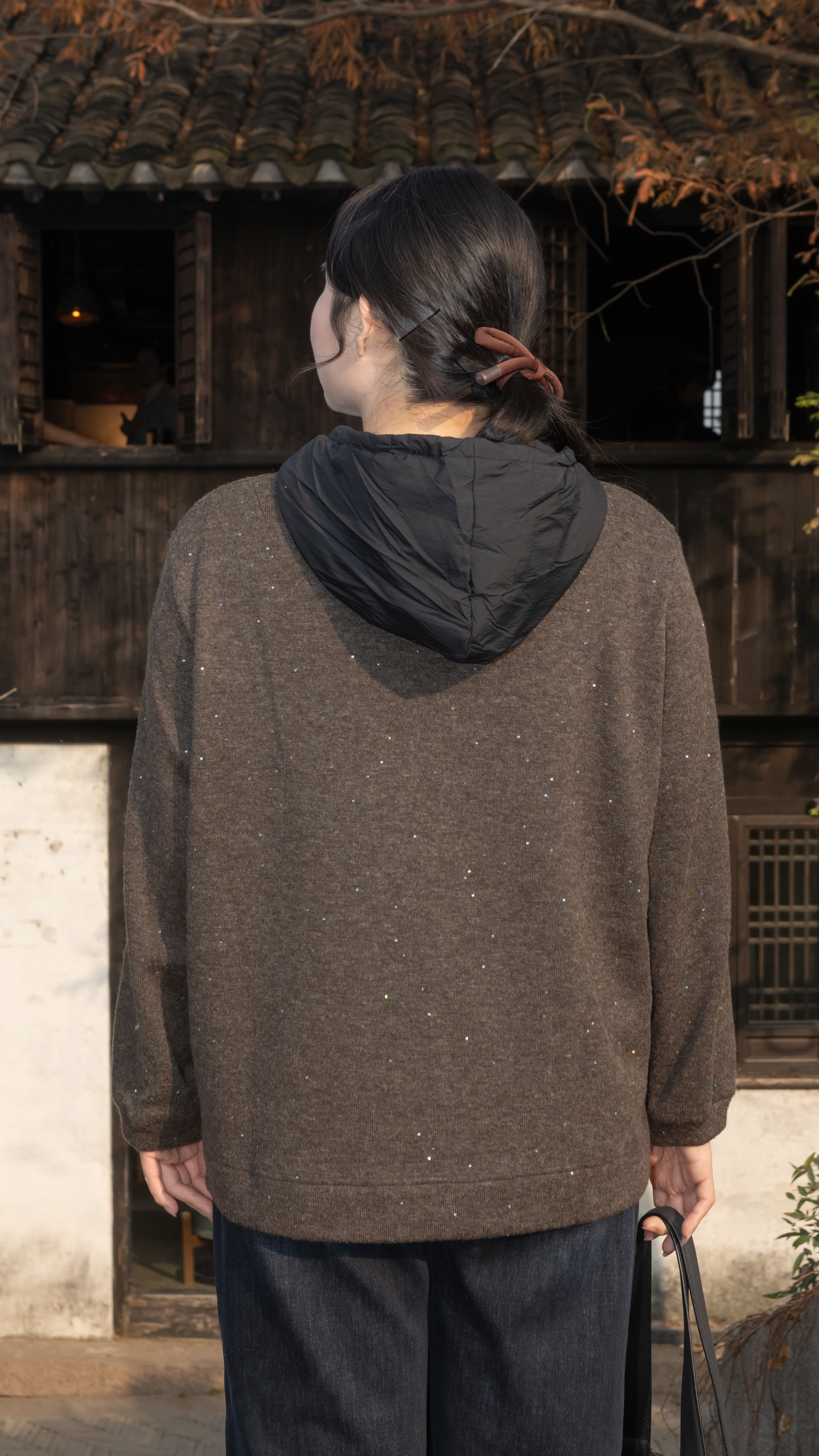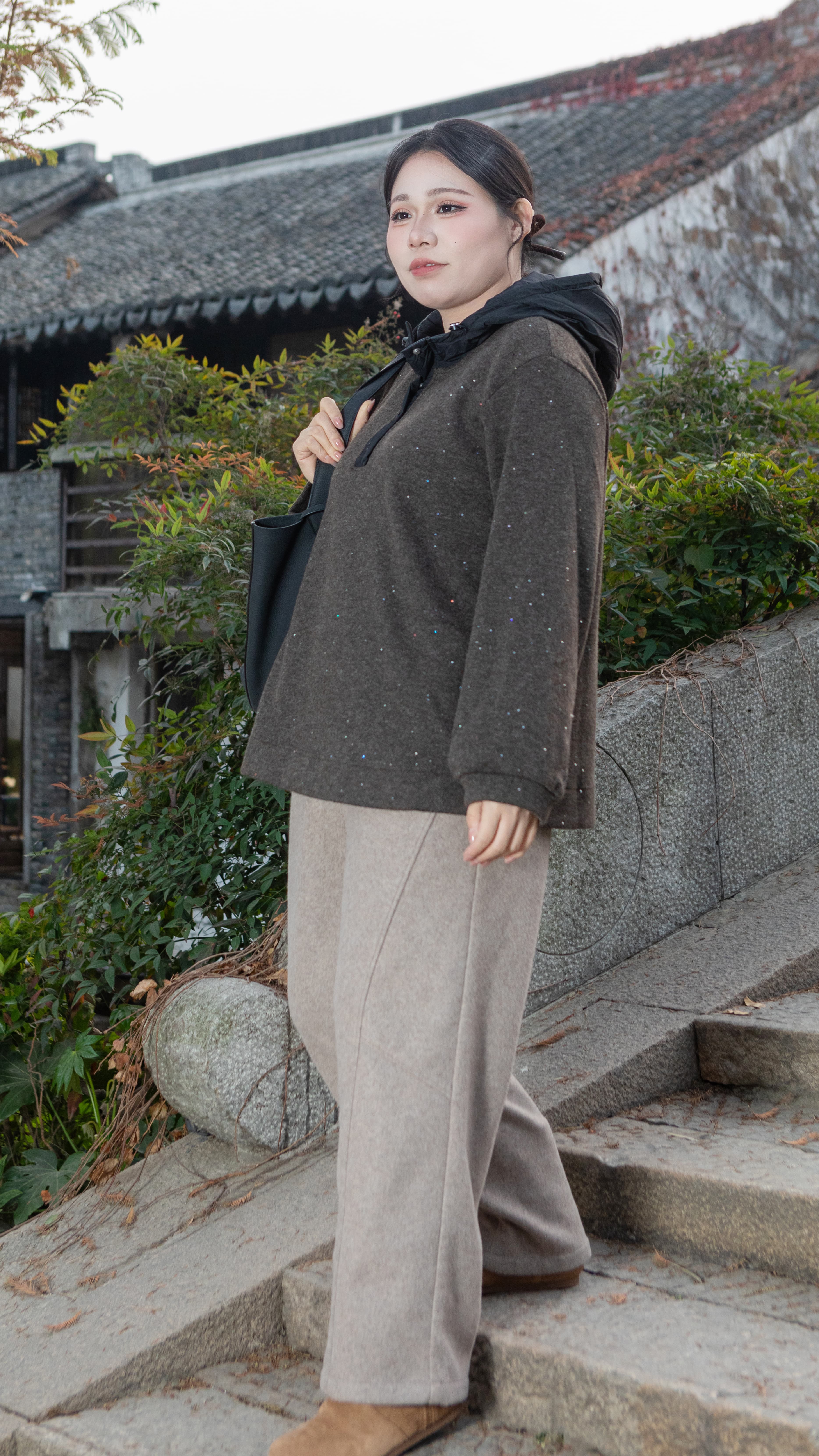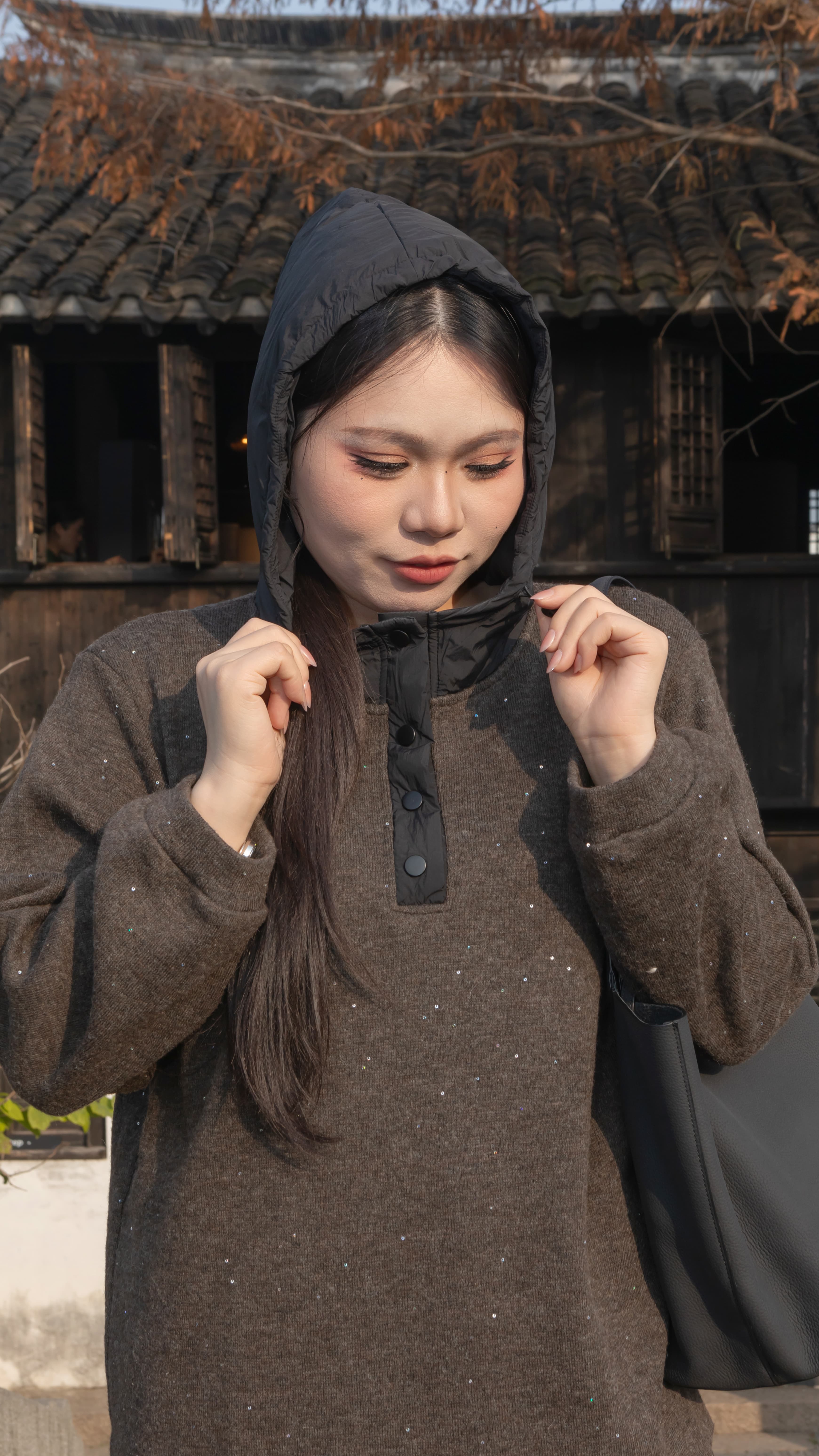 一周发货【满天星羊毛混纺卫衣】加绒连帽亮片,可机洗,亮片手工缝纫固定不易掉,简约款式,保暖细密短绒,慵懒百搭,宽松加厚,长袖套头款,穿脱方便,面料:5%羊毛12%锦纶12%晴纶3%氨纶68%聚酯纤维