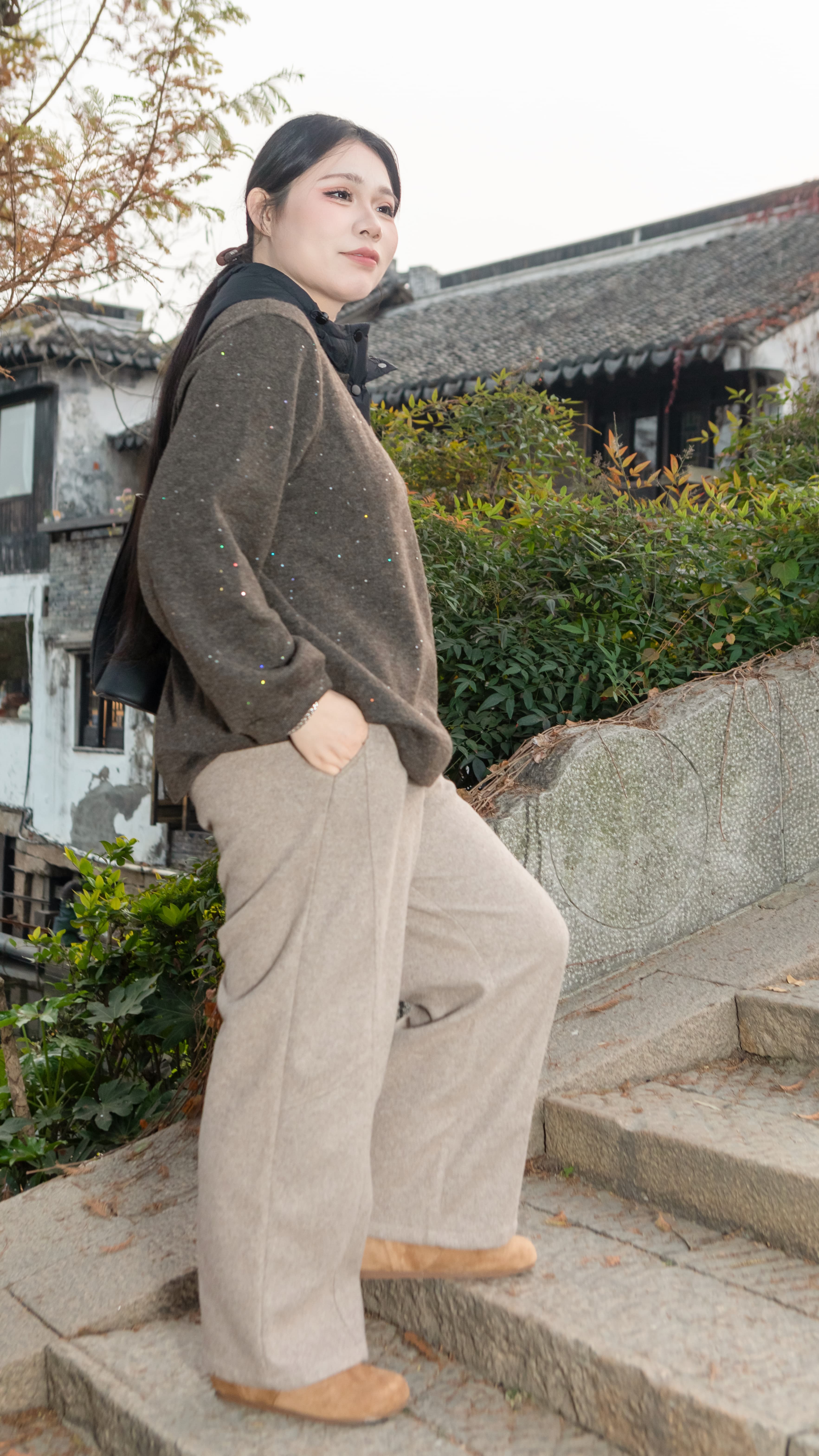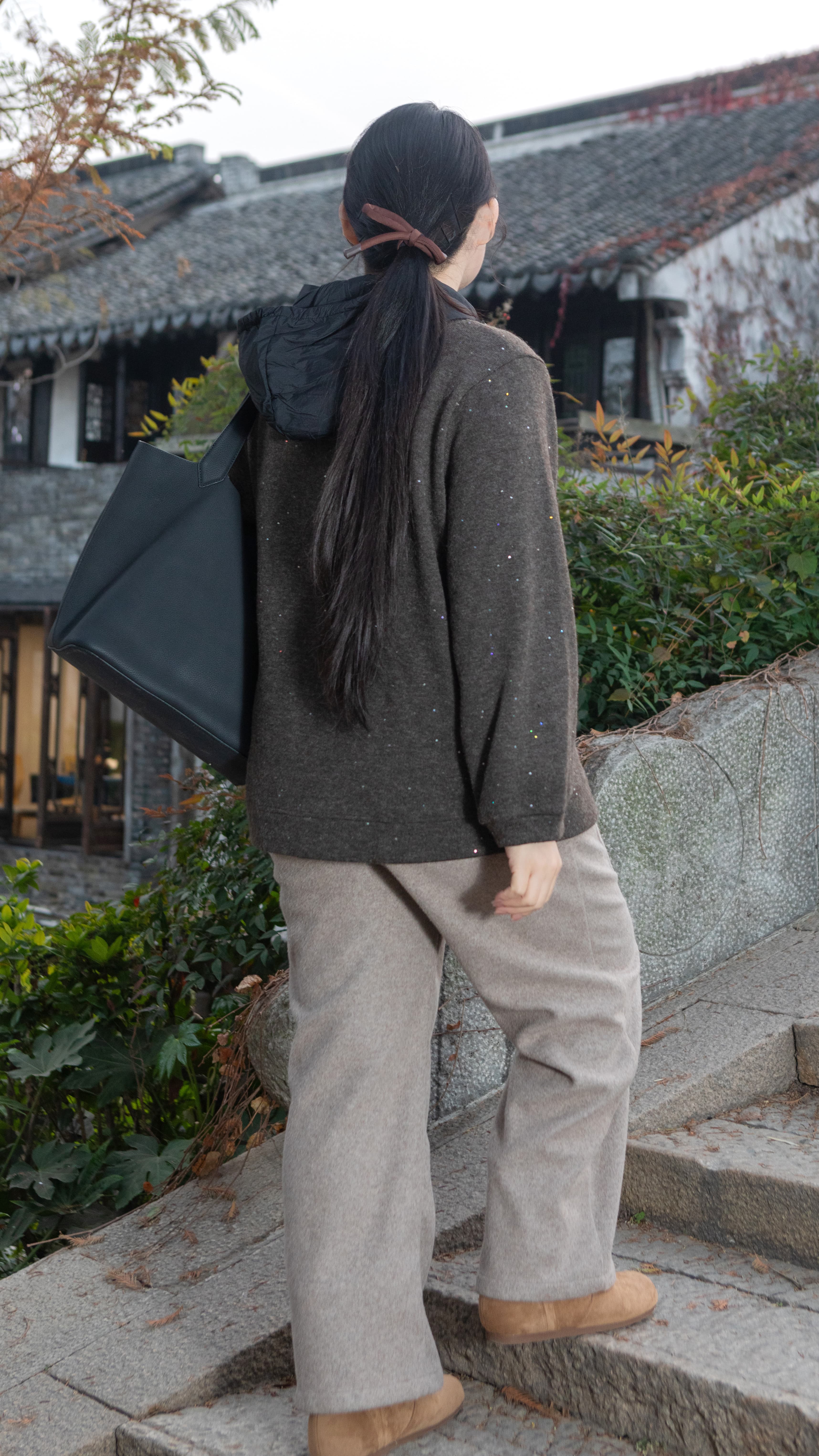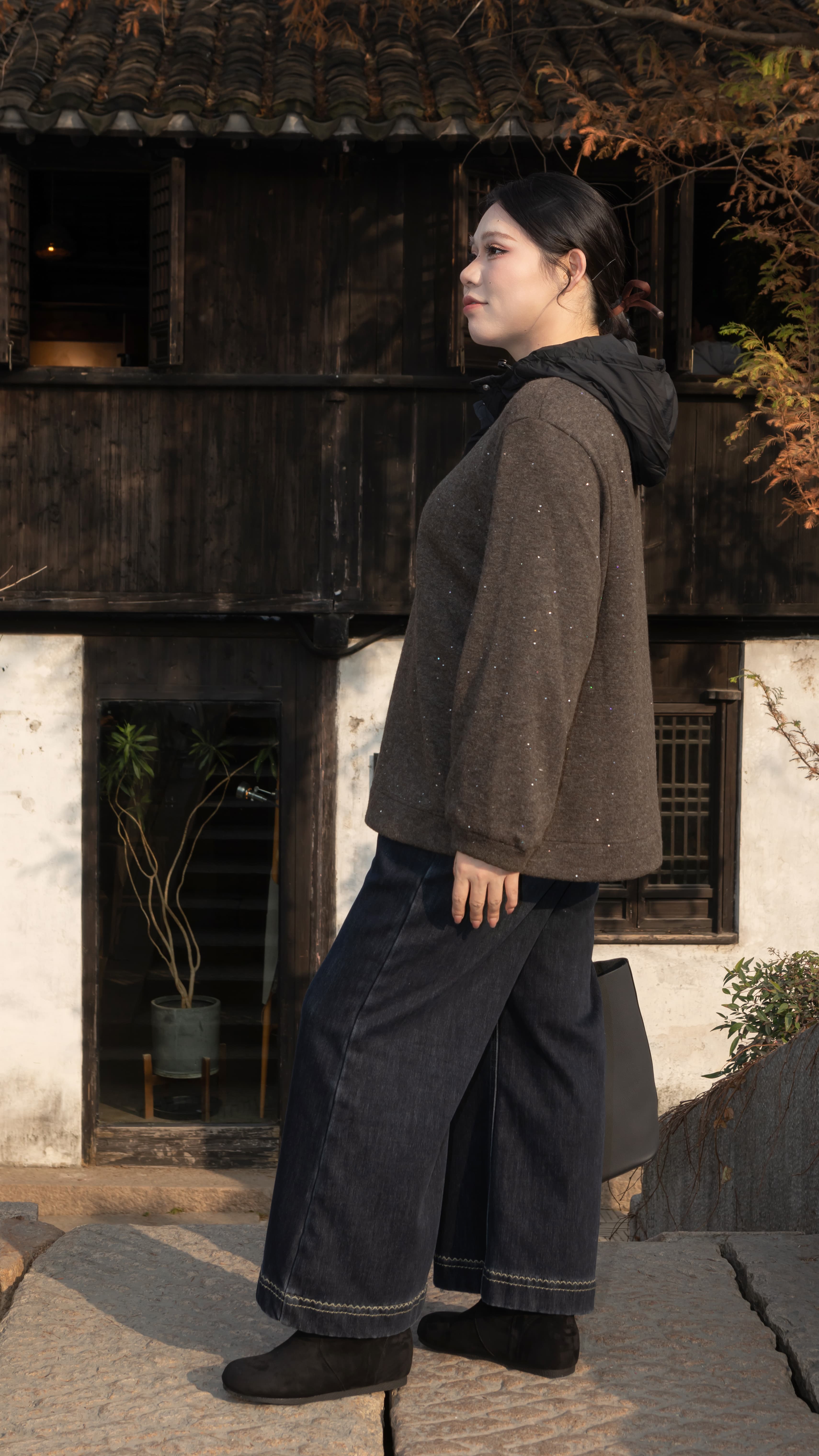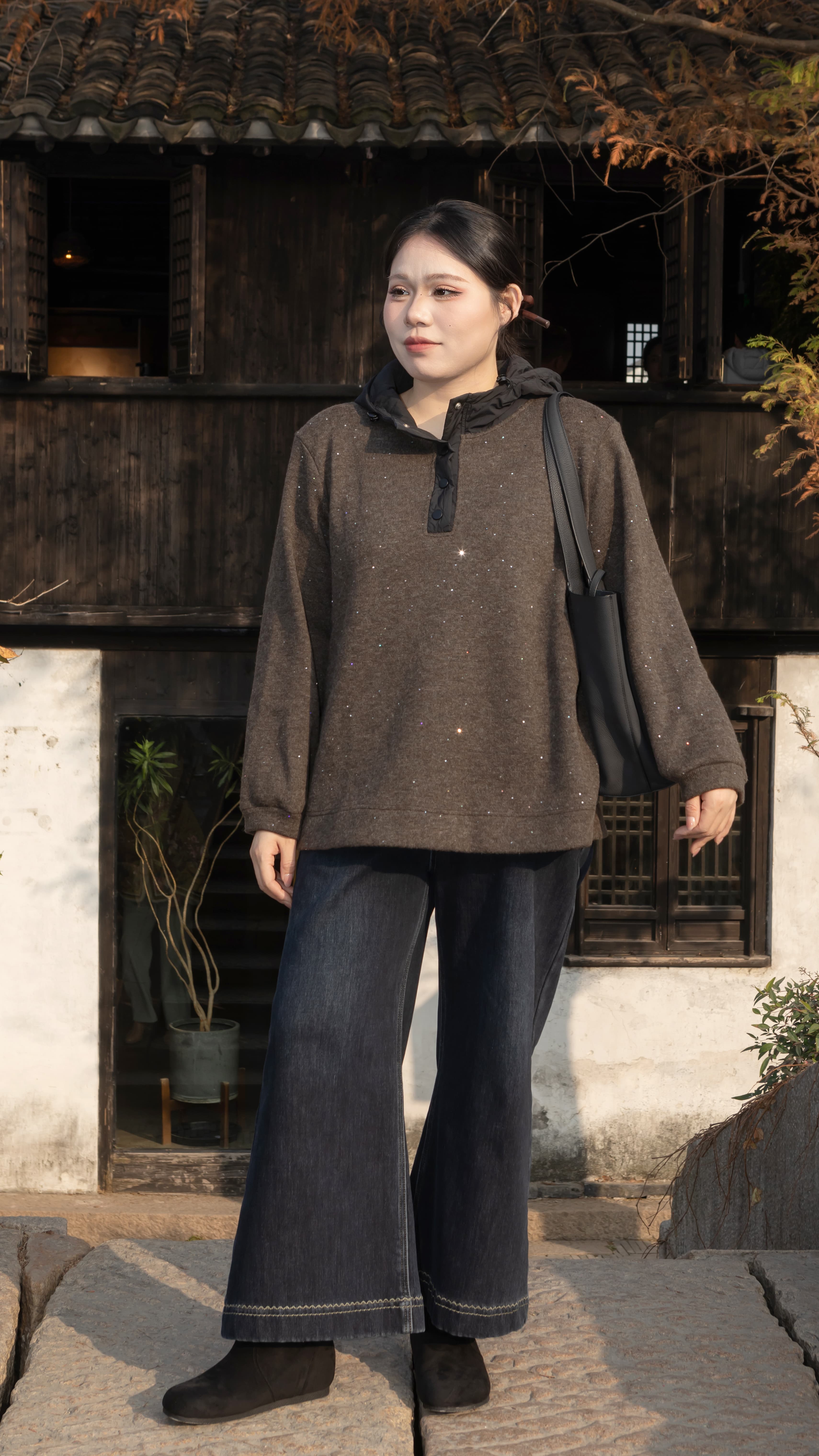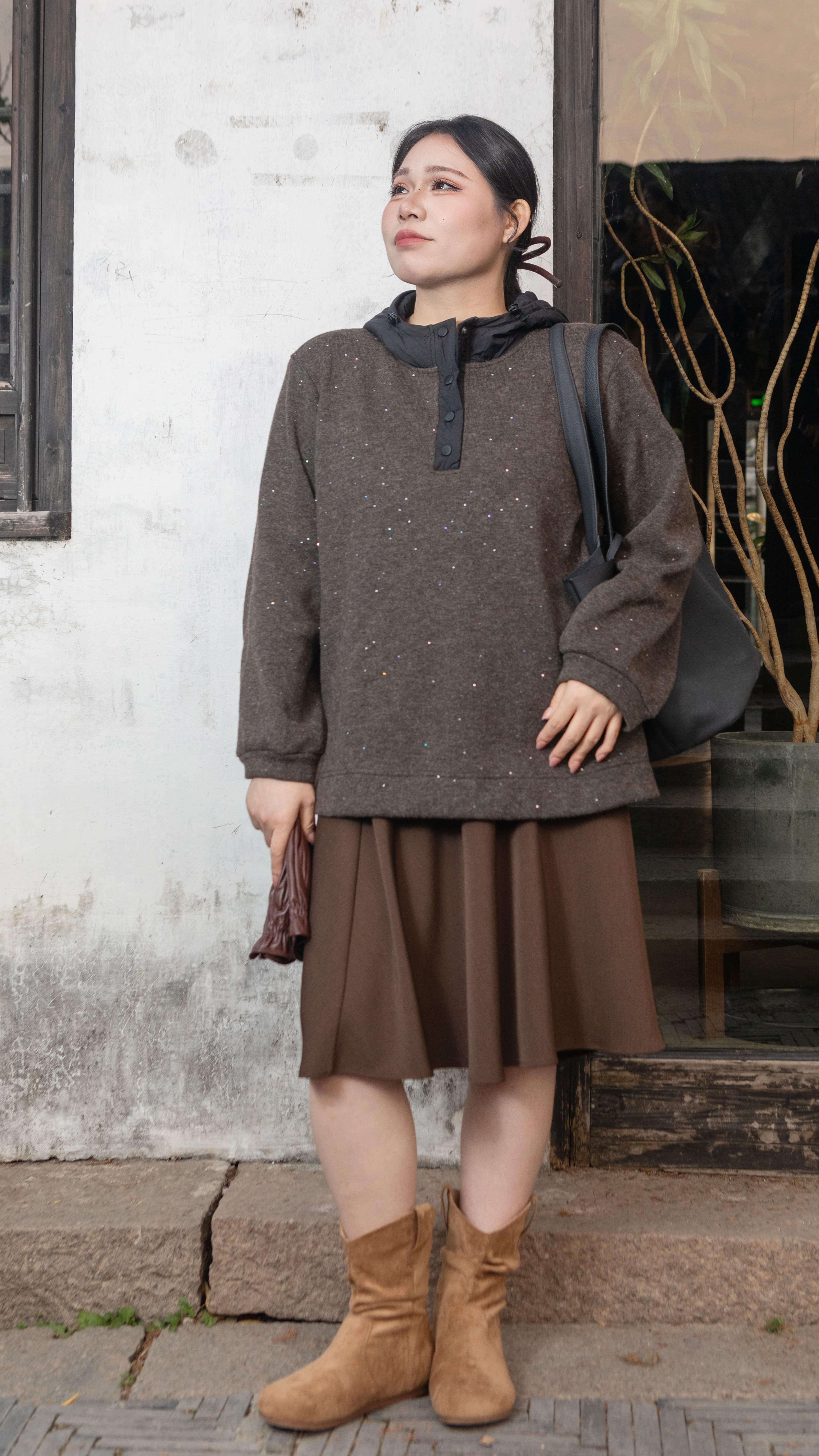 一周发货【满天星羊毛混纺卫衣】加绒连帽亮片,可机洗,亮片手工缝纫固定不易掉,简约款式,保暖细密短绒,慵懒百搭,宽松加厚,长袖套头款,穿脱方便,面料:5%羊毛12%锦纶12%晴纶3%氨纶68%聚酯纤维