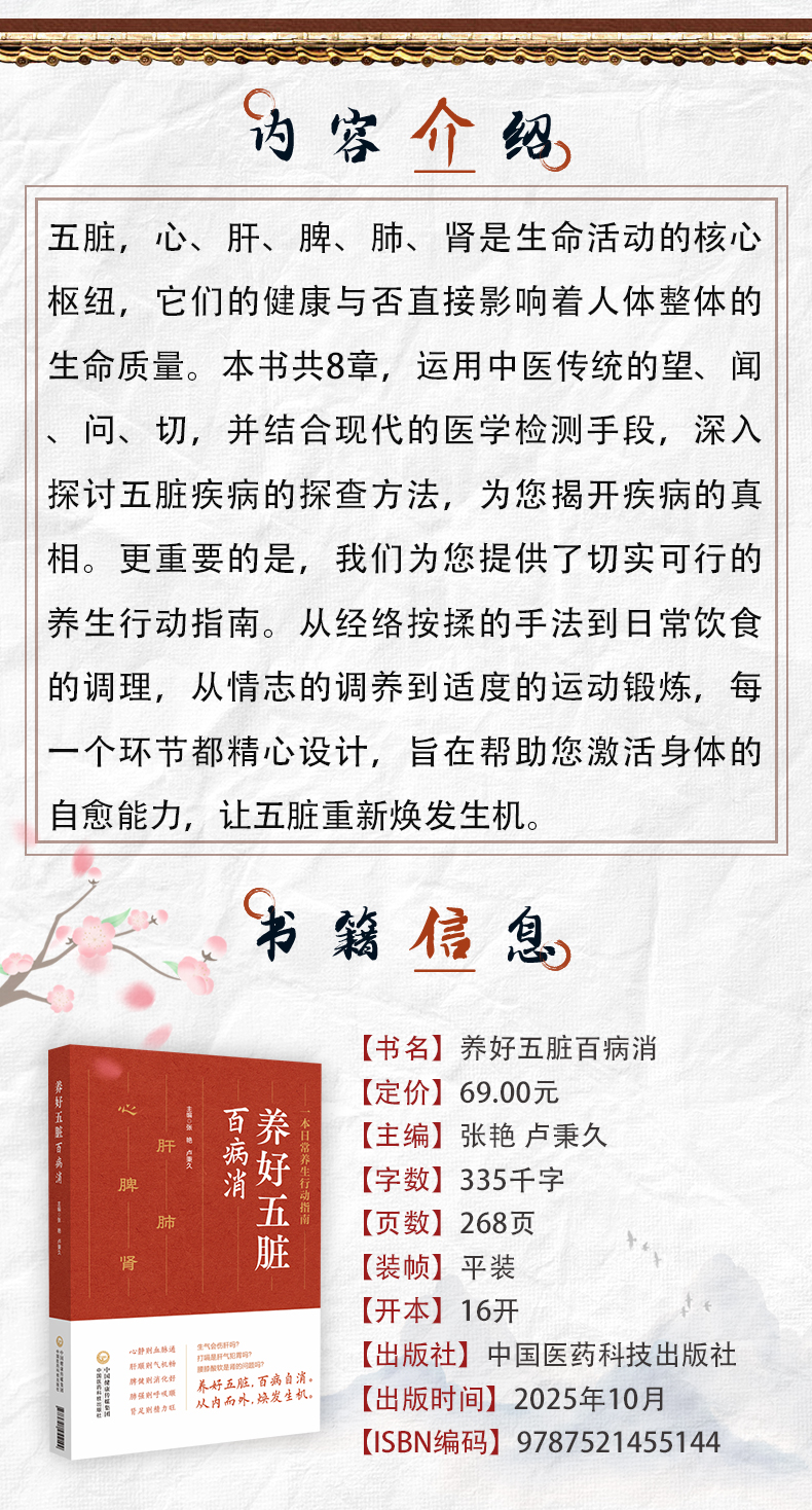 养好五脏百病消 张艳 卢秉久 运用中医传统的望 闻 问 切 并结合现代的医学检测 深入探讨五脏疾病的探查方法 中国医药科技出版社